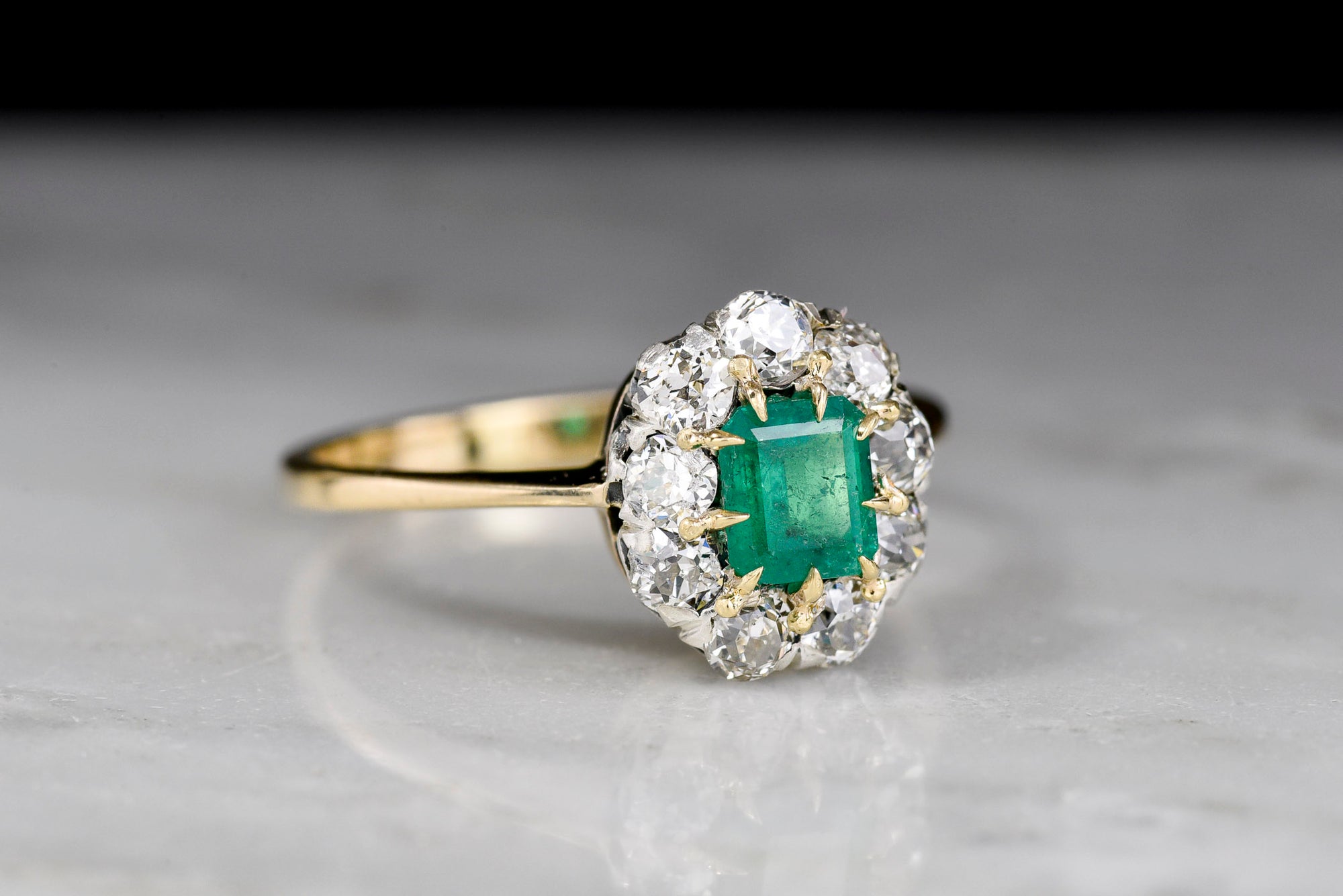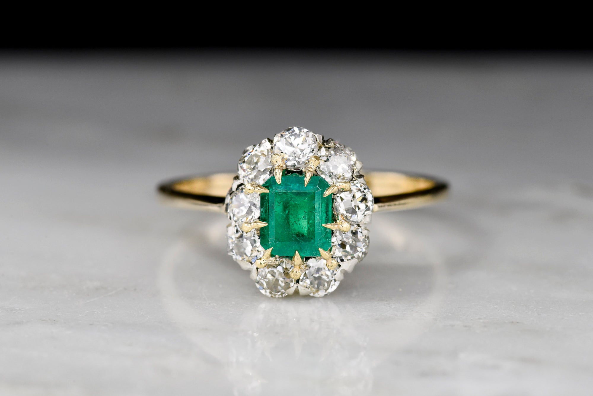 Sold OutMid-Late 1800s Victorian Cluster Ring with Antique Cut Diamonds and an Emerald Center