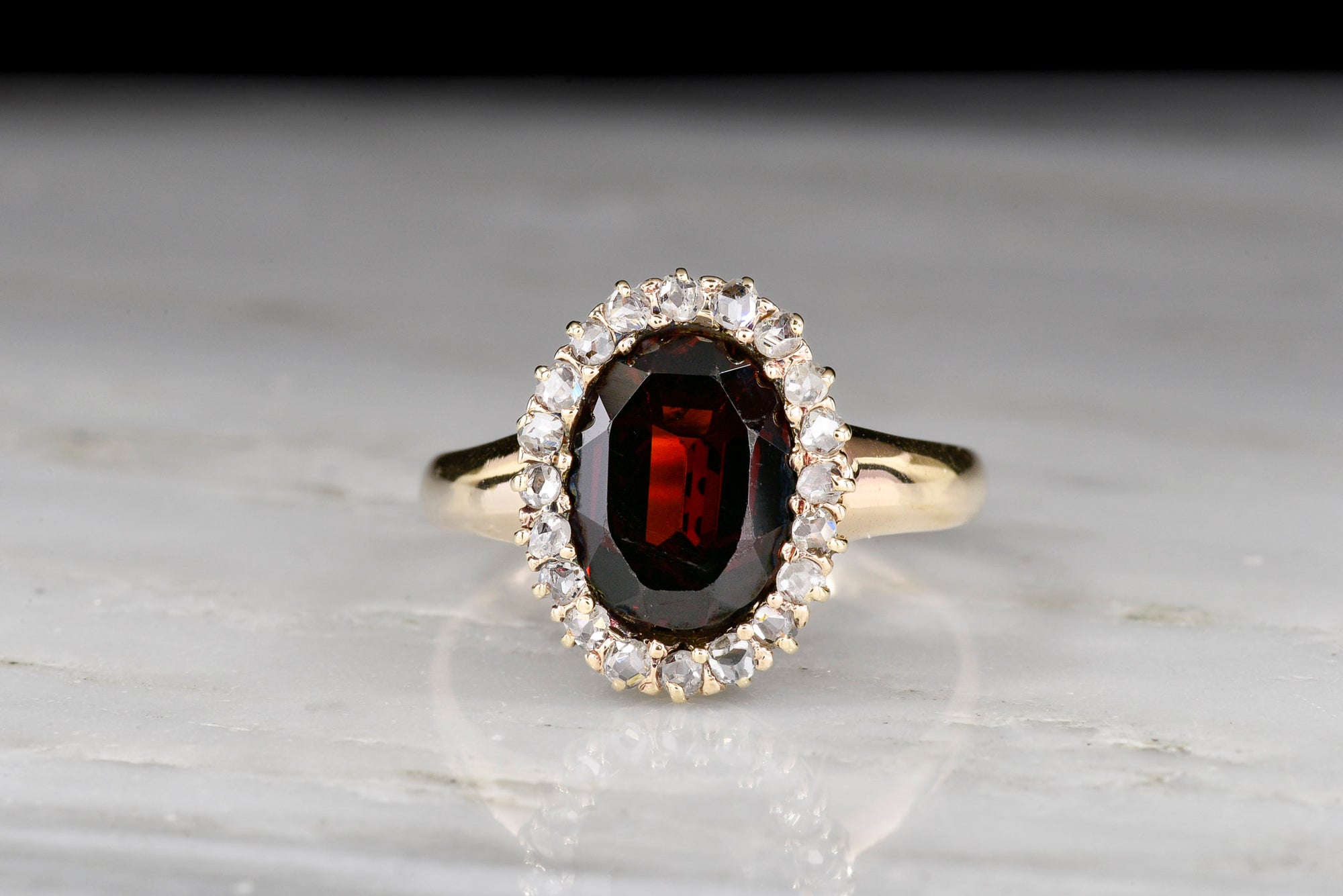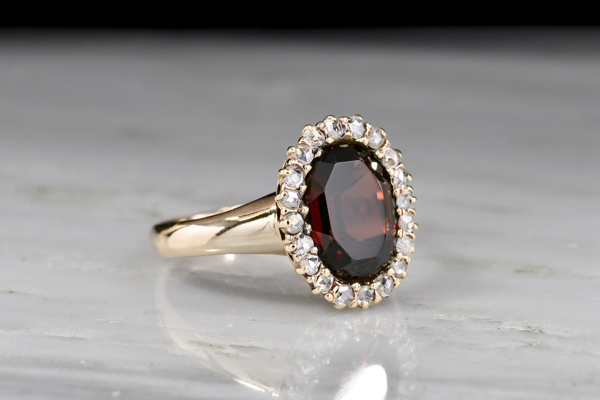 Sold Outc. 1900 Victorian Ring with an Oval Garnet and Antique Rose Cut Diamond Surround