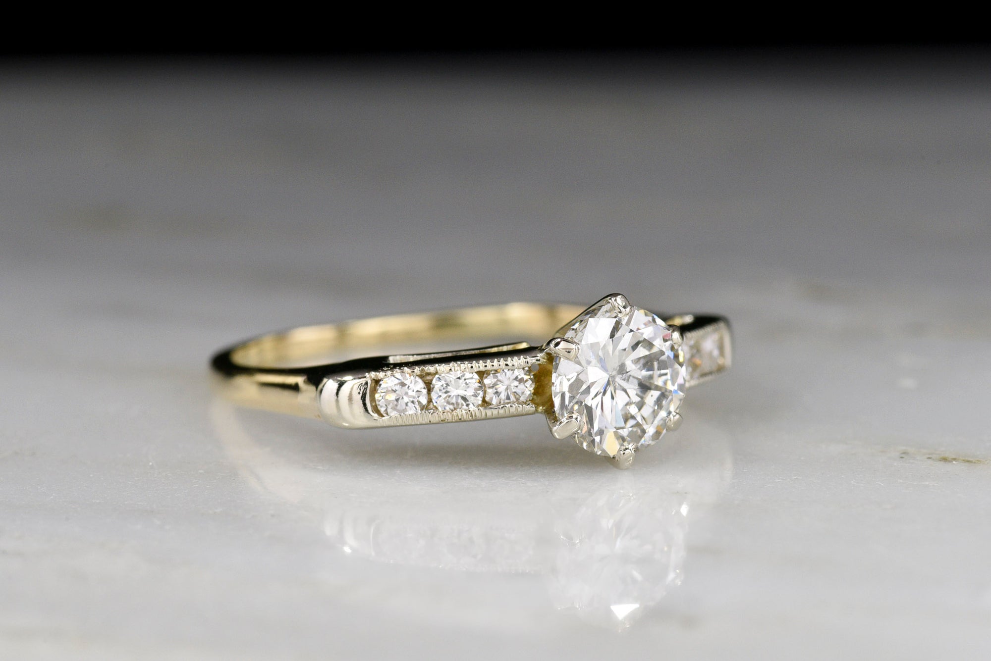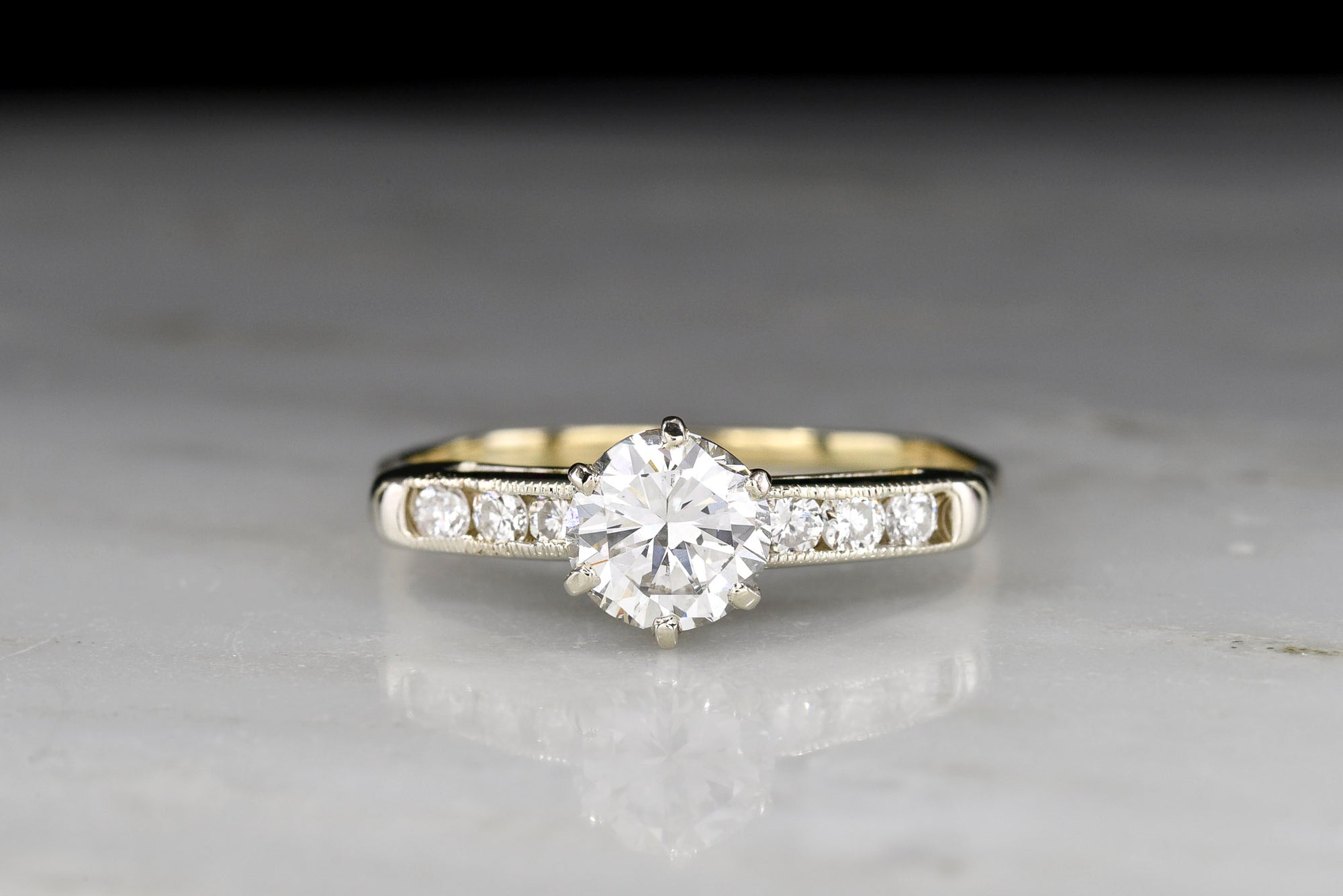 Sold OutClassic c. 1950s Midcentury Two-Tone Yellow and White Gold Diamond Engagement Ring