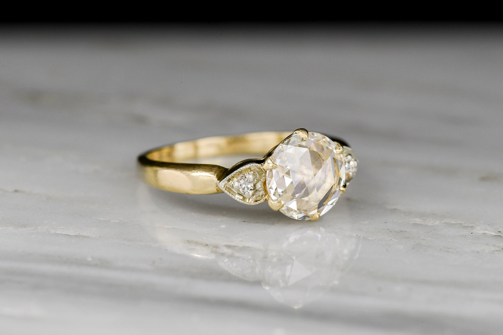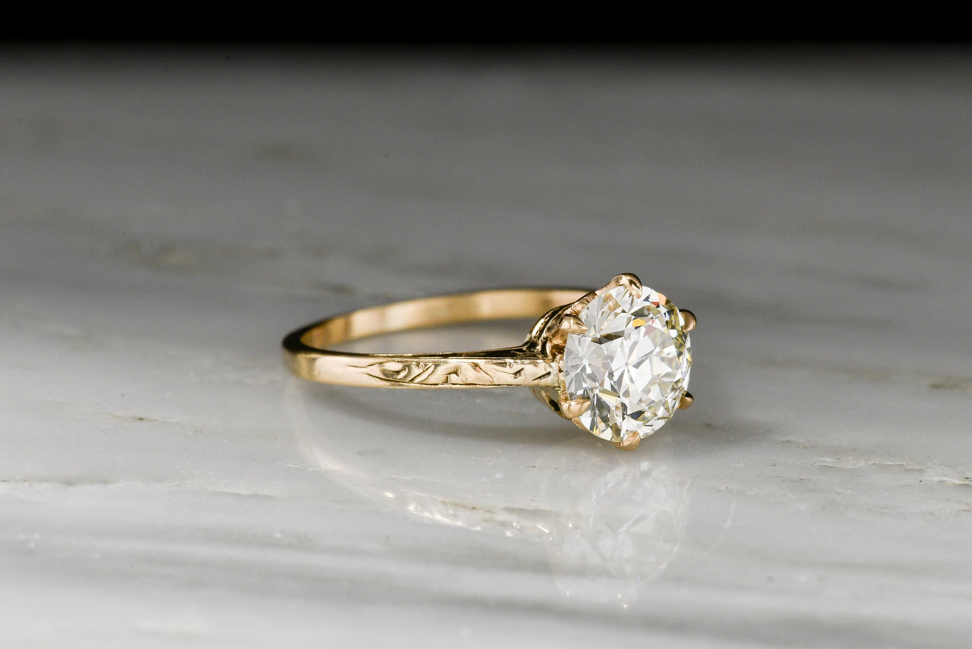 Sold Outc. Early 1900s Post-Victorian Six-Prong Gold Solitaire Engagement Ring with a 1.63 Carat Diamond Center