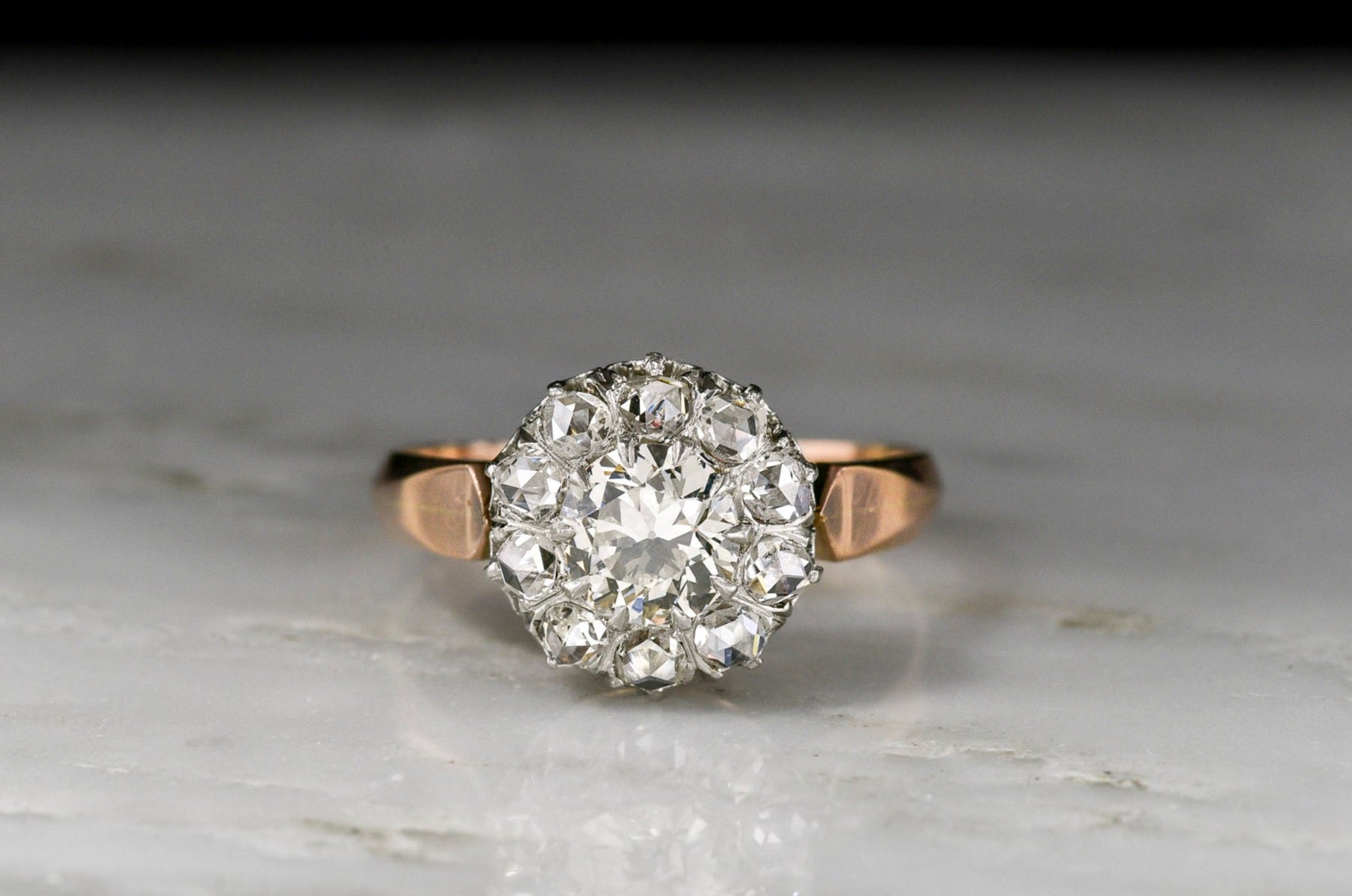 Sold OutLate Victorian Two-Tone Rose Gold and Platinum Diamond Cluster Ring