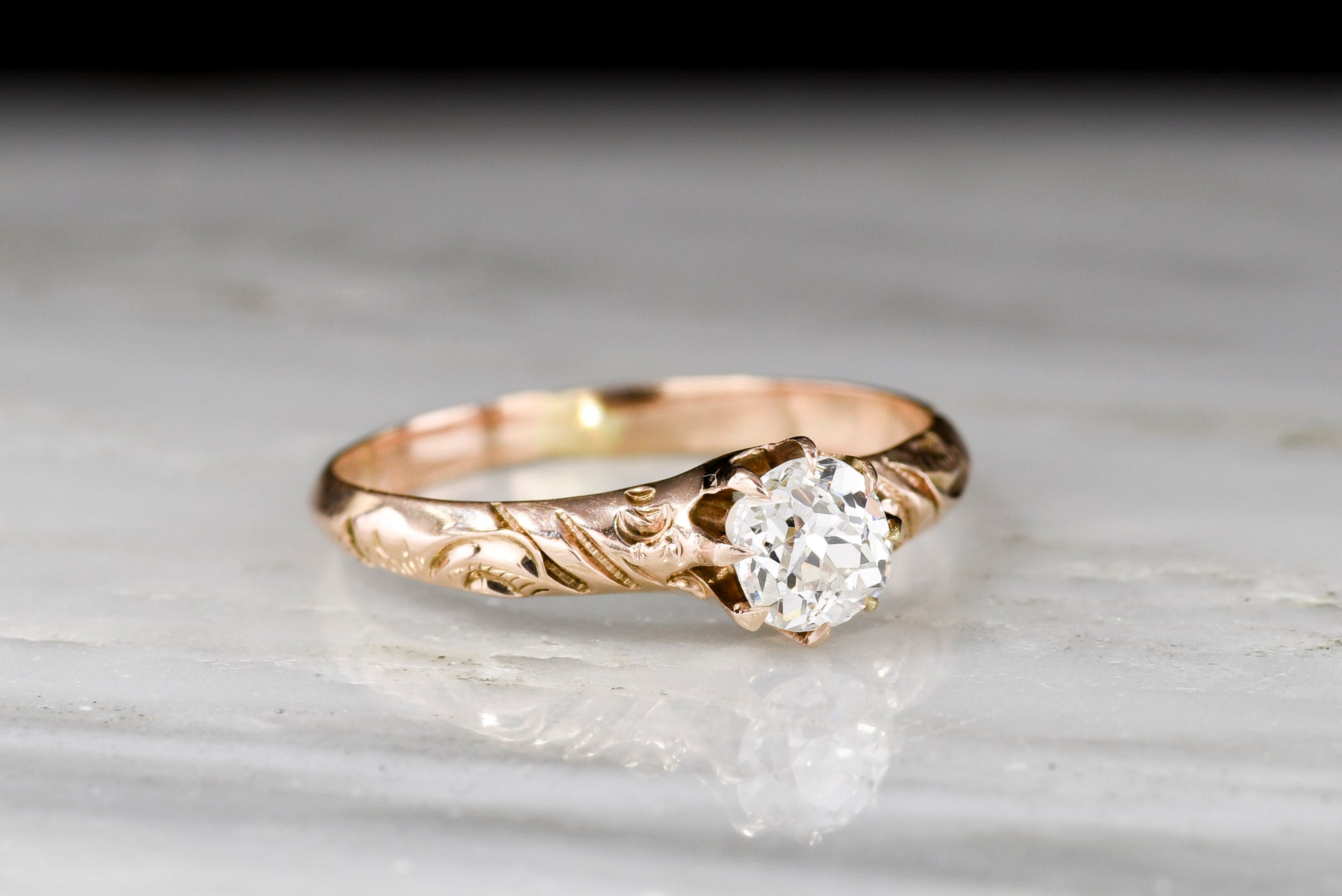 Post-Victorian Rose Gold Solitaire with a GIA Old European Cut Center