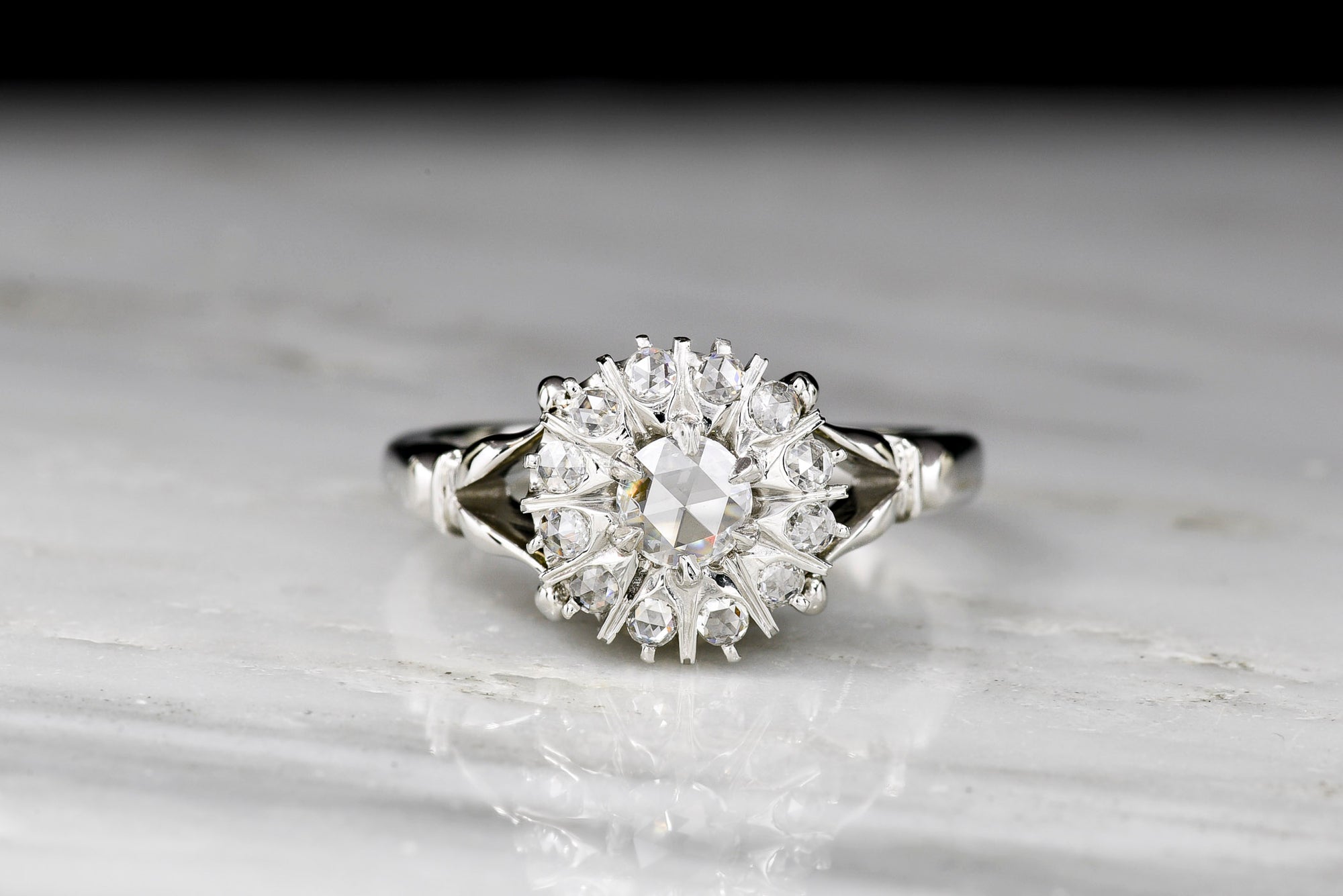 Sold OutBelle Époque Antique Rose Cut Diamond Ring with a Neoclassical Laurel Halo