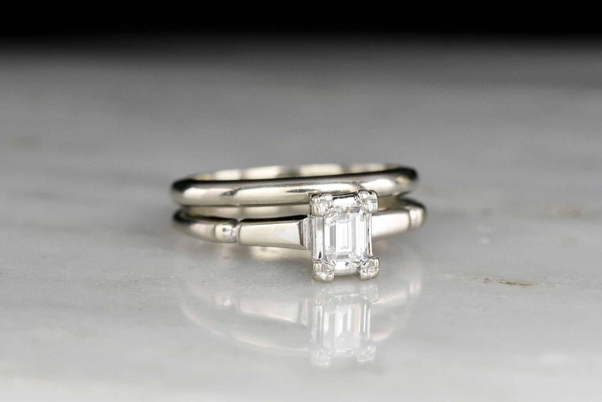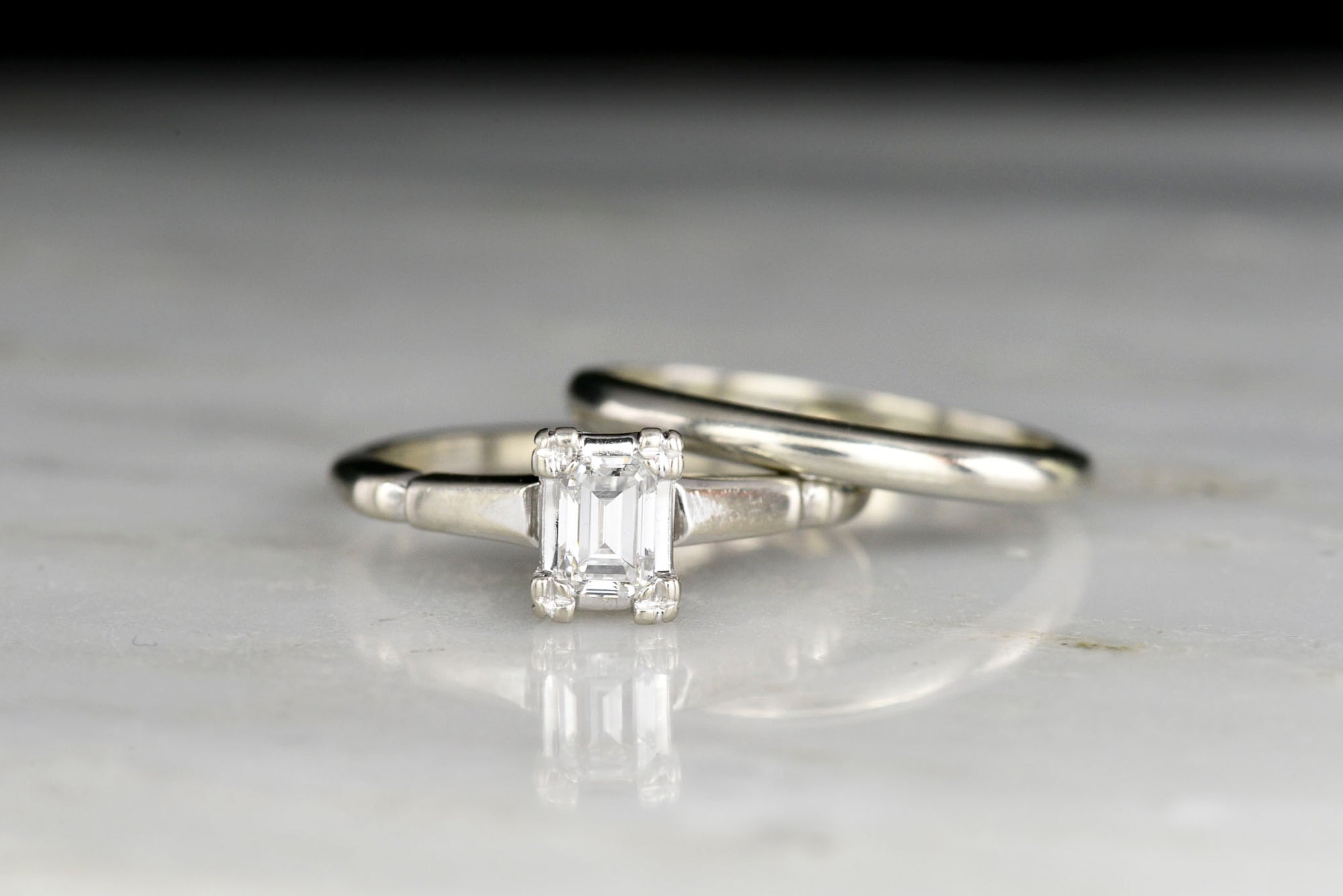 Sold OutVintage Midcentury Emerald Cut Diamond Engagement Ring and Wedding Band Set