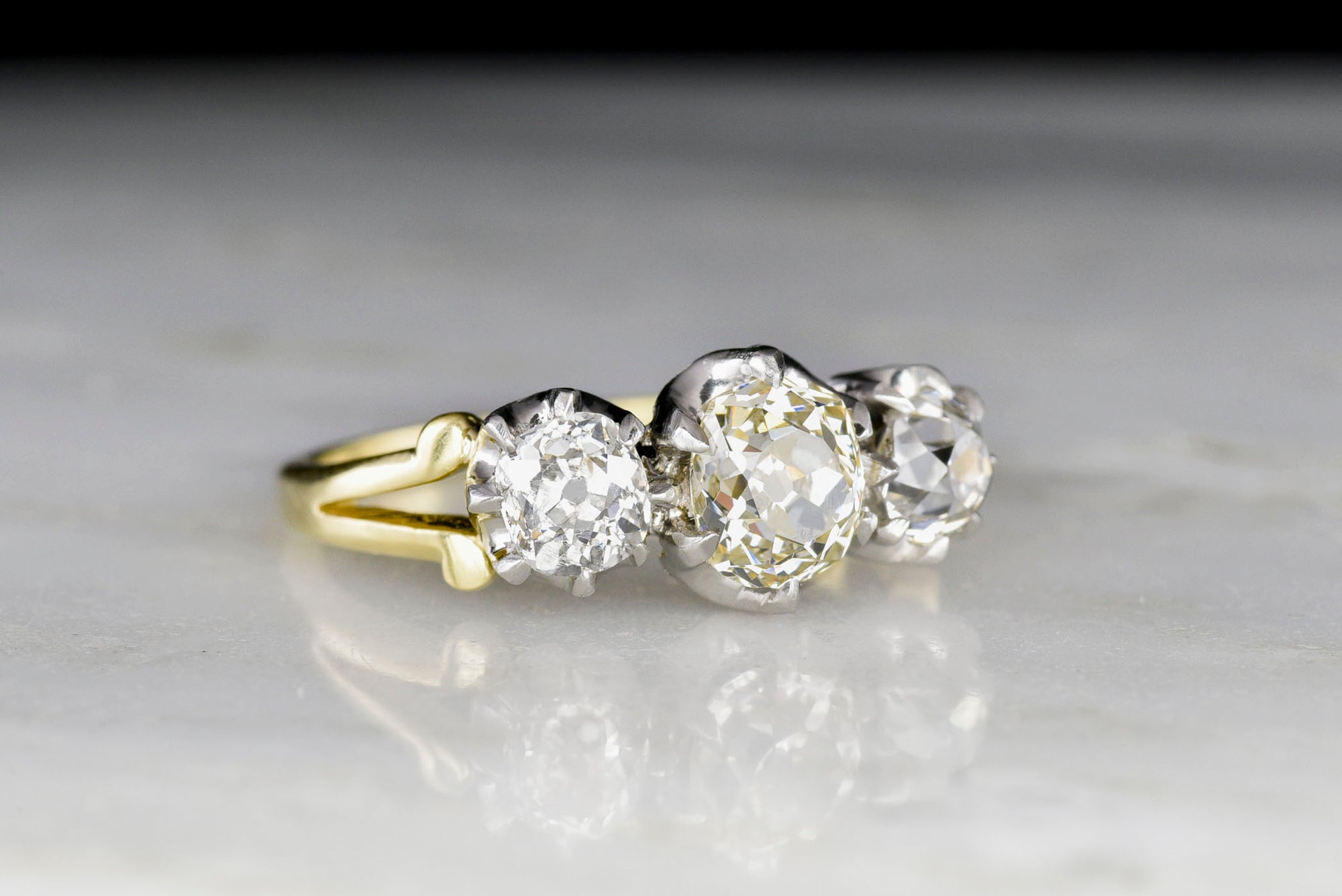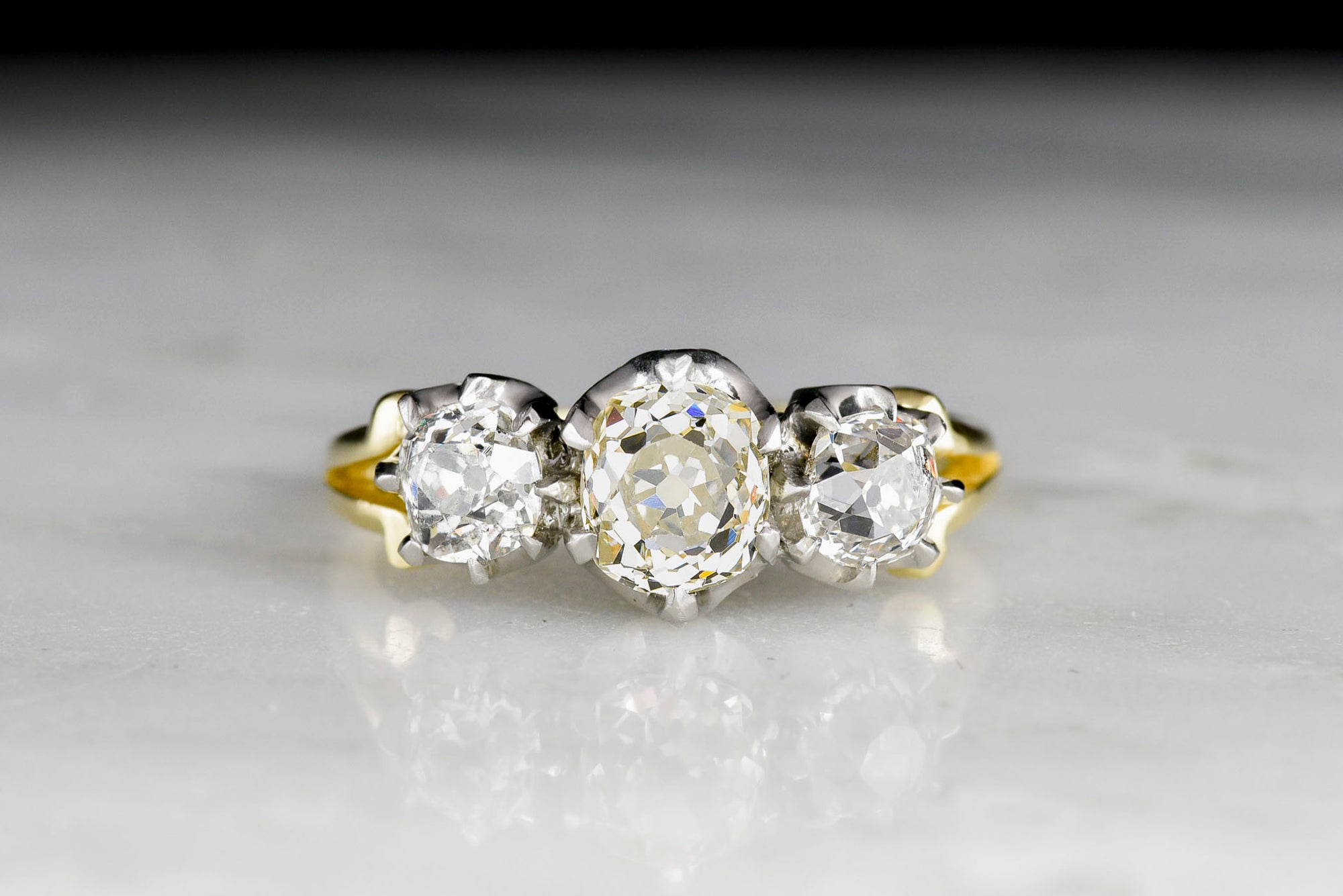 Sold OutTwo Tone Victorian Revival Old Mine Cut Diamond Three Stone Ring
