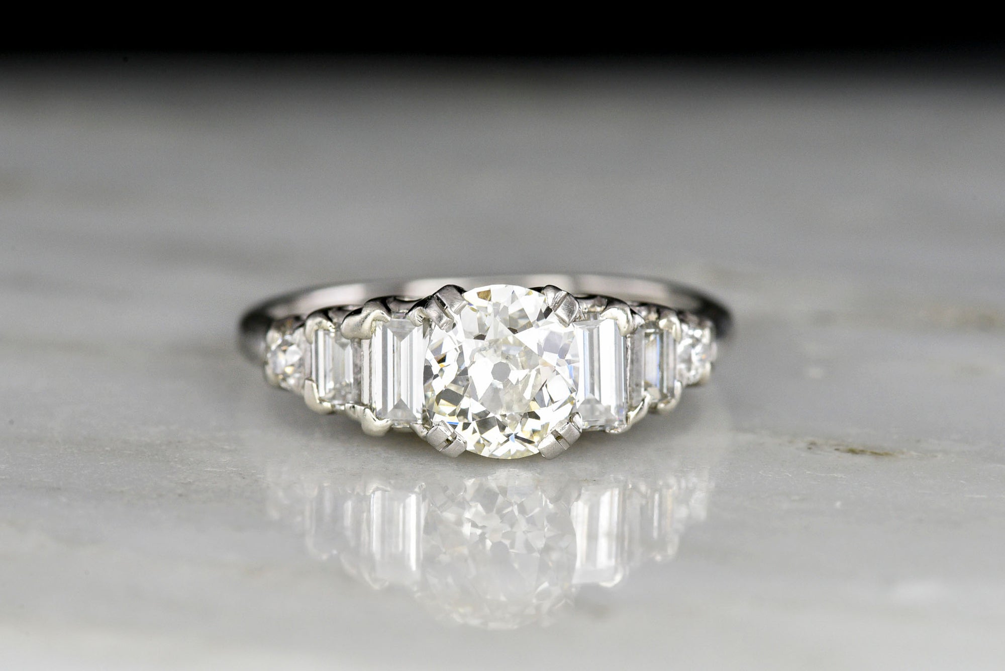 Sold OutArt Deco Engagement Ring with an Old Mine Cut Diamond Center and Graduated Baguette Cut Sides