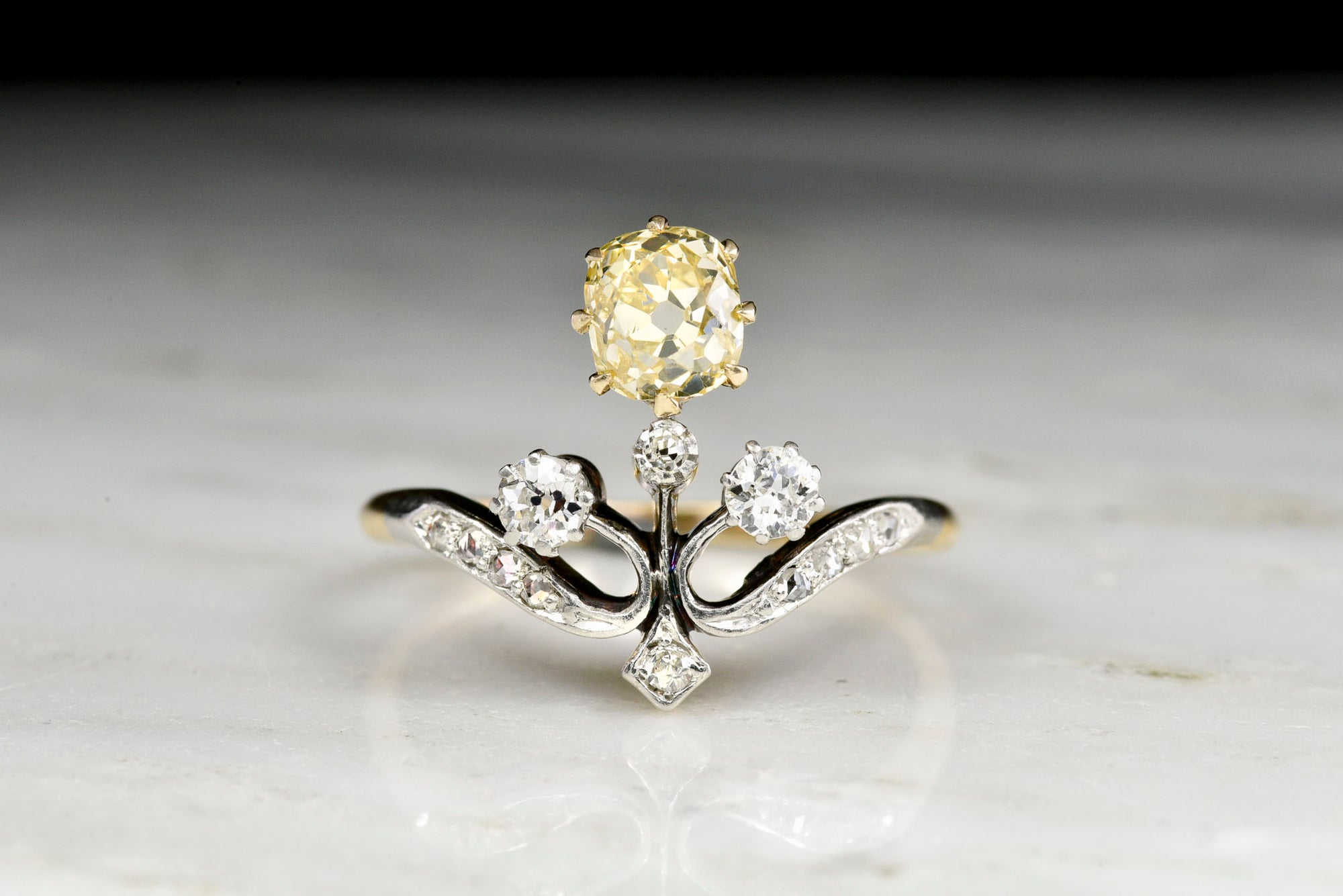 Sold OutBelle Époque Tiara Ring with a Fancy Warm-Yellow Old Mine Cut Diamond