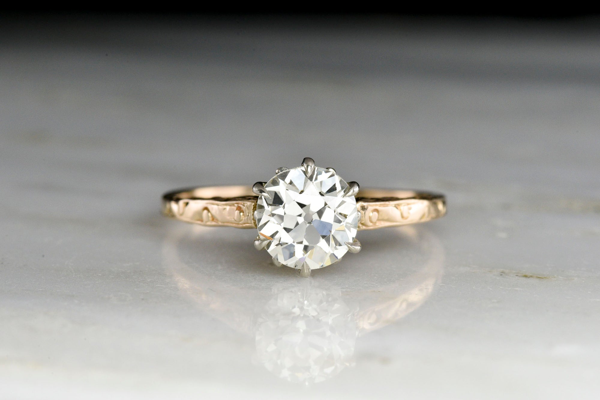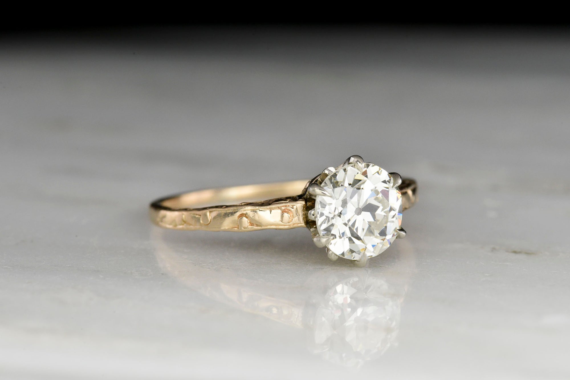 Sold Outc. 1900s-1920s Two-Tone Solitaire with a GIA 1.25 Carat Old European Cut Diamond Center