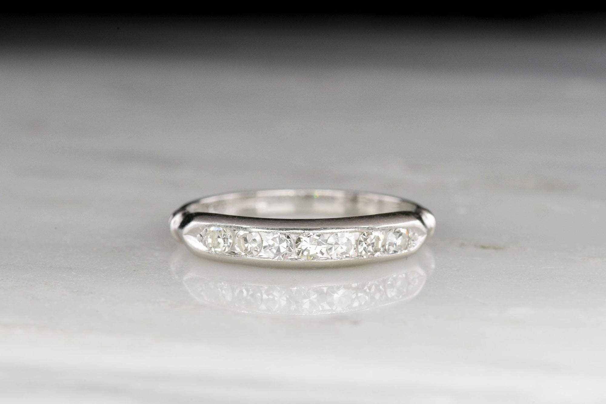 Sold OutMidcentury Seven-Stone Single Cut Diamond and Platinum Band