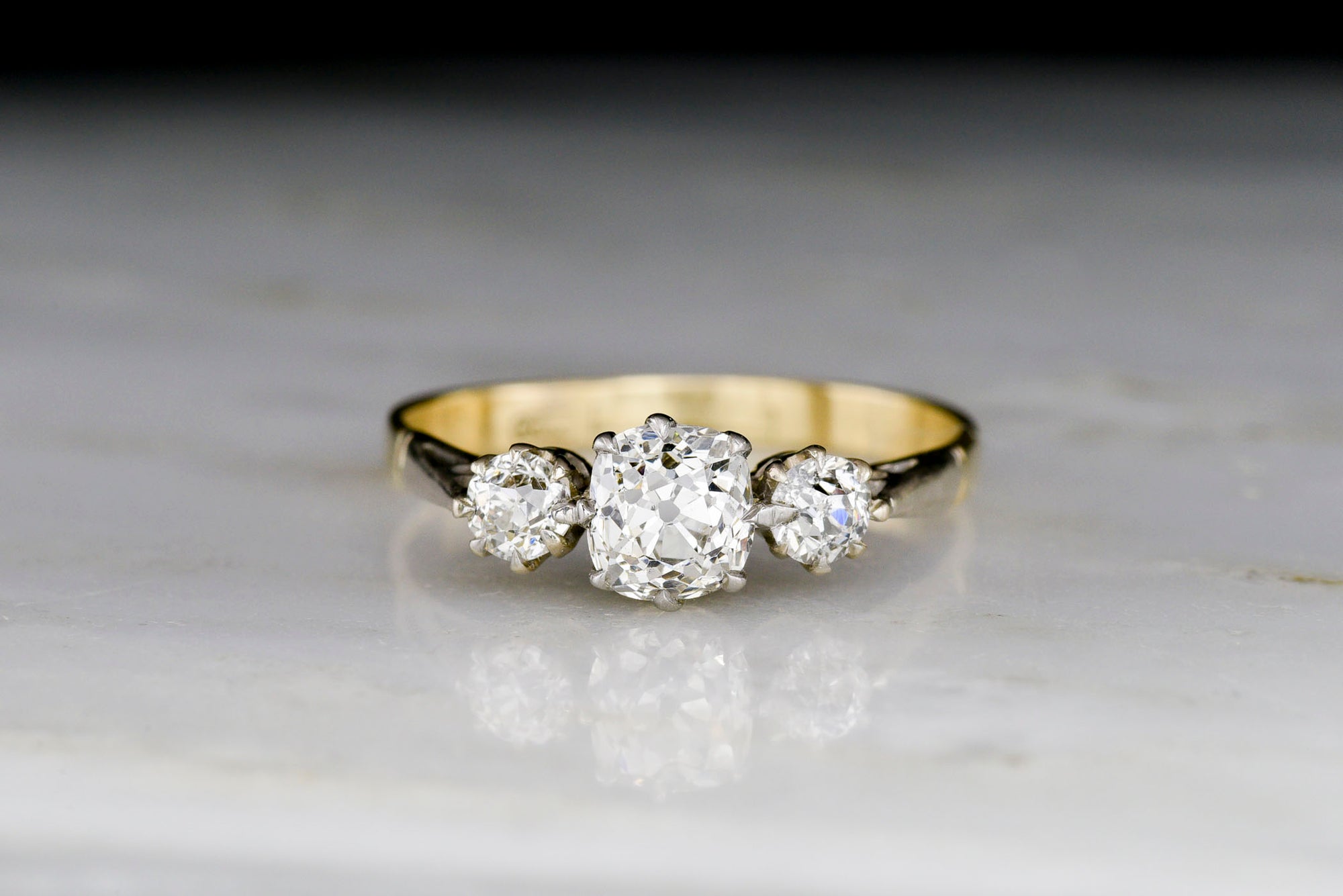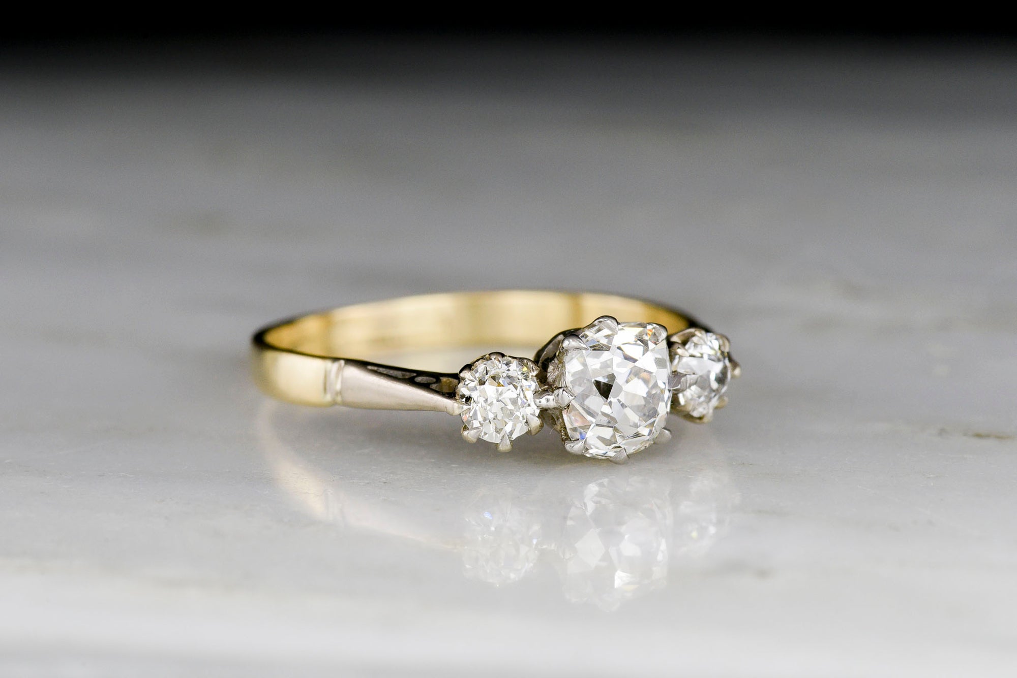 Sold OutVintage Gold and Platinum Three-Stone Old Mine Cut and Old European Cut Diamond Ring