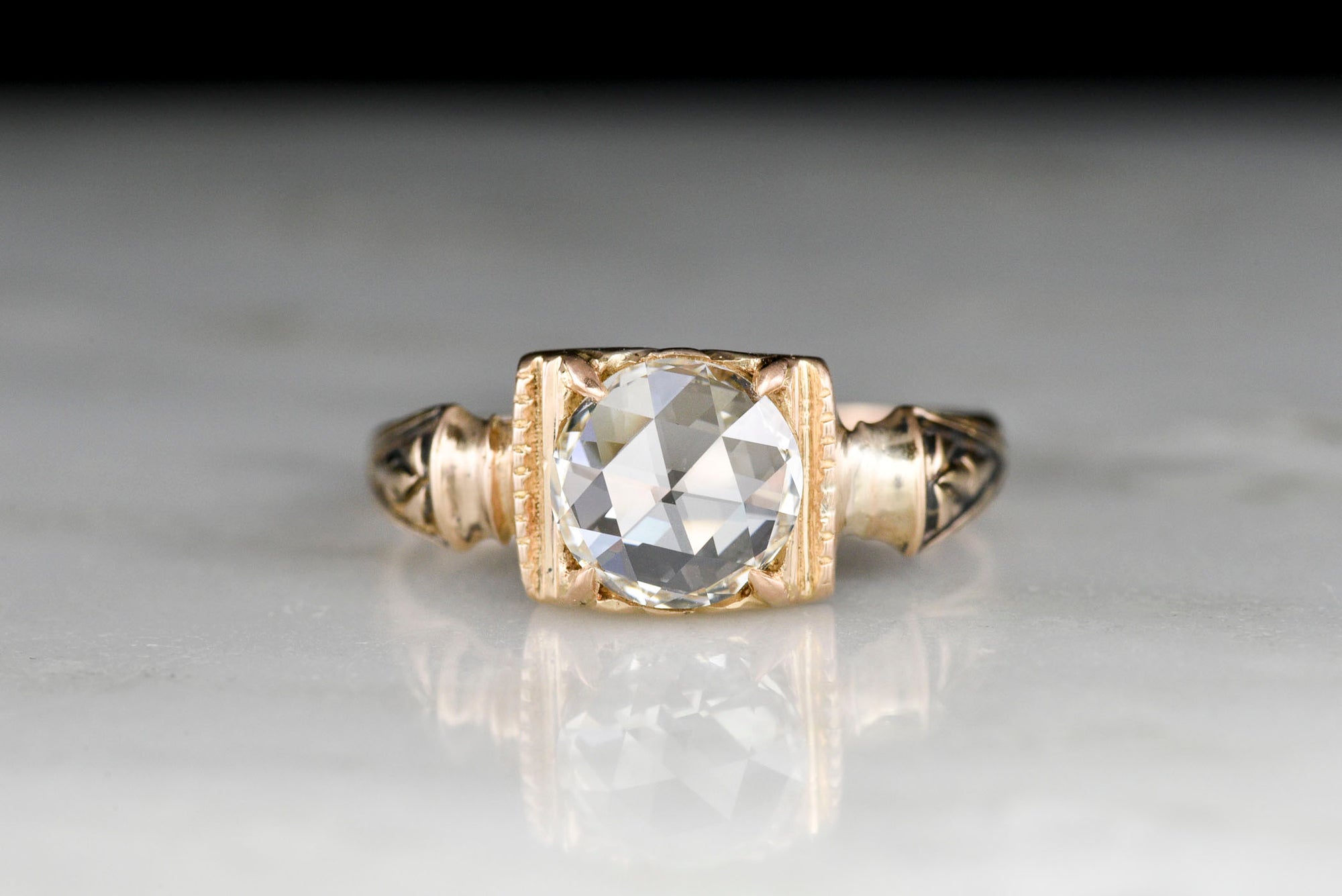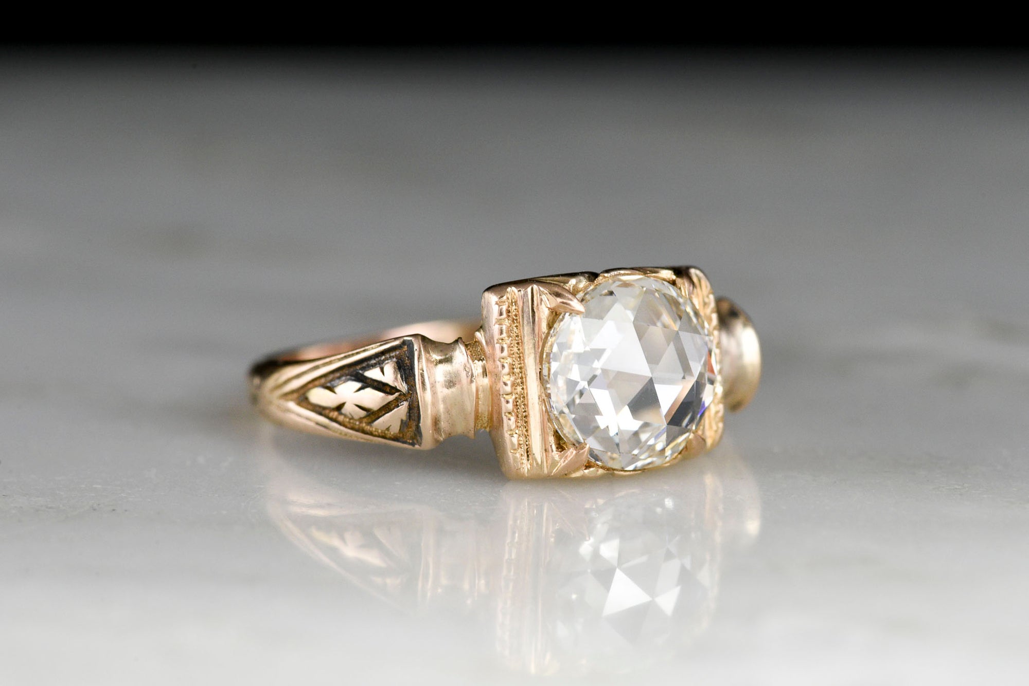 Sold Outc. 1880s Victorian Gold Ring with a Round Rose Cut Diamond Center