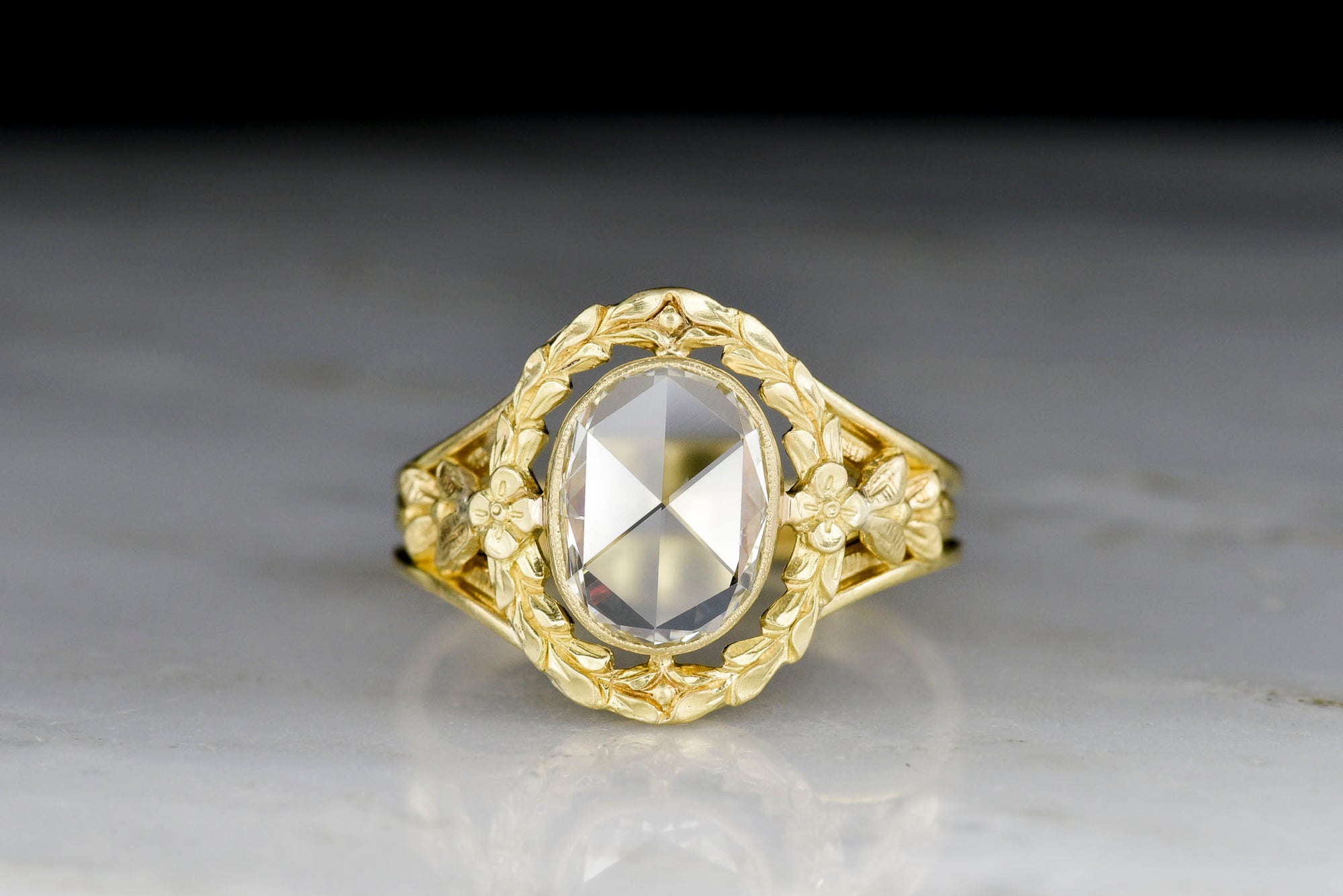 Sold OutBelle Époque Laurel Ring with an Oval Rose Cut Diamond Center