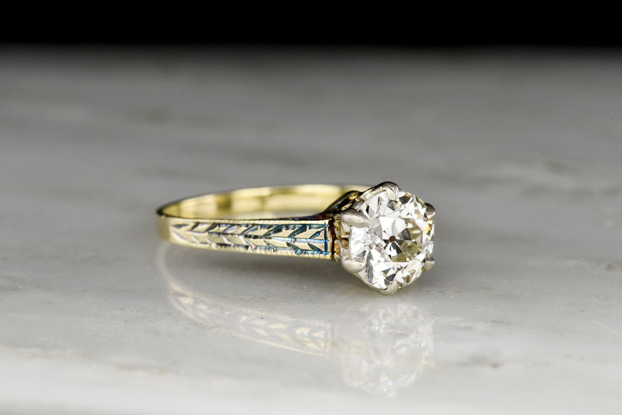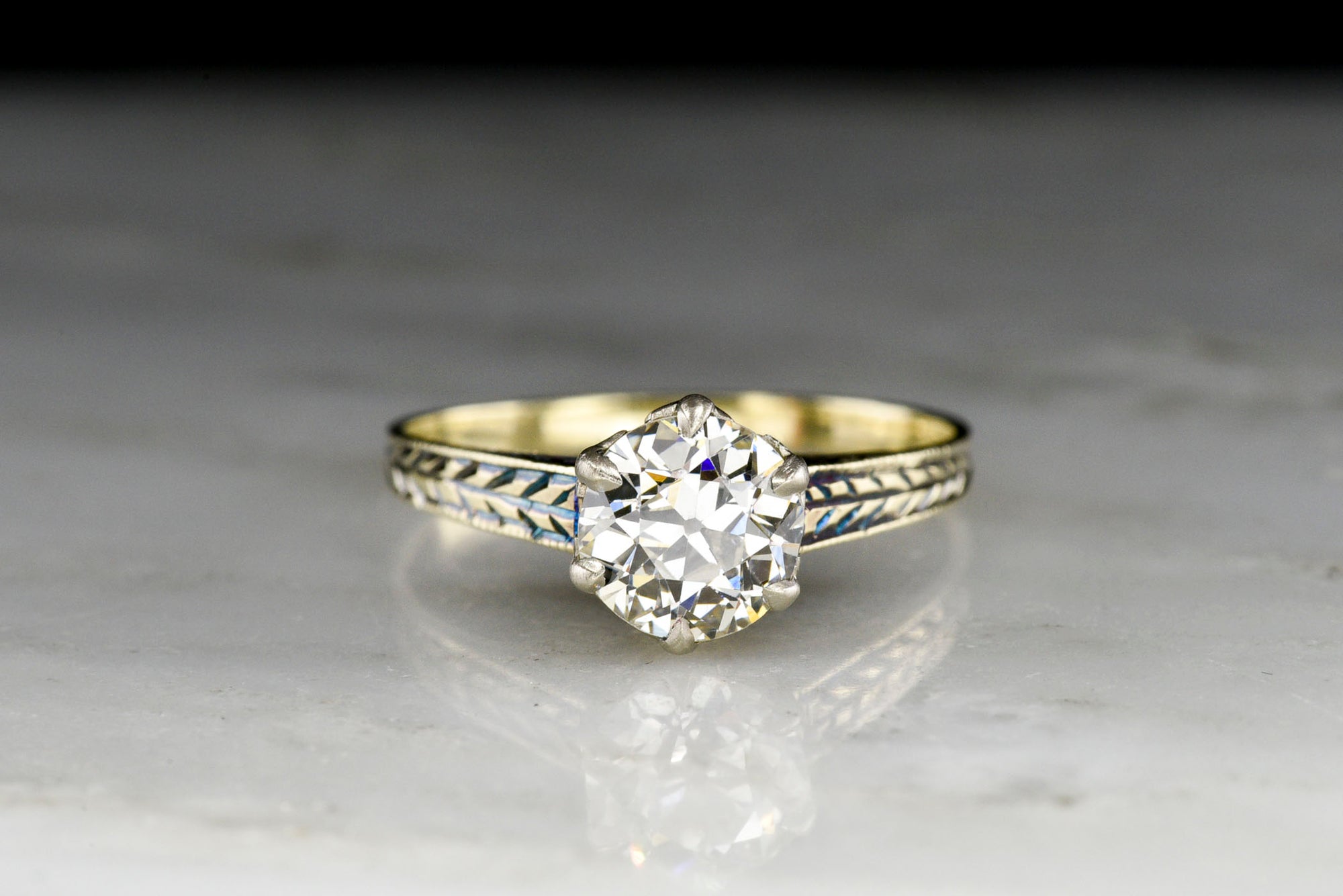 Sold OutEarly 1900s Gold Solitaire Engagement Ring with Ornate Shoulders