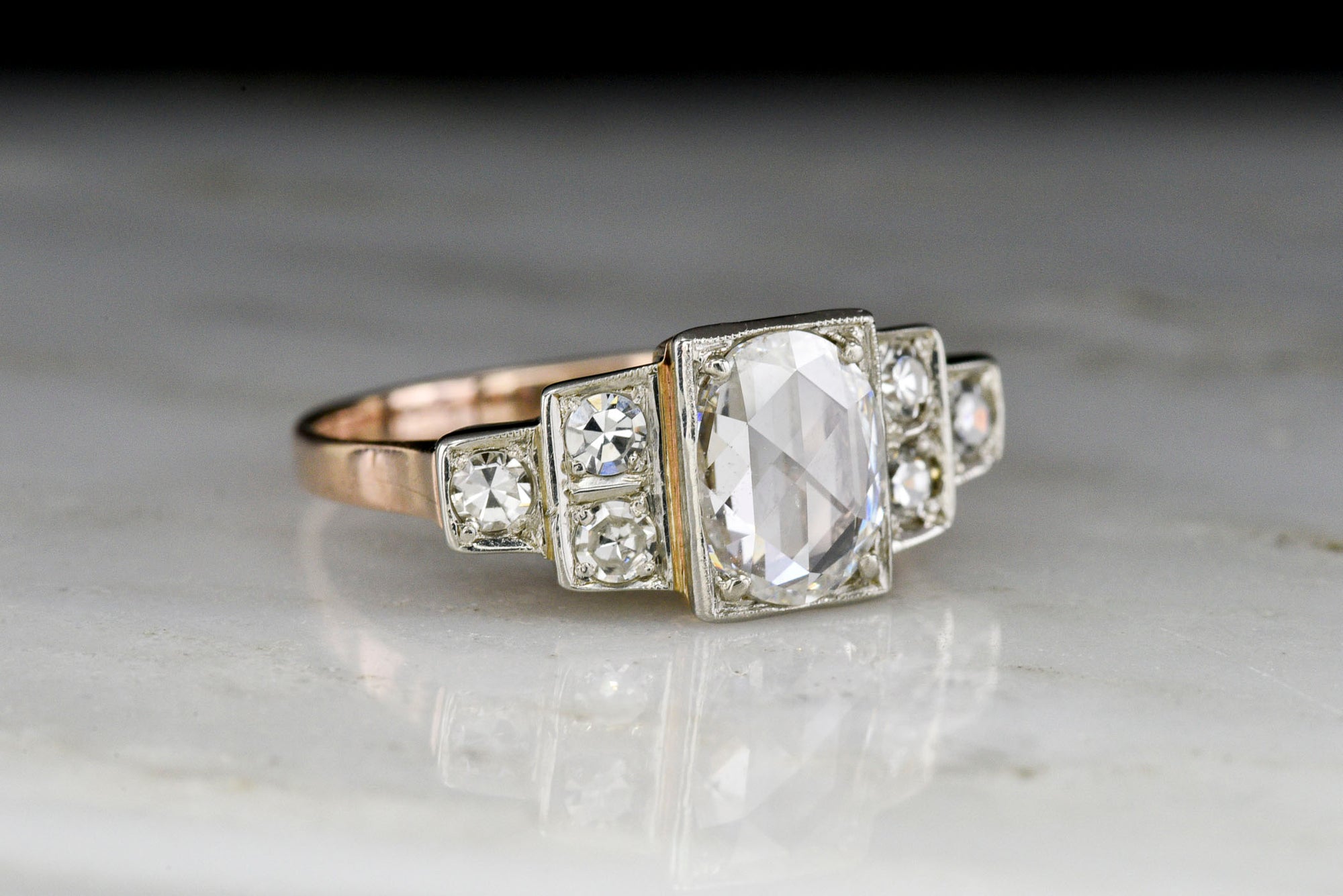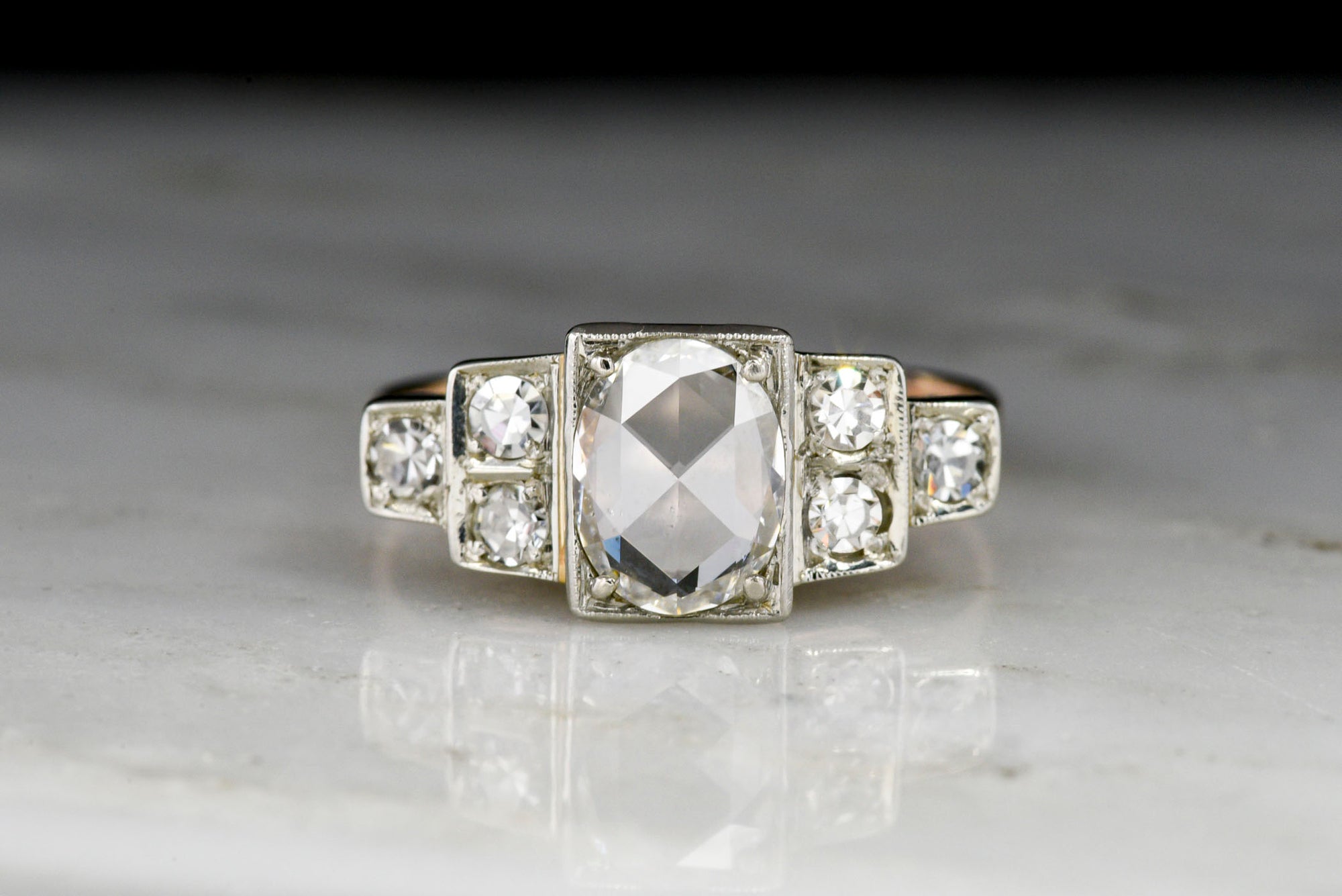 Sold OutArt Deco / Retro Box-Tiered Two-Tone Ring with an Oval Rose Cut Diamond Center