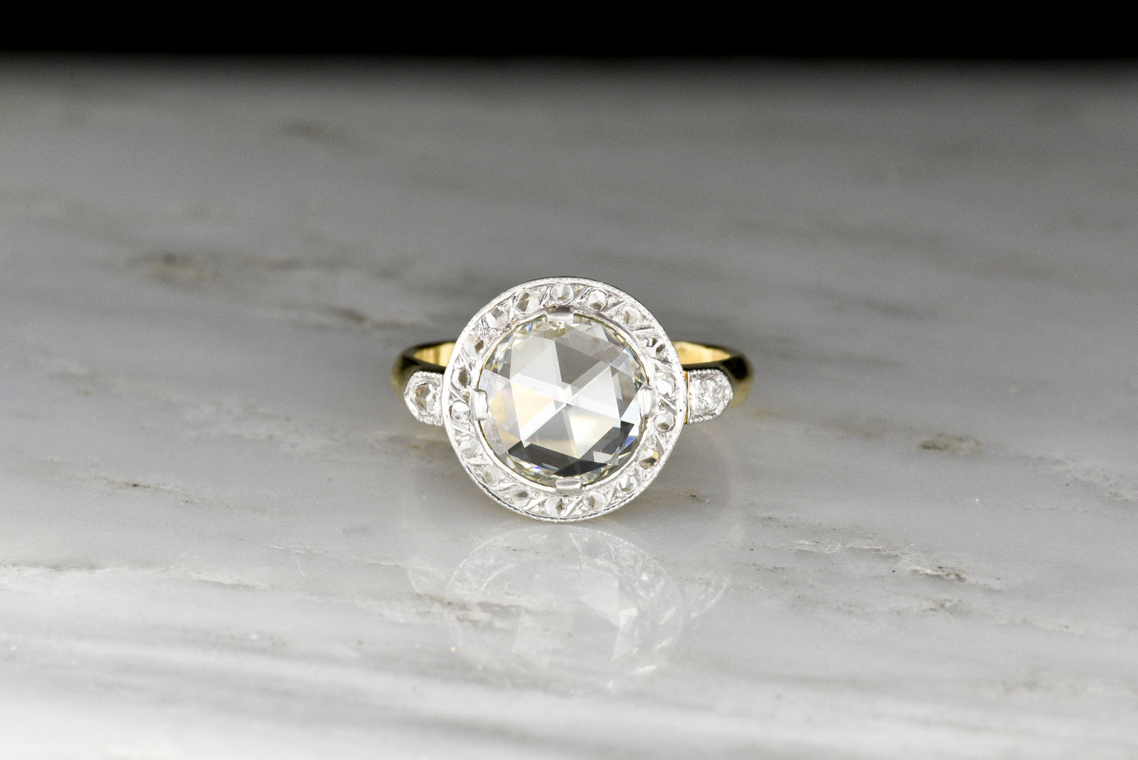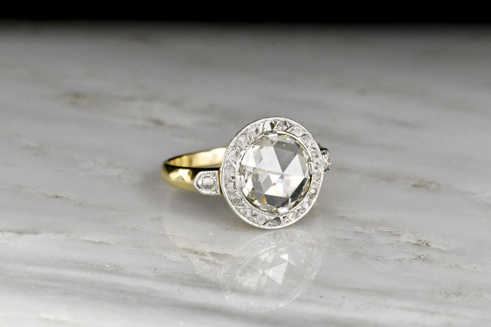Sold OutBelle Époque Gold and Platinum Ring with a 1.64 Carat Rose Cut Diamond Center