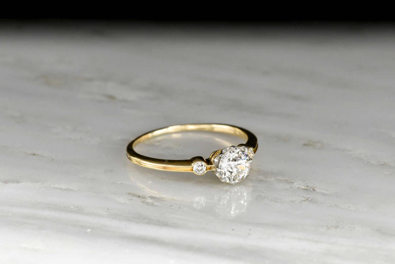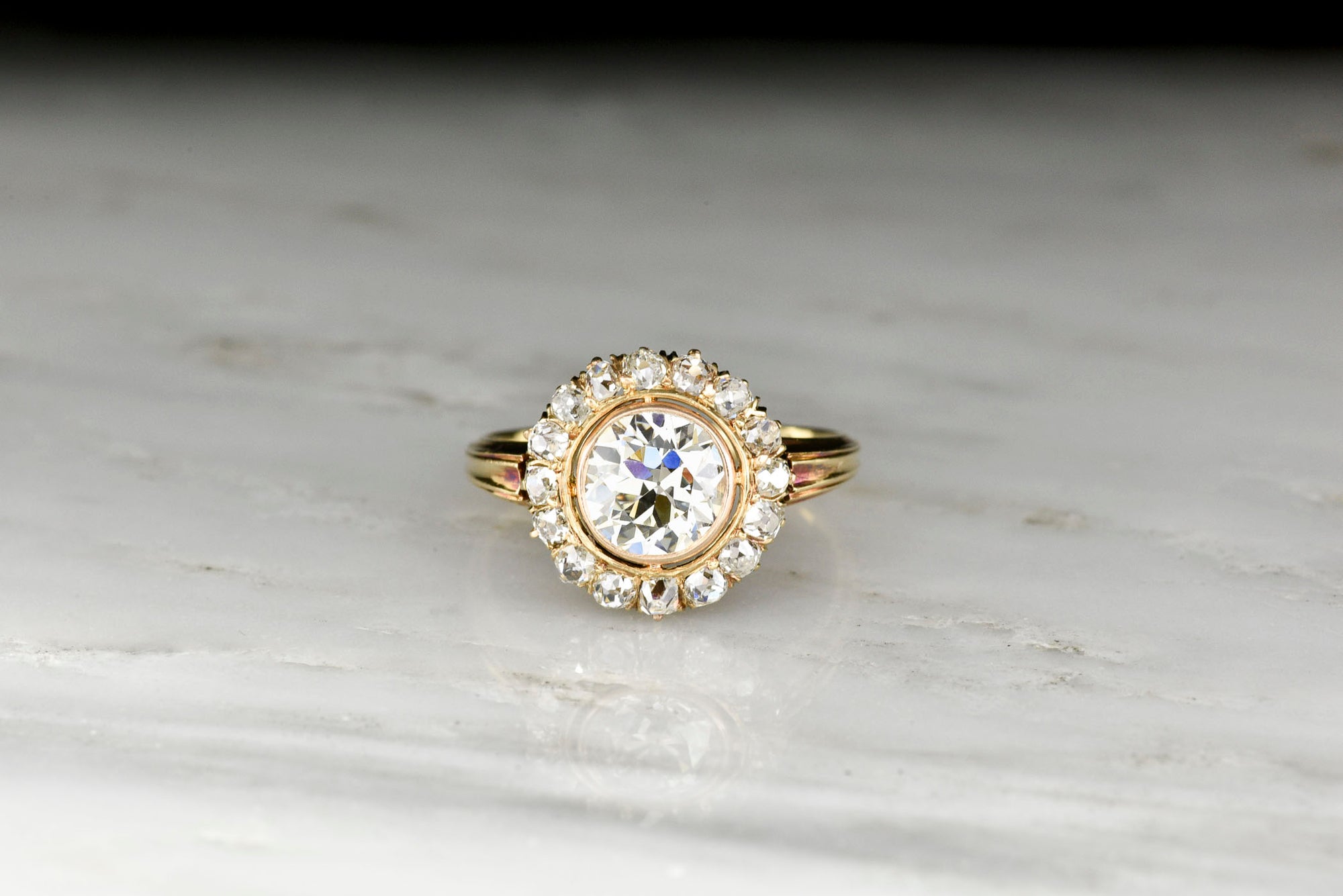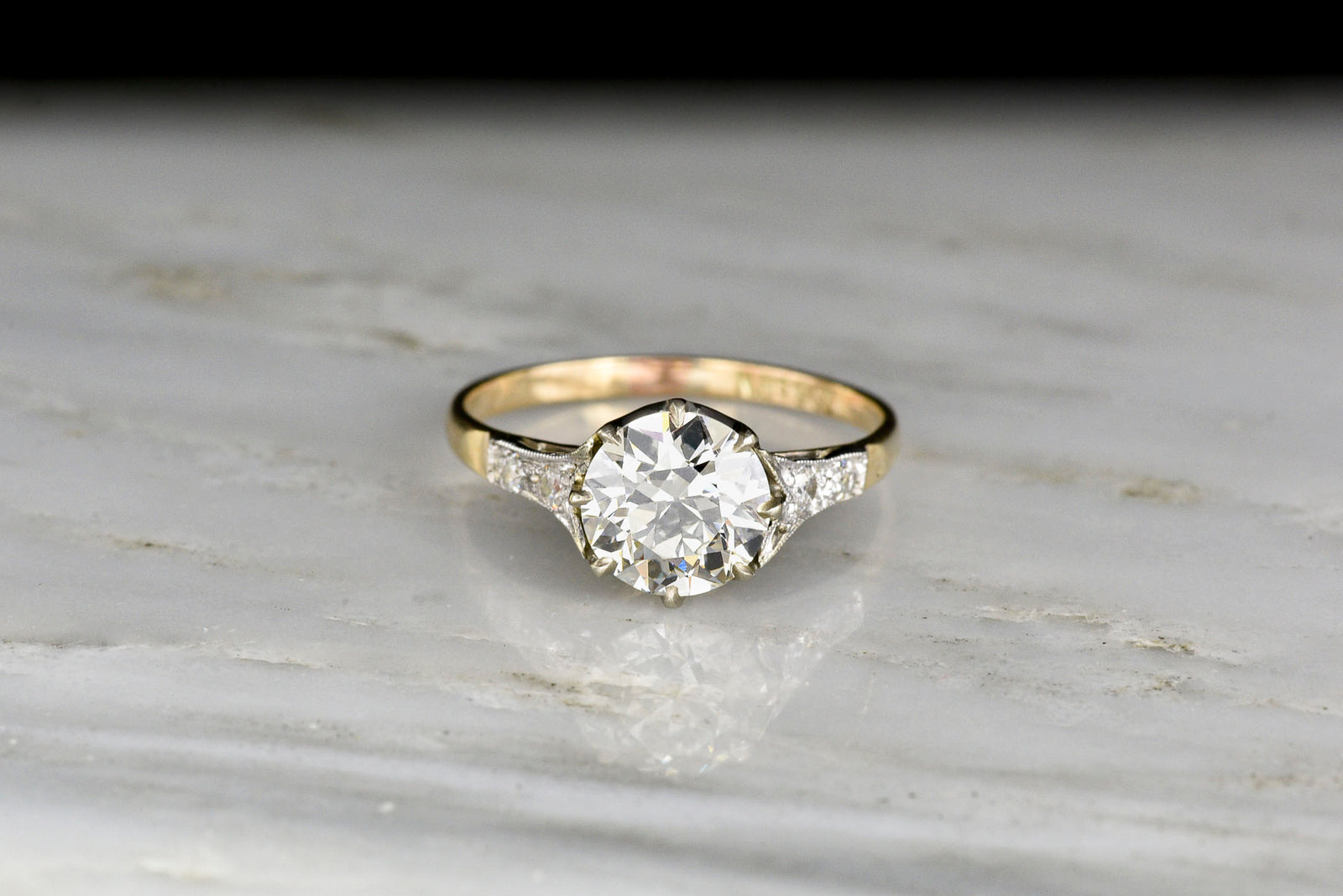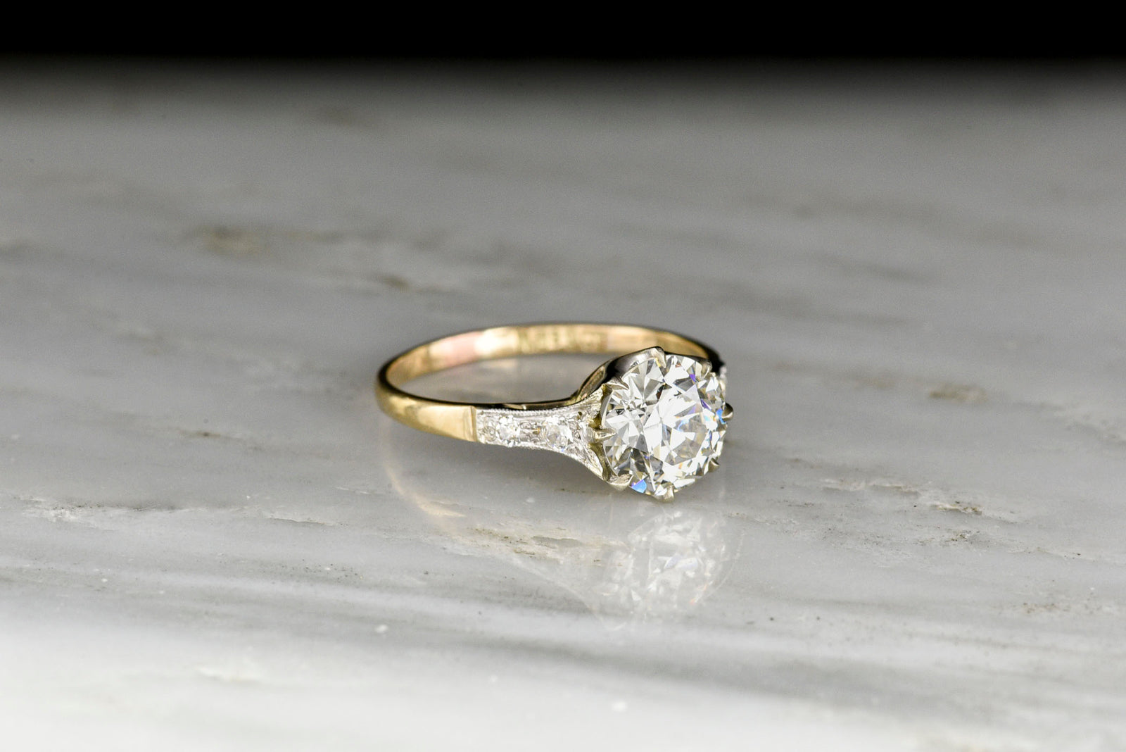 Sold OutBelle Époque Gold and Platinum Engagement Ring with a GIA 1.51 Carat Diamond Center