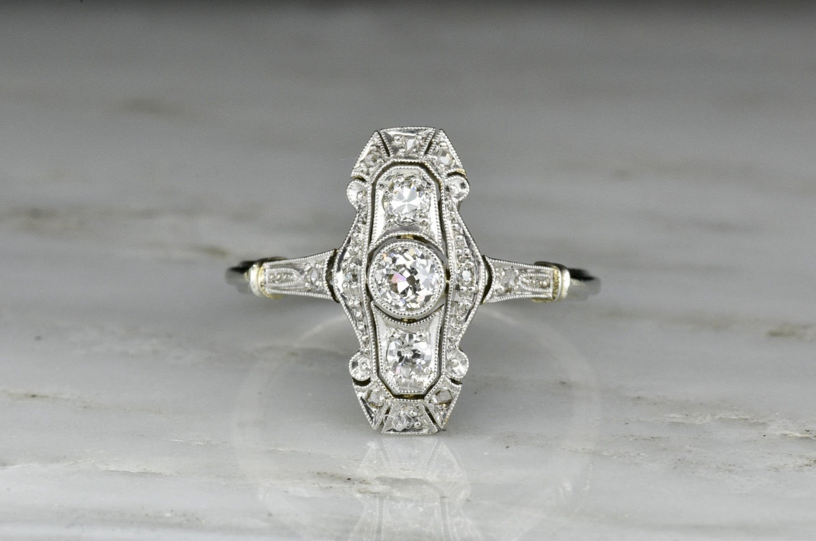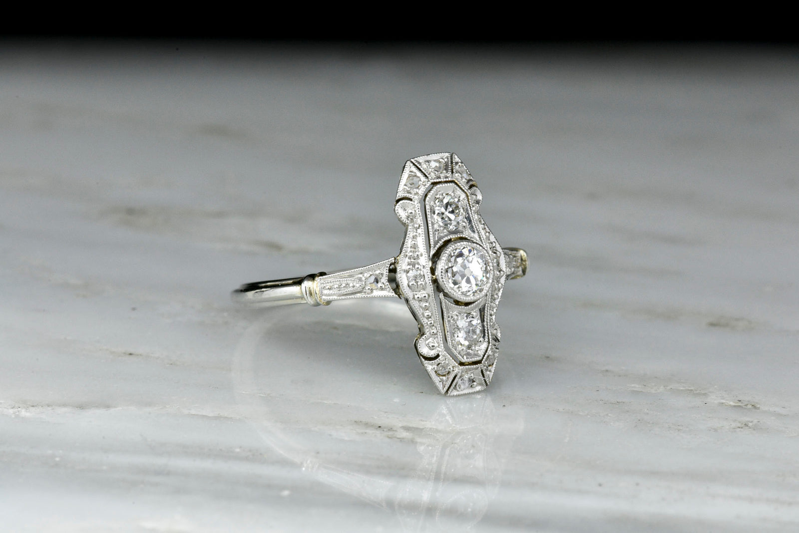 Sold OutLate Edwardian / Early Art Deco Shield Ring in Platinum and White Gold