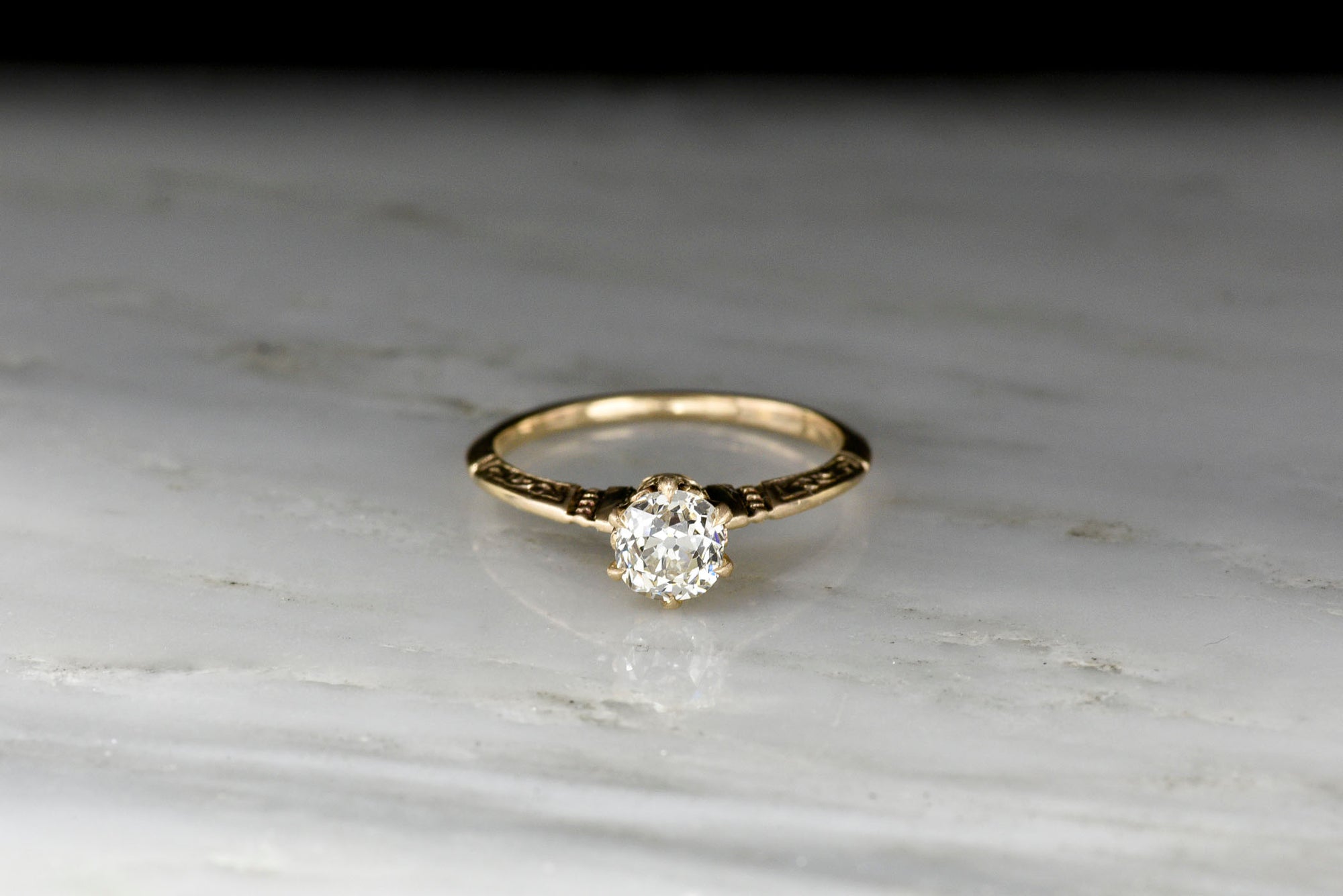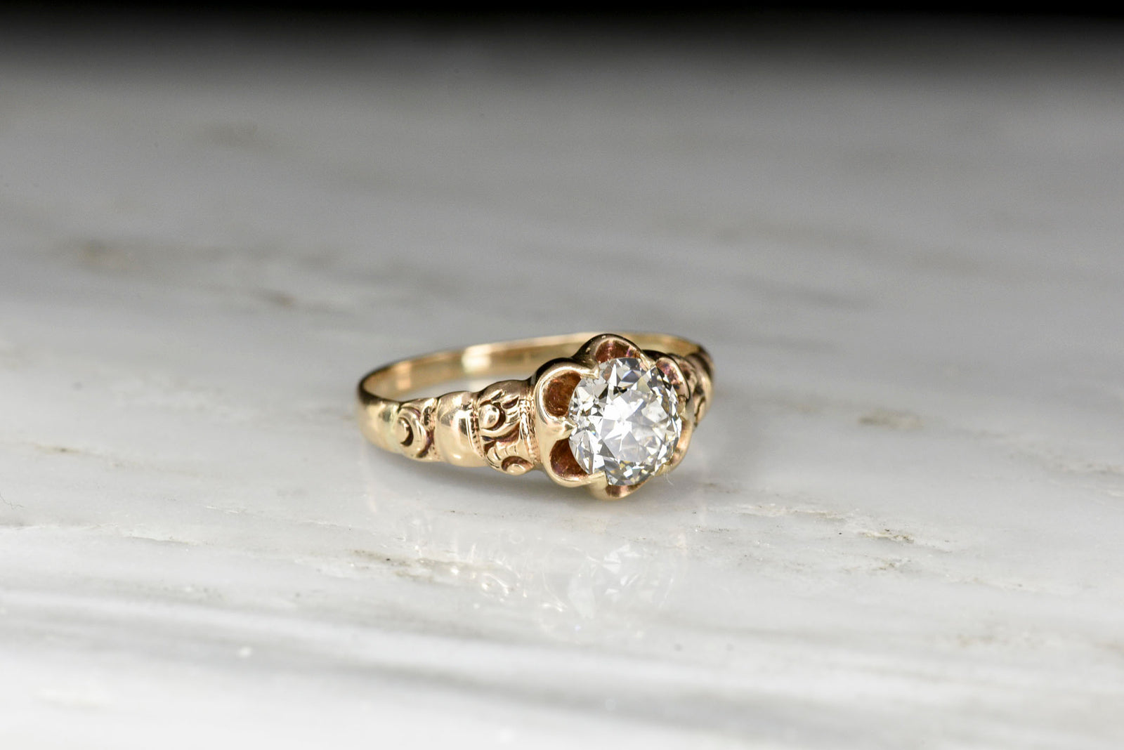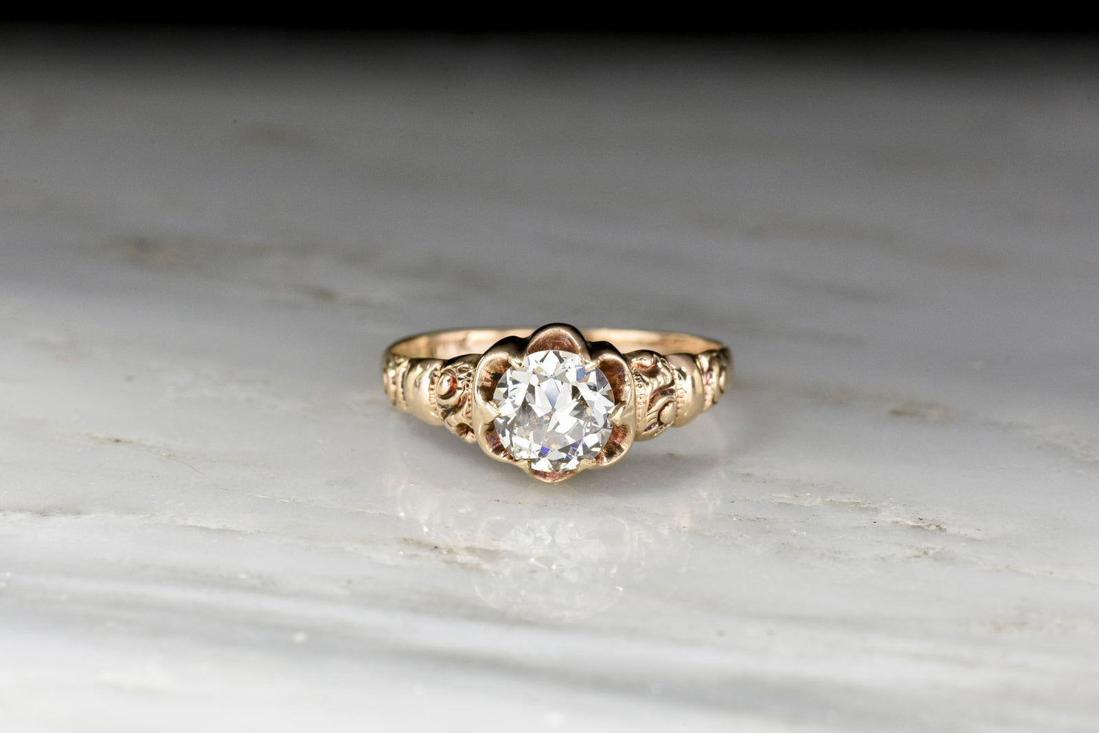Sold OutVictorian Six-Prong Buttercup Engagement Ring with Deep-Relief Engraving