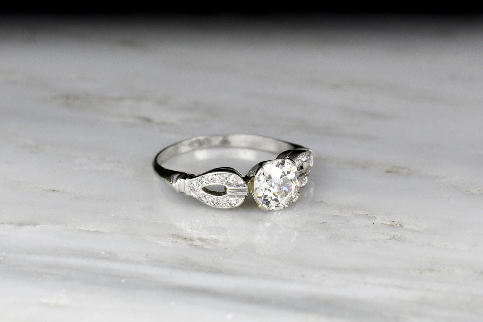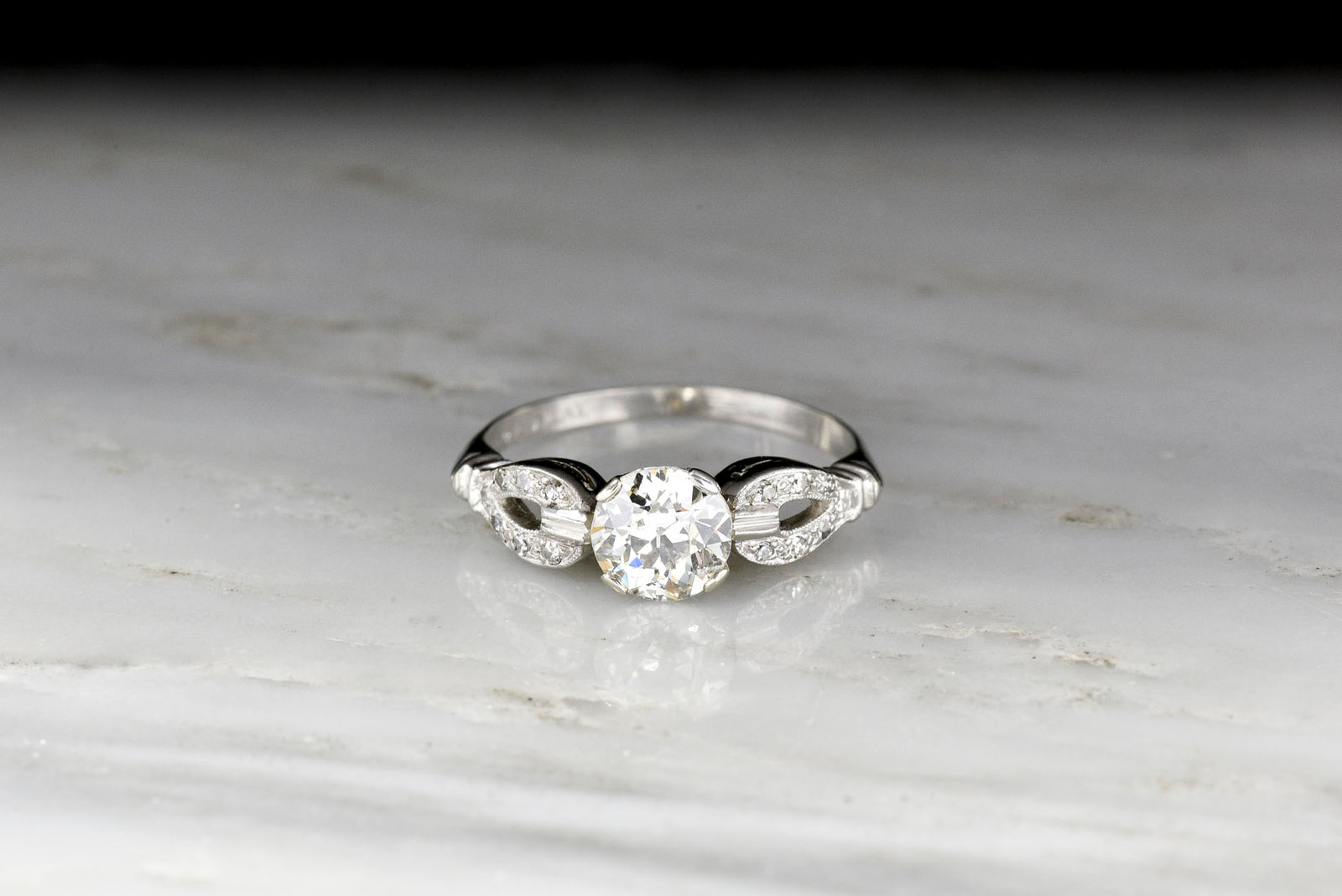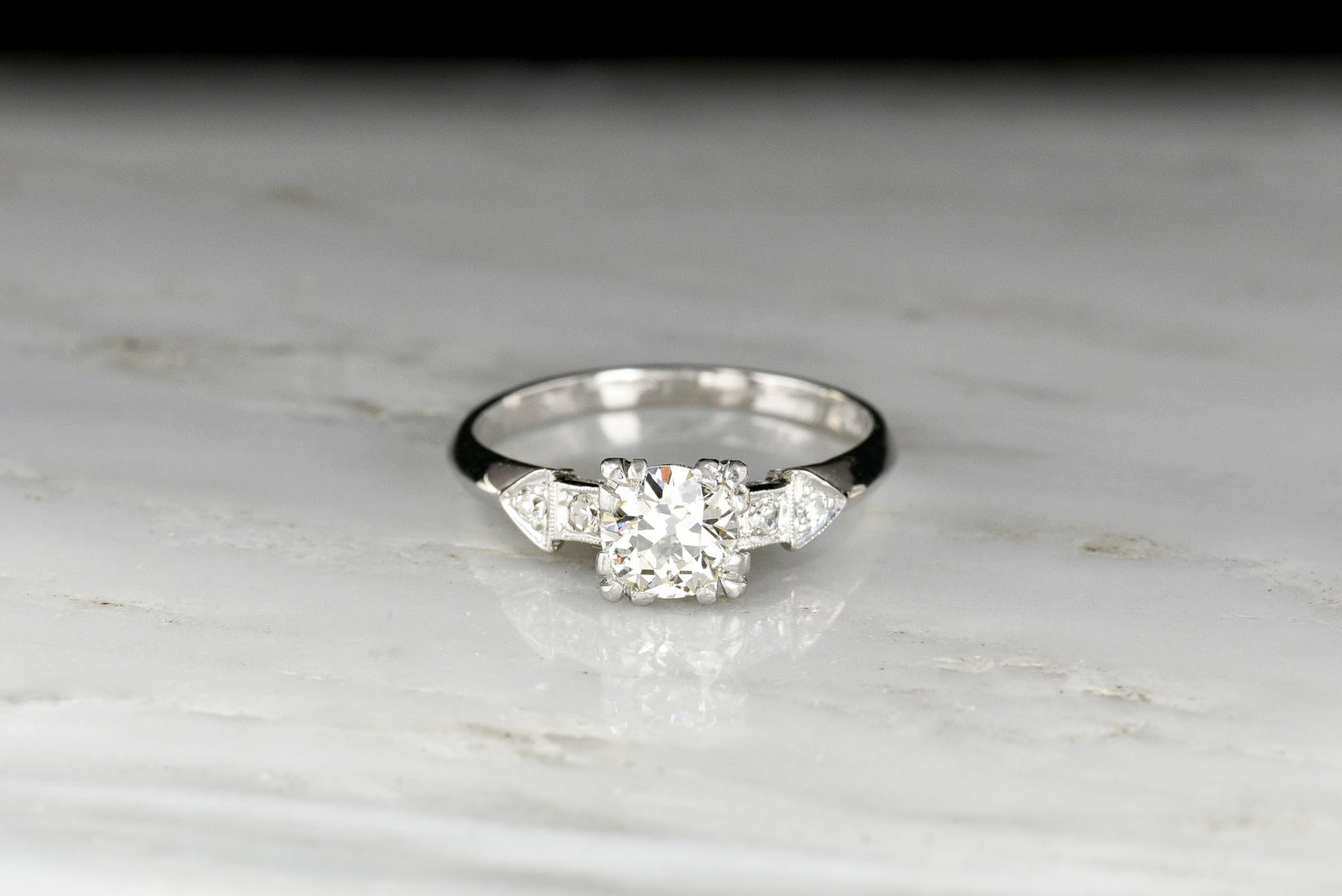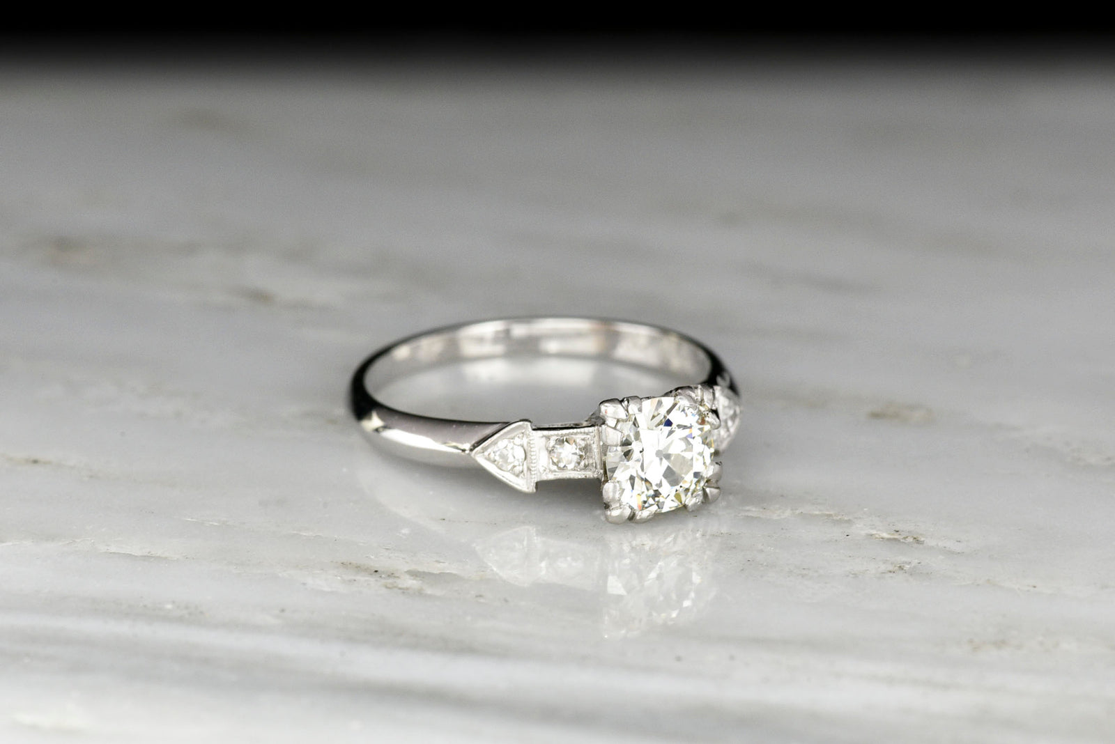Sold OutLate Art Deco/ Mid Century Platinum Engagement Ring with "Buckle-and-Clasp" Shoulders