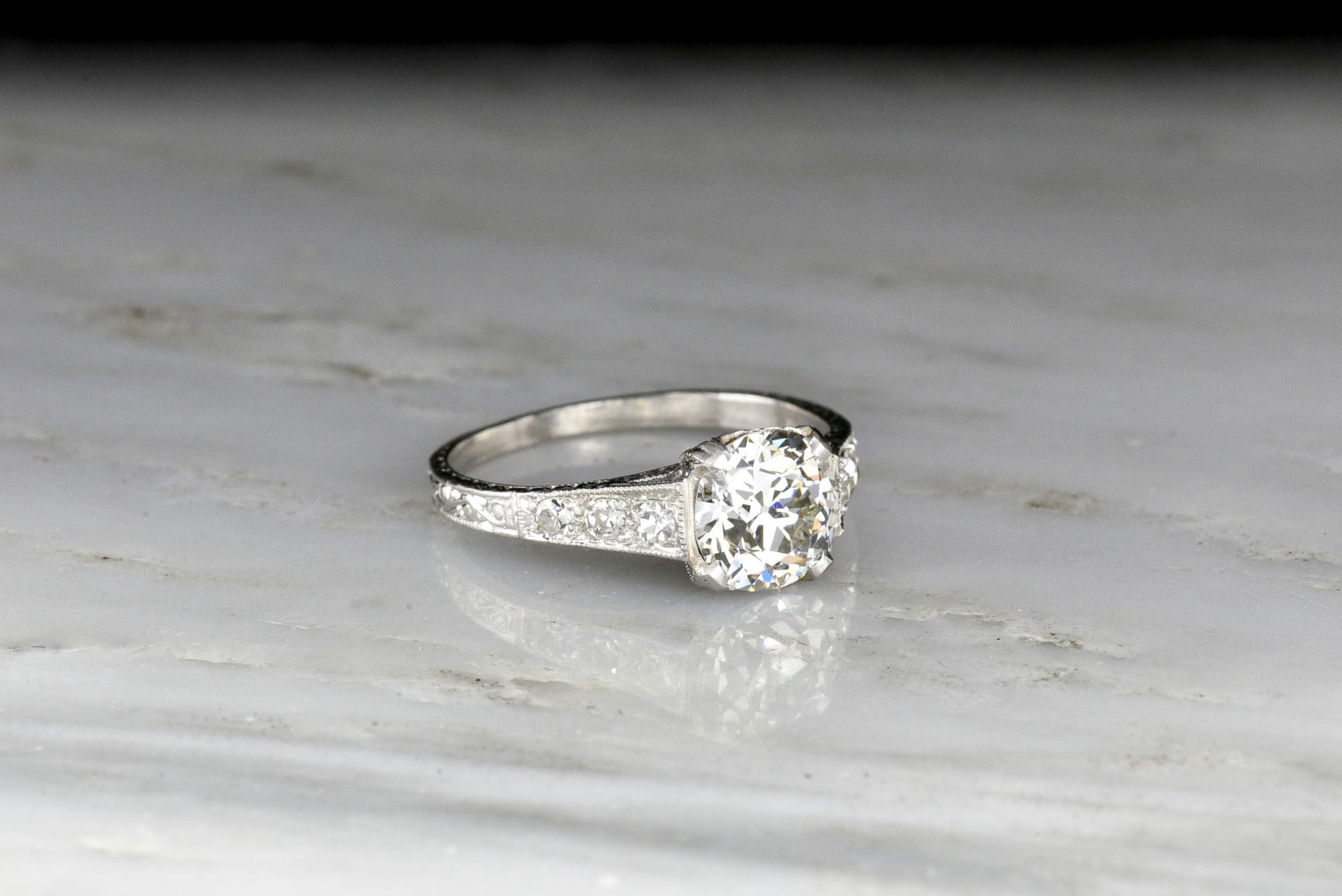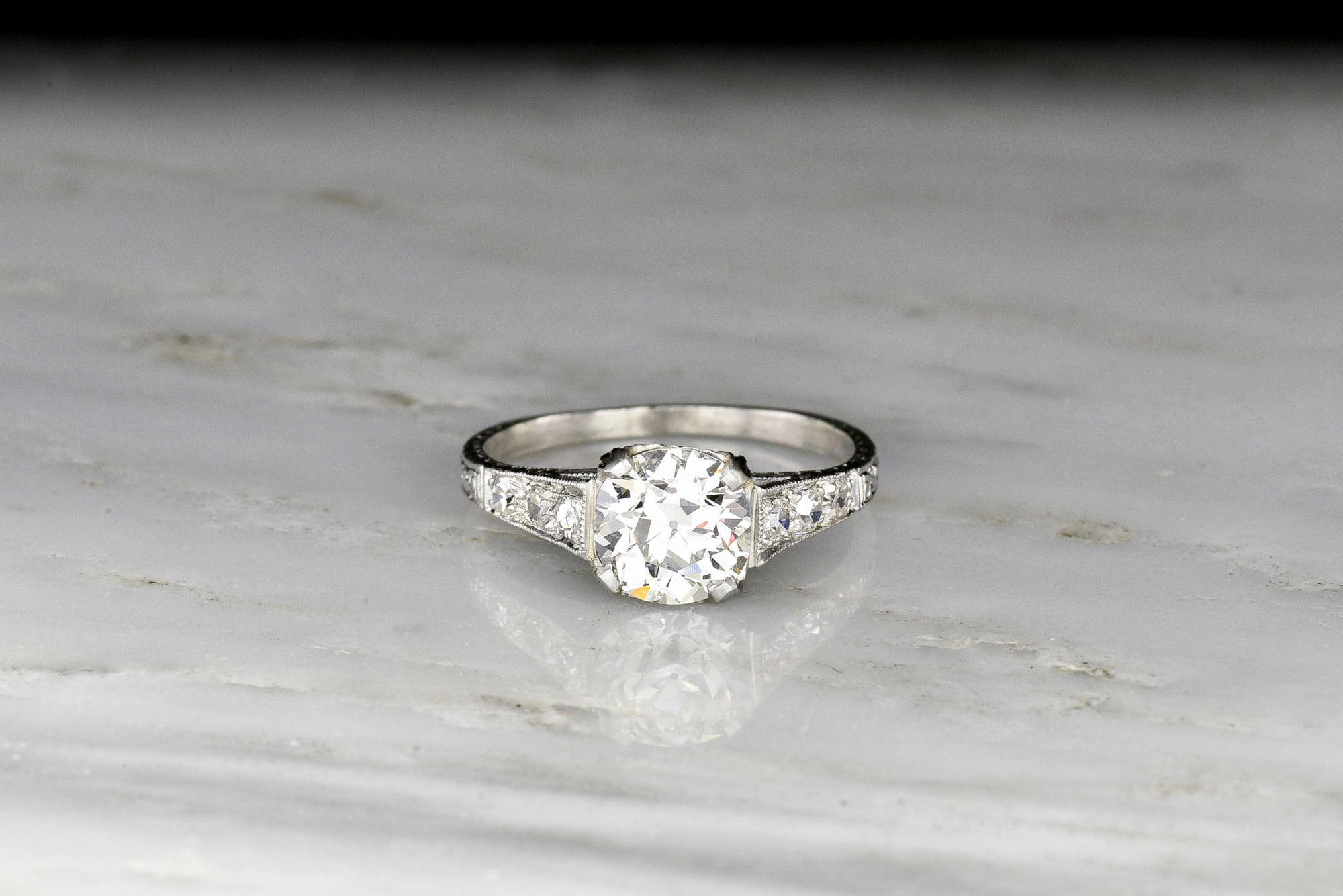 Sold OutOrnate Edwardian Platinum Engagement Ring with a GIA Old European Cut Diamond Center