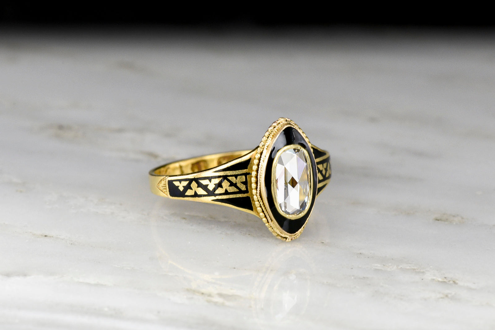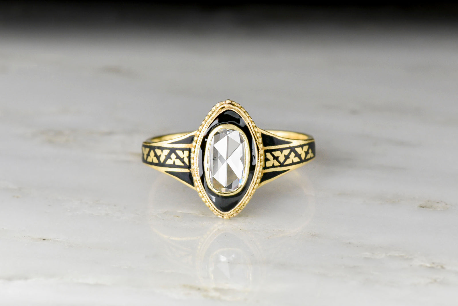 Sold OutVictorian (1883) Mourning Ring / Unique Engagement Ring with an Oval Rose Cut Diamond Center