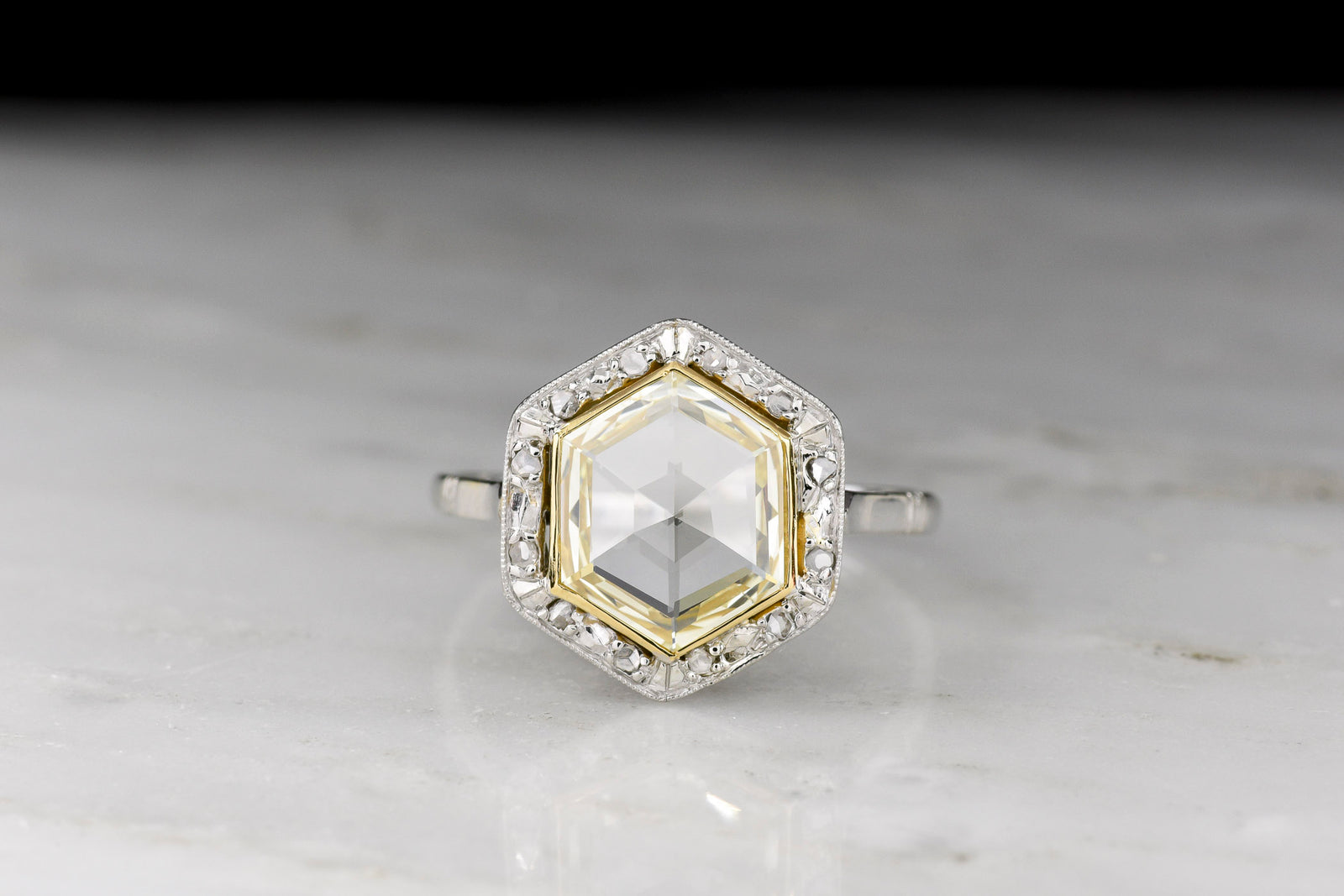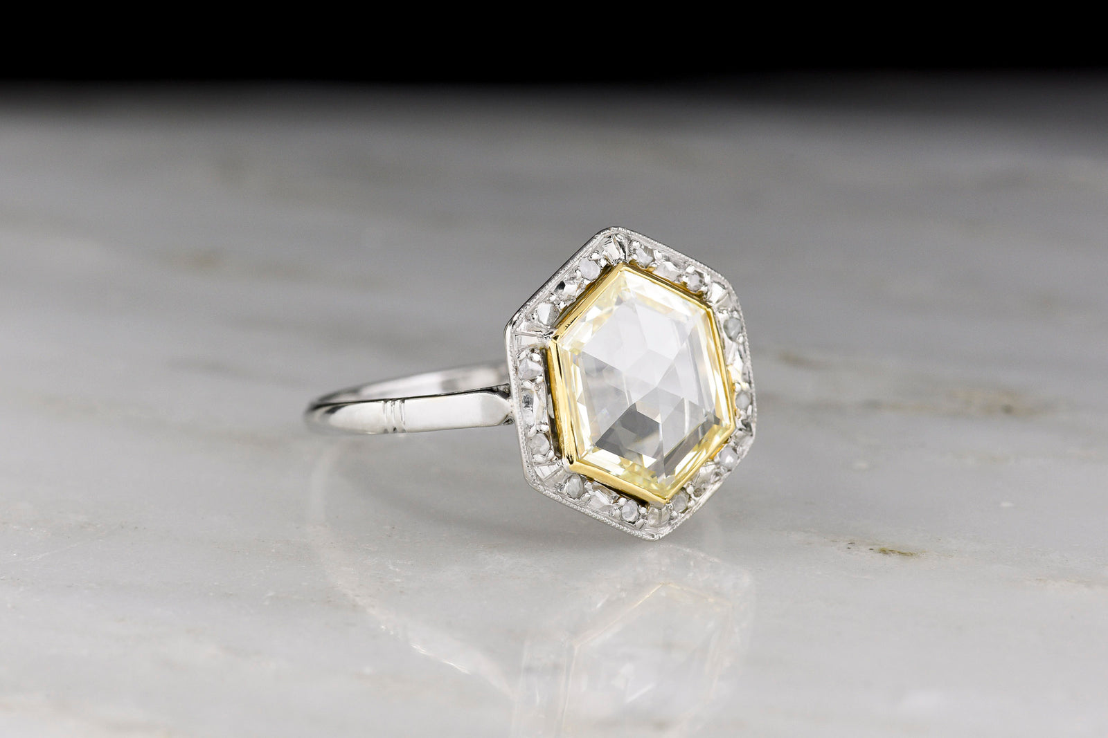Sold Outc. 1920s Art Deco Hexagonal Two-Tone Ring with an Inverted Yellow Step Cut Diamond
