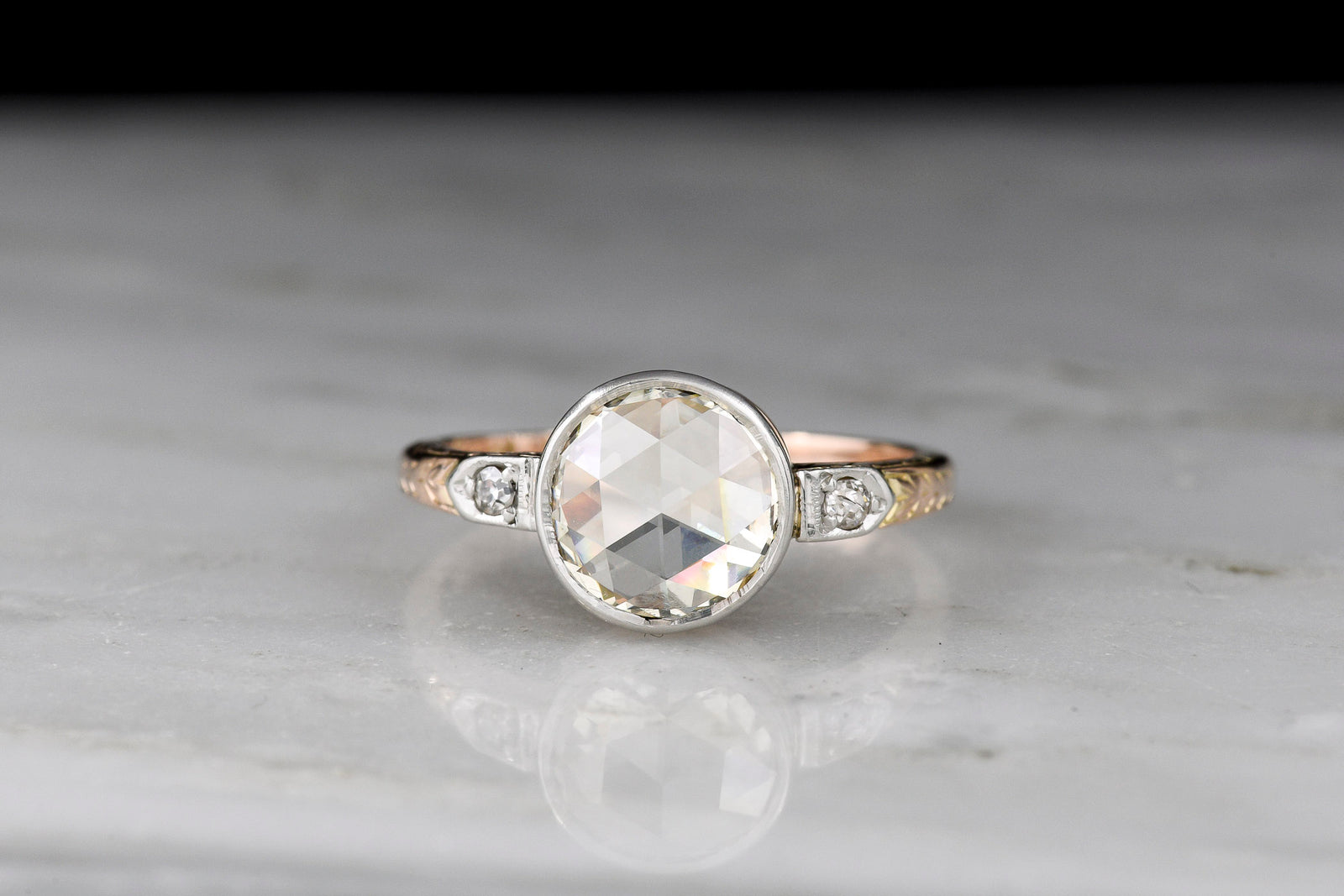Sold OutAntique Gilded Age 15K Gold and Platinum Ring with a Bezel-Set Rose Cut Diamond Center