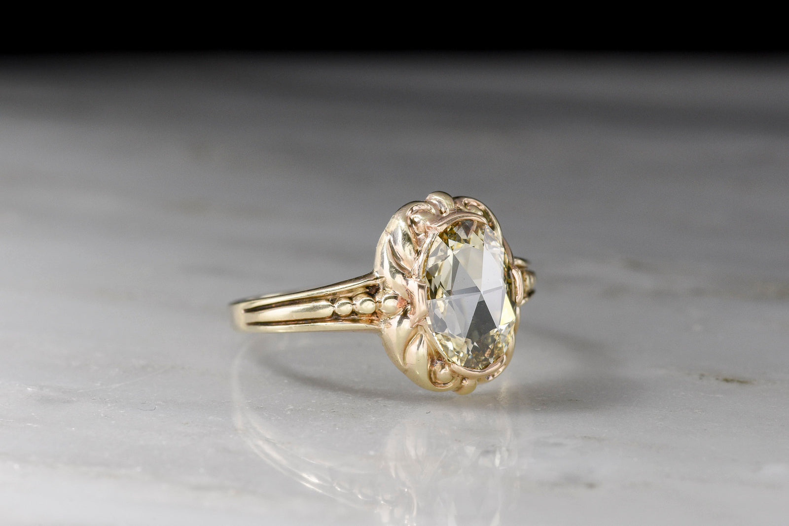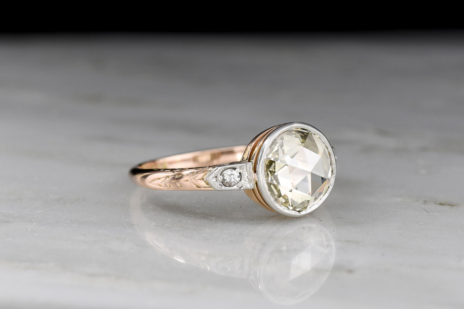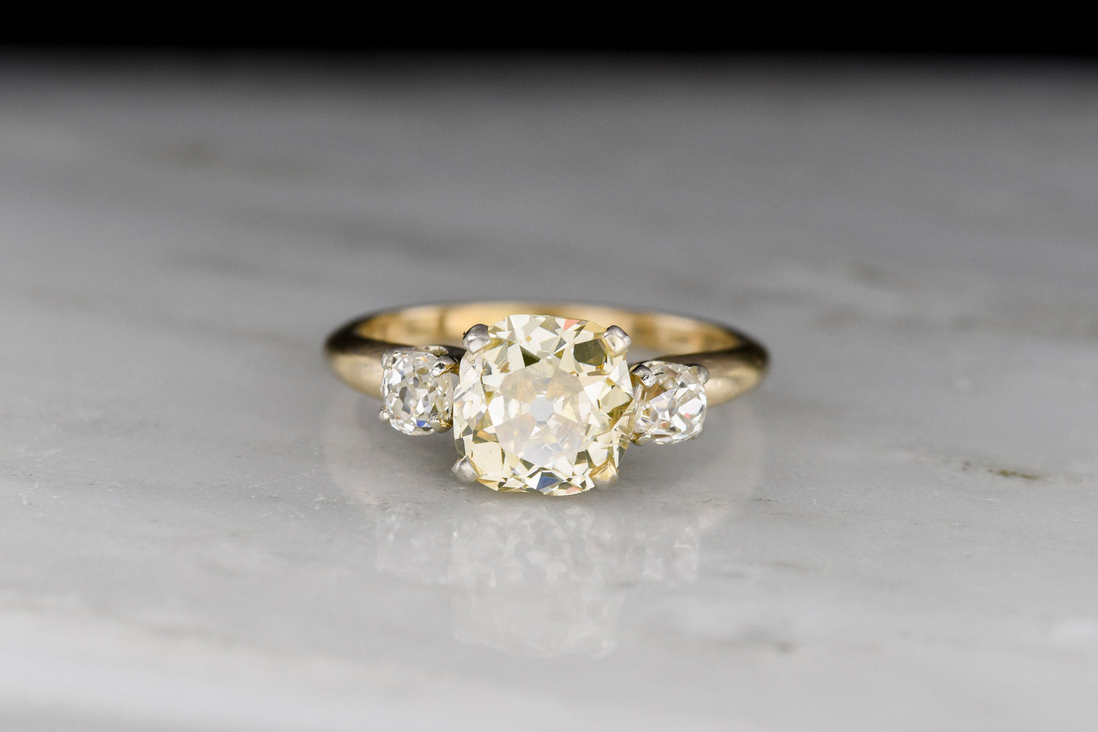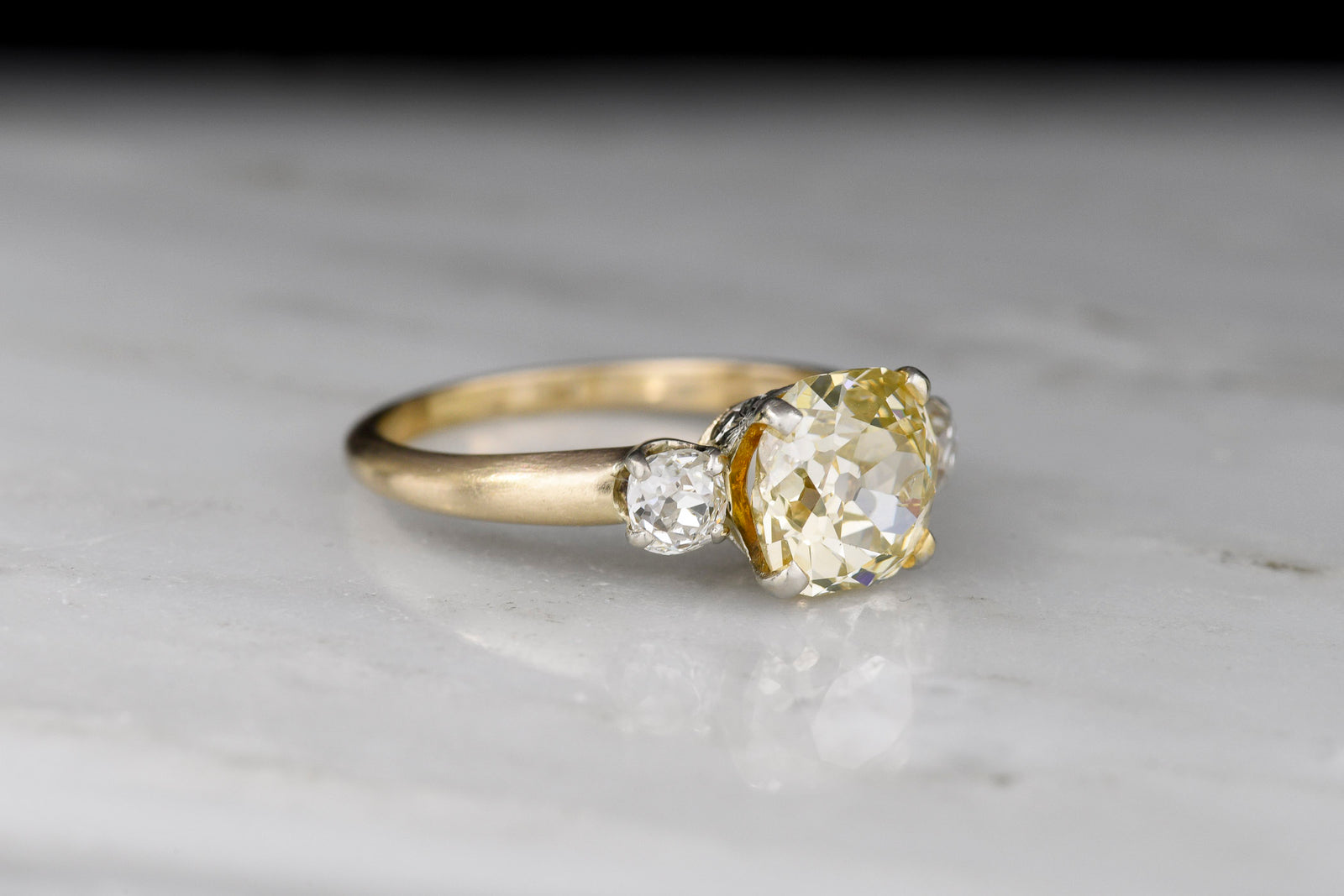 Sold OutFancy-Color 1.63 Ct. Old Mine Cut Diamond in an Engraved Two-Tone Three-Stone Mount