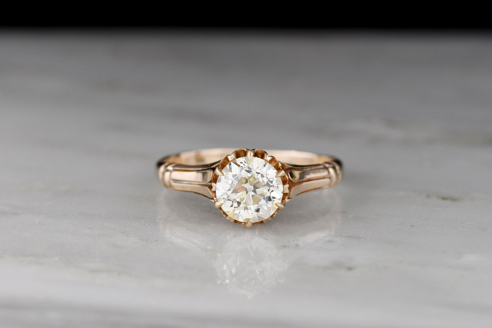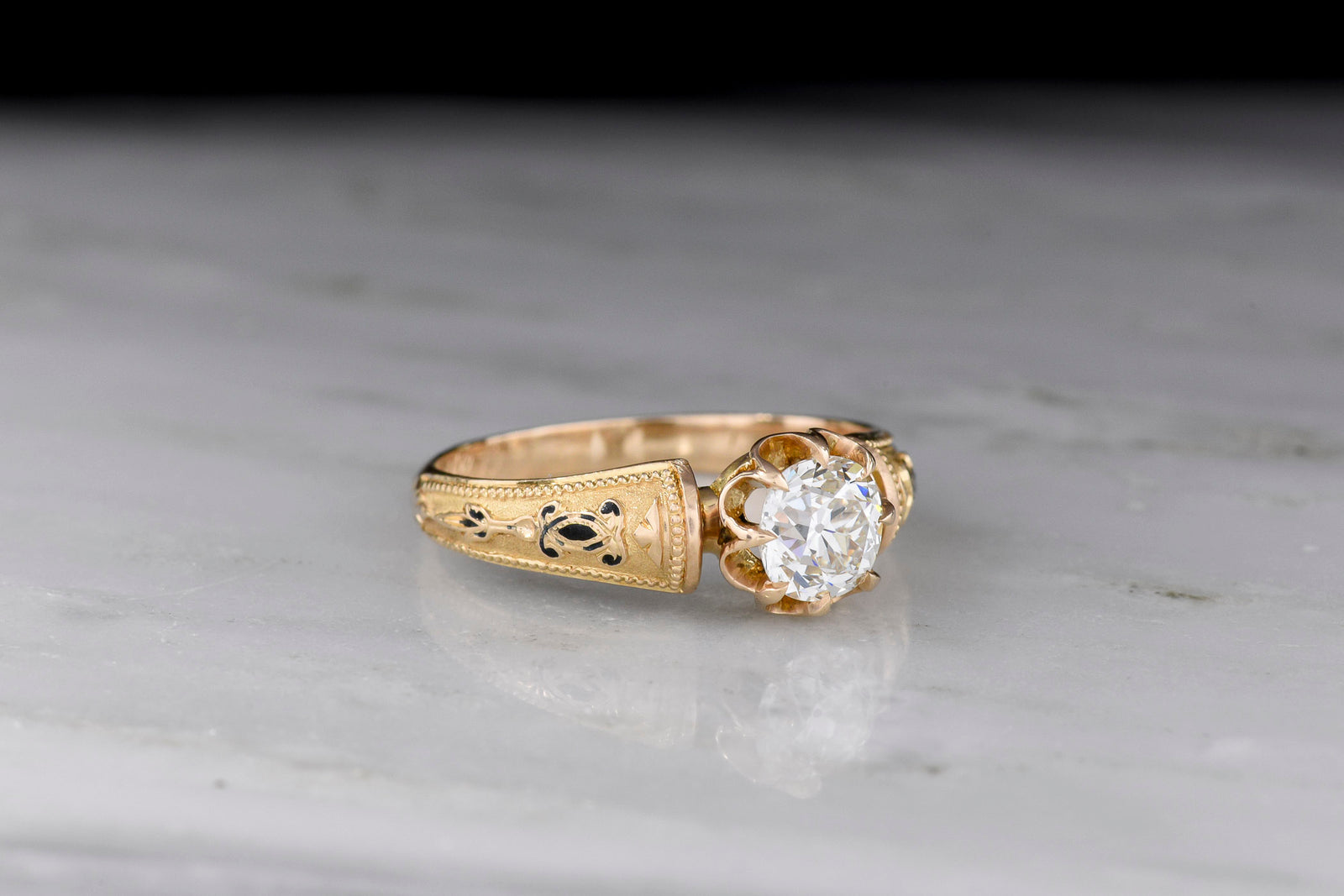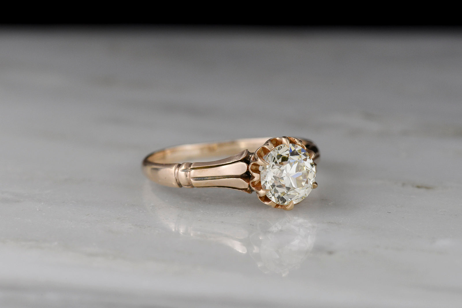Sold OutDated "1873" Gold and Old Mine Cut Diamond Engagement Ring with a Buttercup Basket