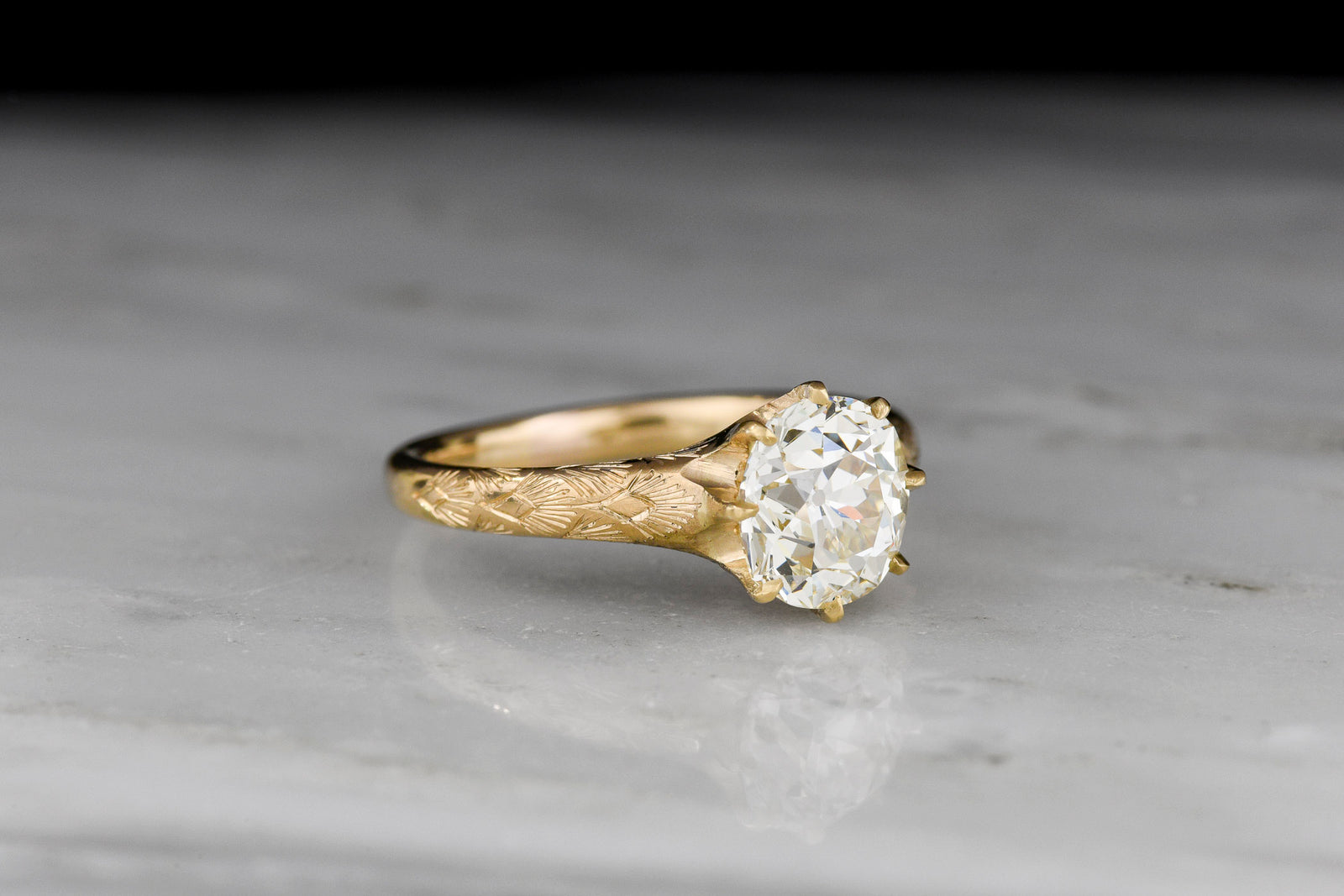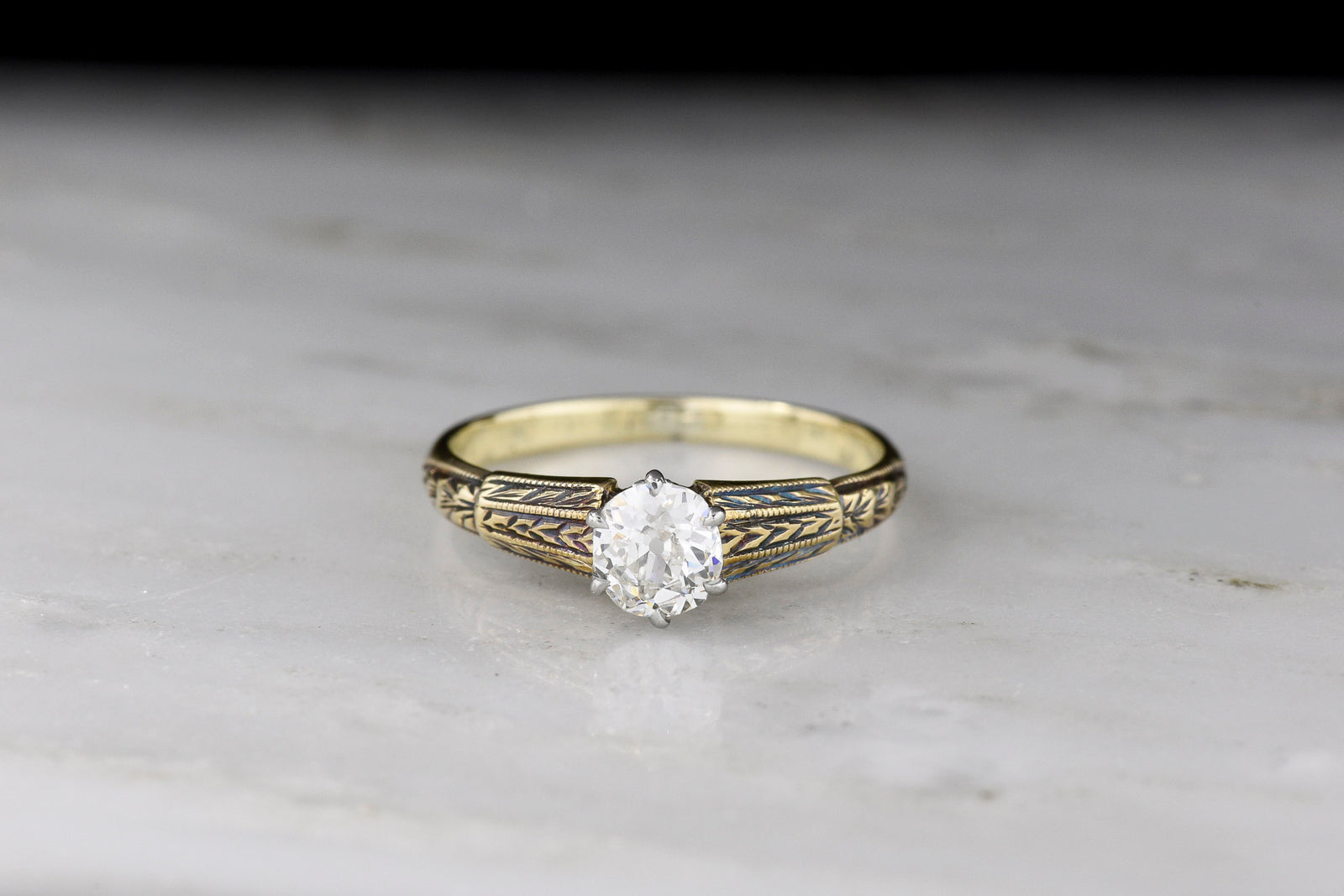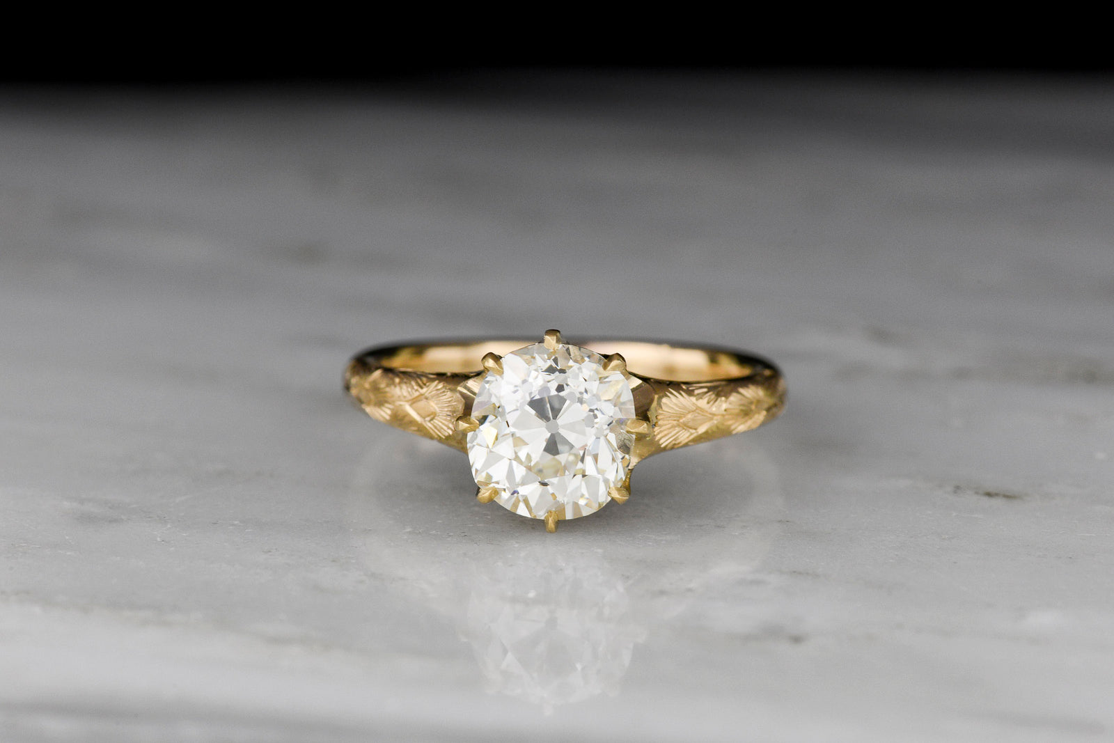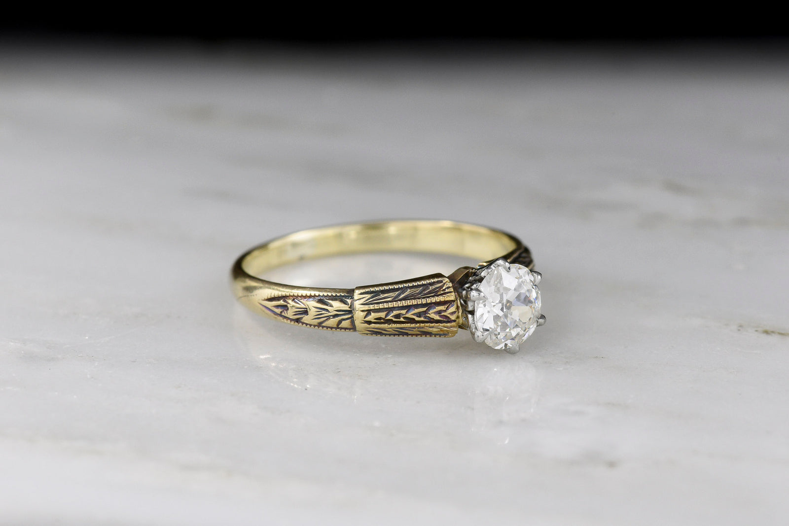 Sold Outc. Early 1900s Engraved Solitaire with a Late Old Mine Cut Diamond