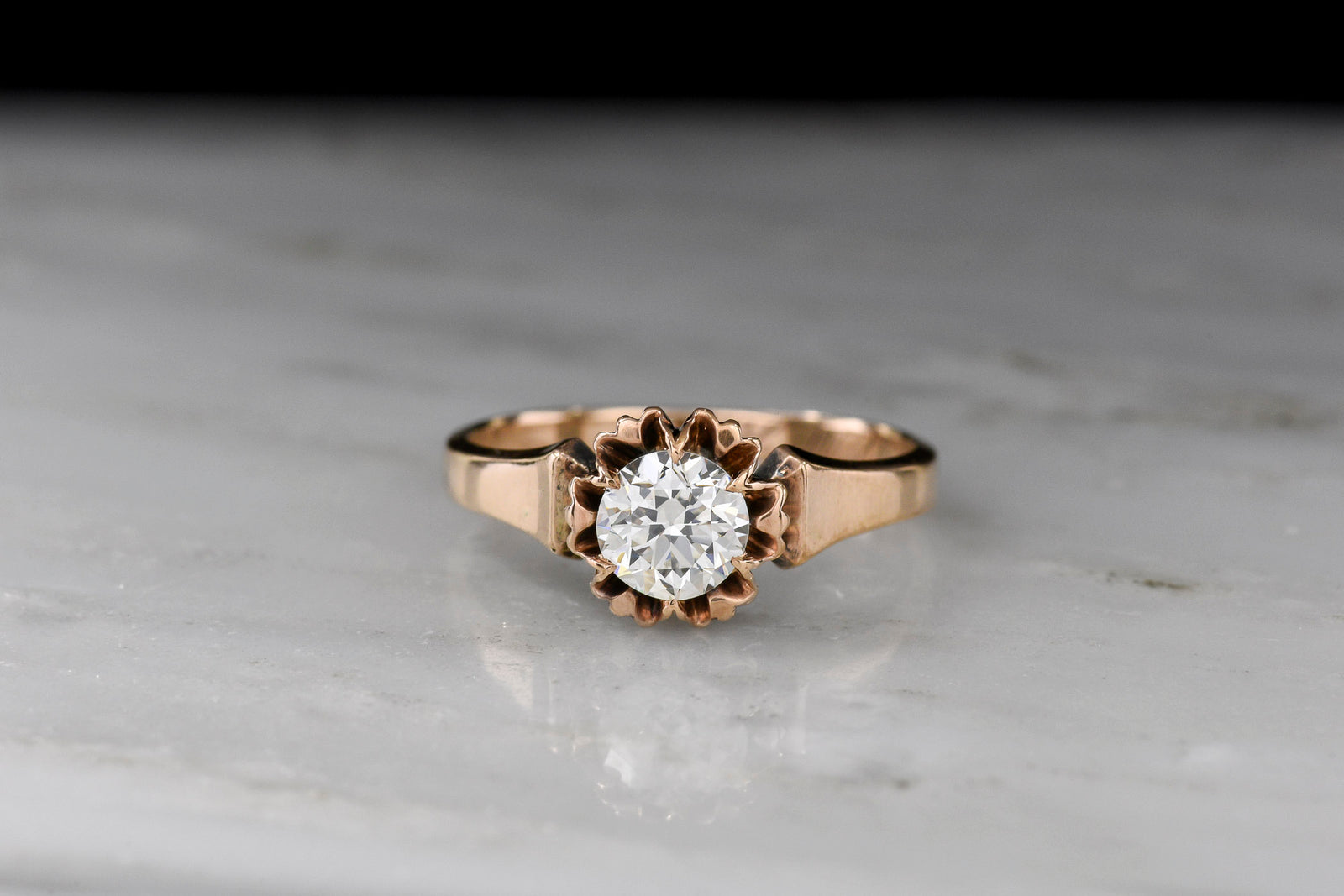 Sold Outc. 1900 Buttercup Engagement Ring with a Late Old European Cut / Early Transitional Cut Diamond