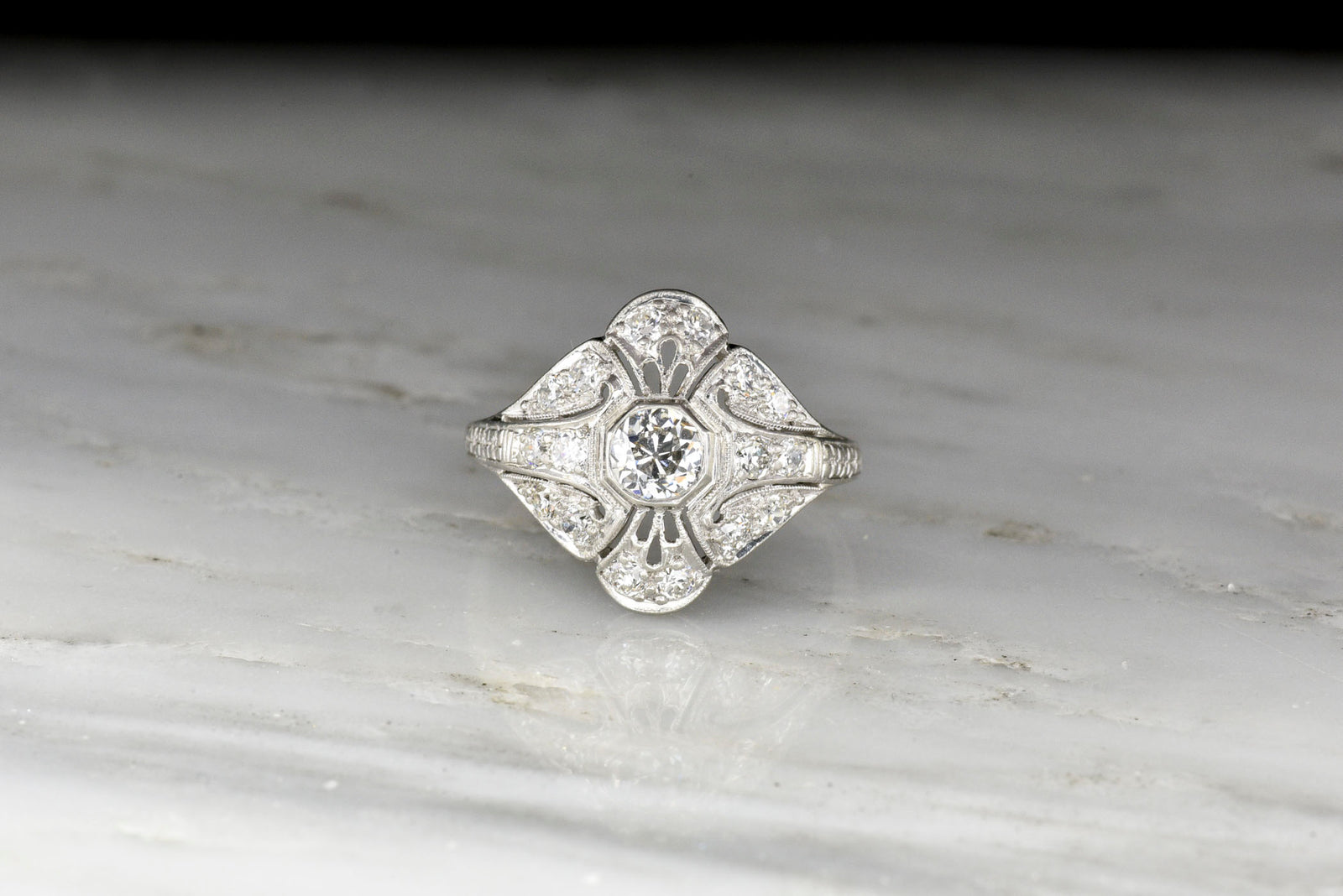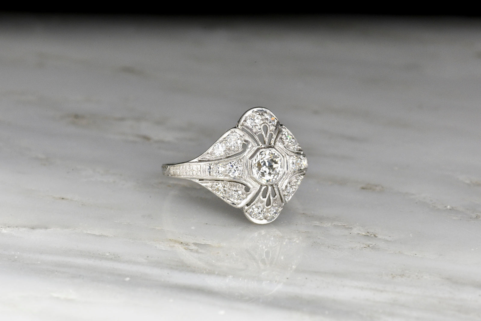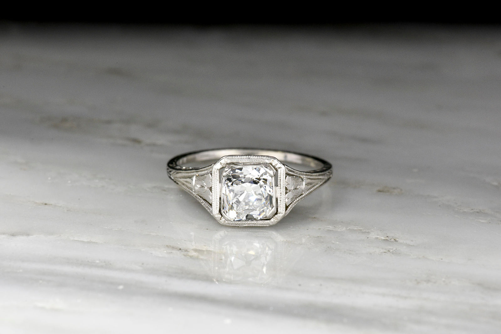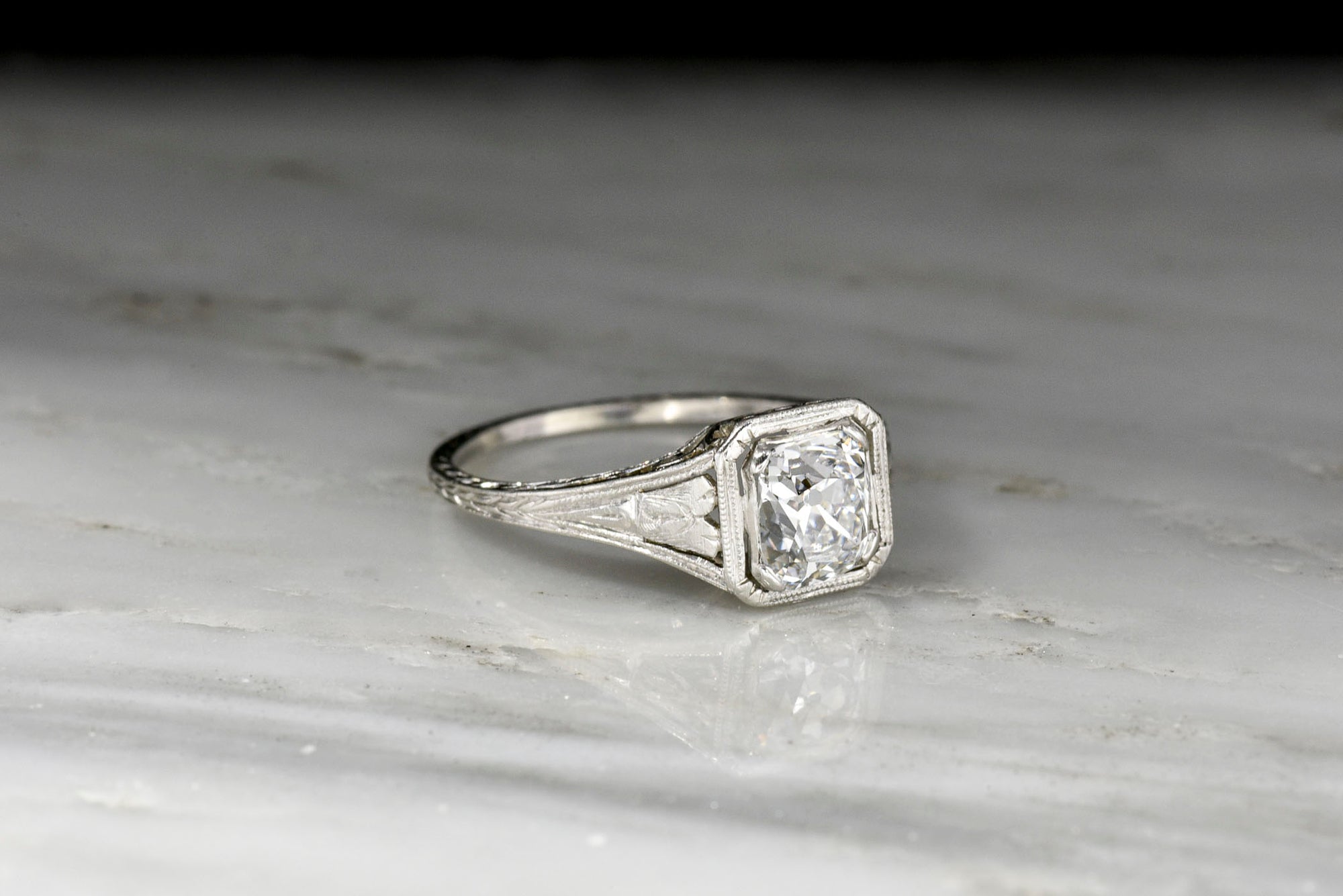Sold OutOrnate Late Edwardian Engagement Ring with Ornate Platinum Work and Hand Engraving