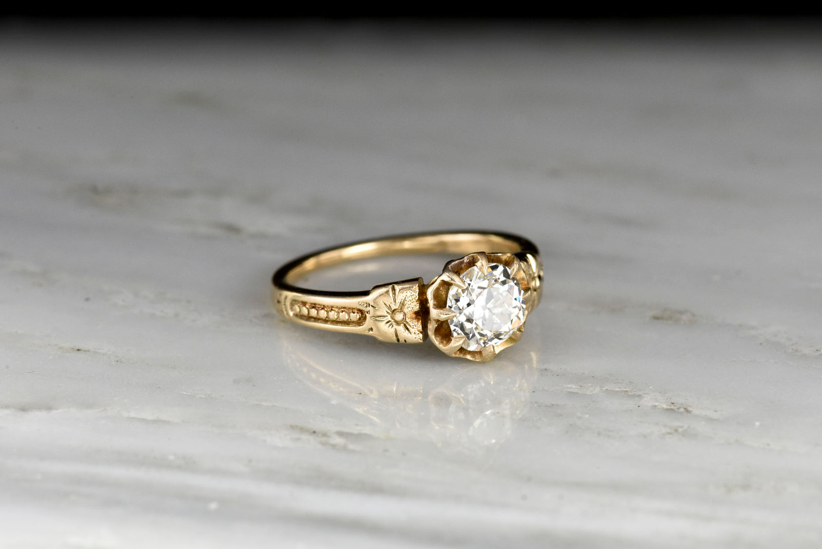 Sold OutLate Victorian Eight-Prong Buttercup Solitaire with a GIA .87 Carat Old European Cut Diamond