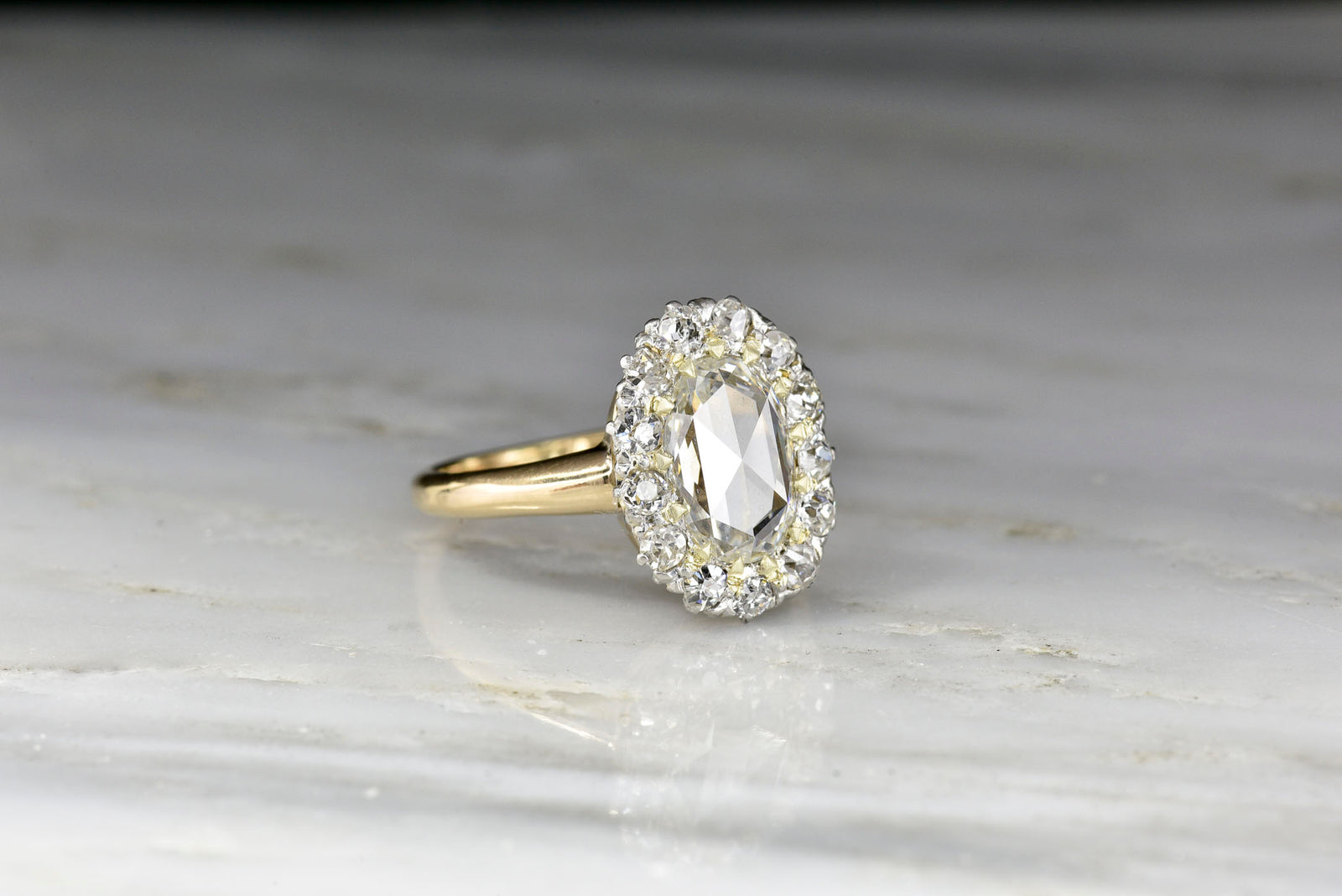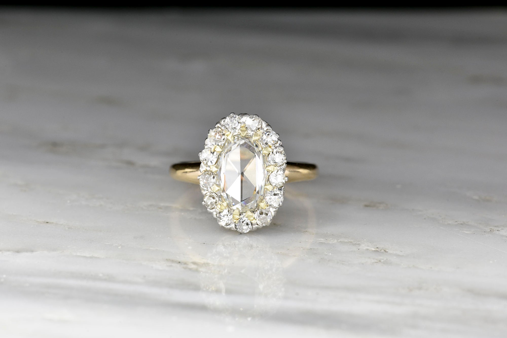 Sold OutVictorian Cluster Ring with a GIA 1.24 Carat Oval Rose Cut Diamond Center