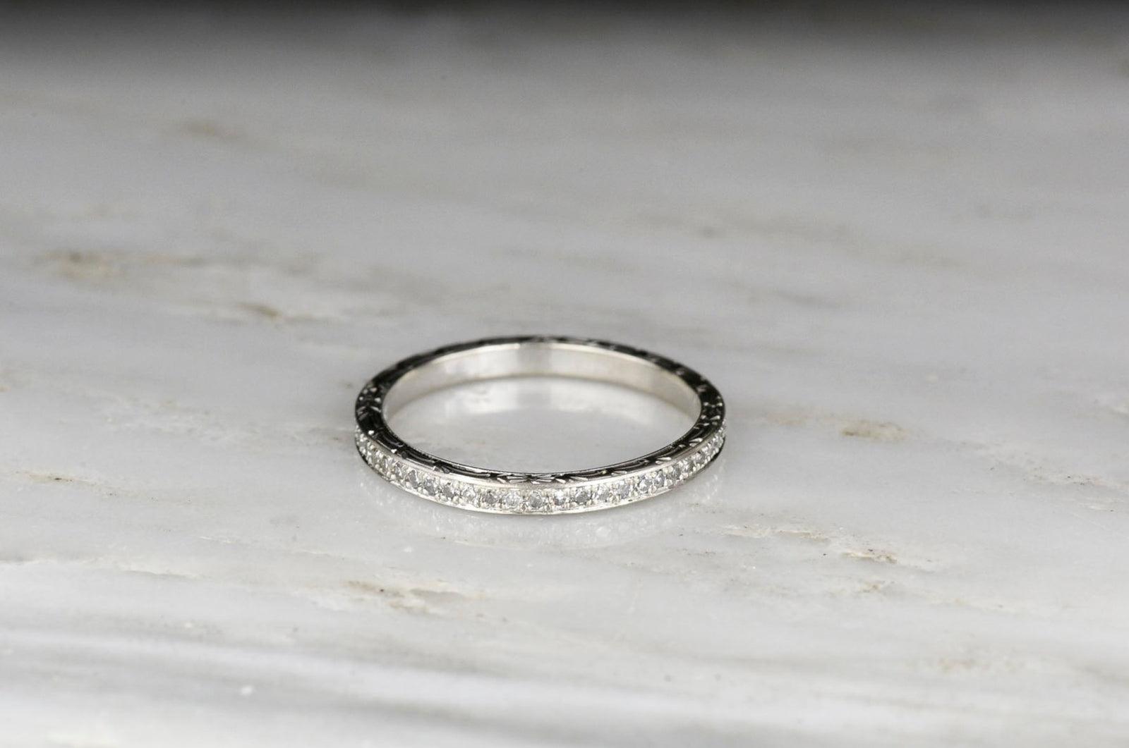Sold Outc. 1920s Single Cut Diamond Eternity Band with Ornate Engraving