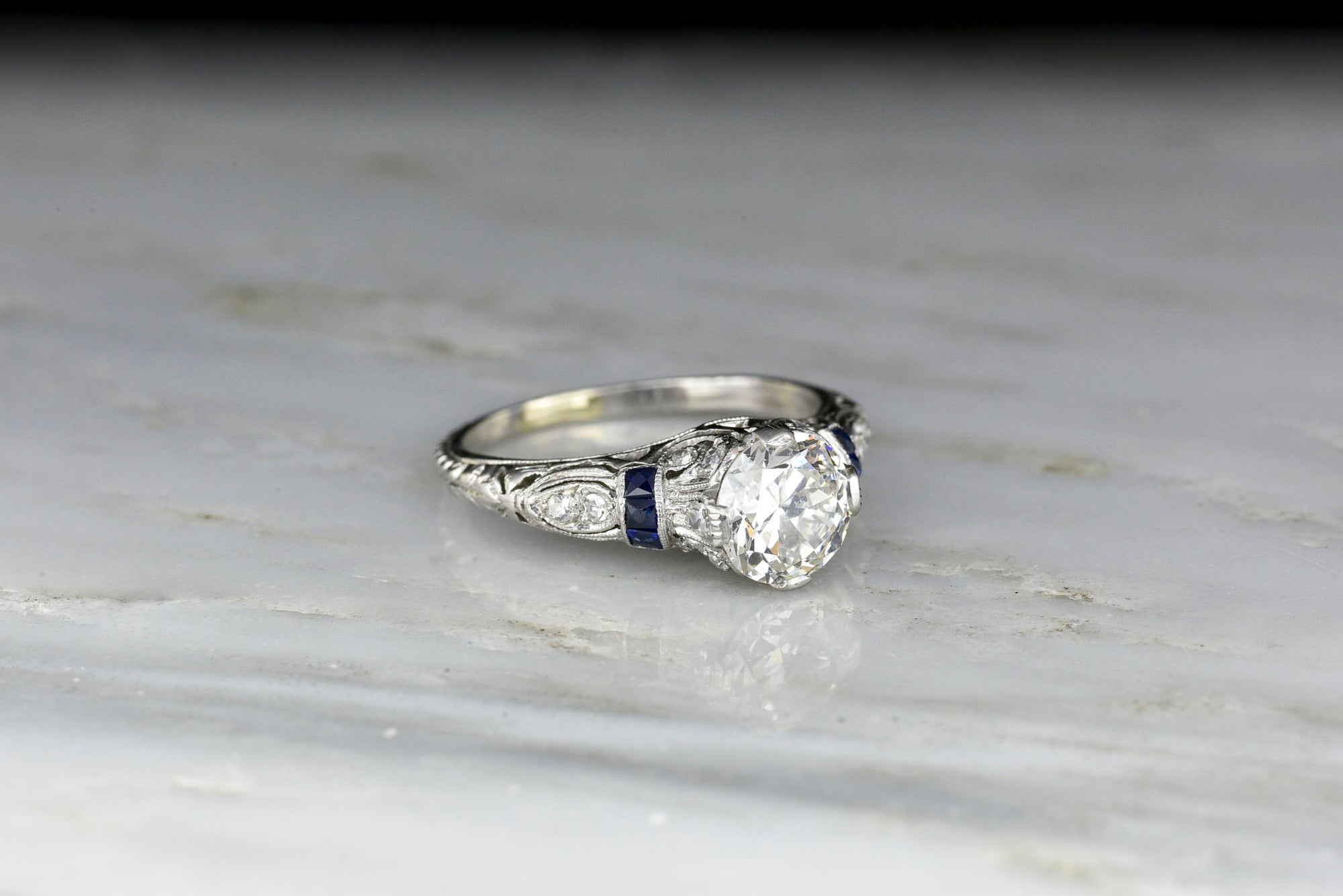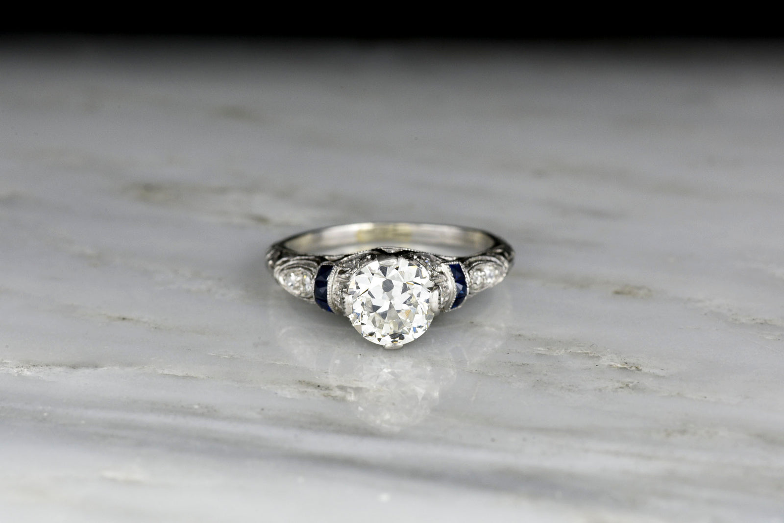 Sold Outc. 1920s Transitional Cut GIA Diamond and Sapphire Engagement Ring