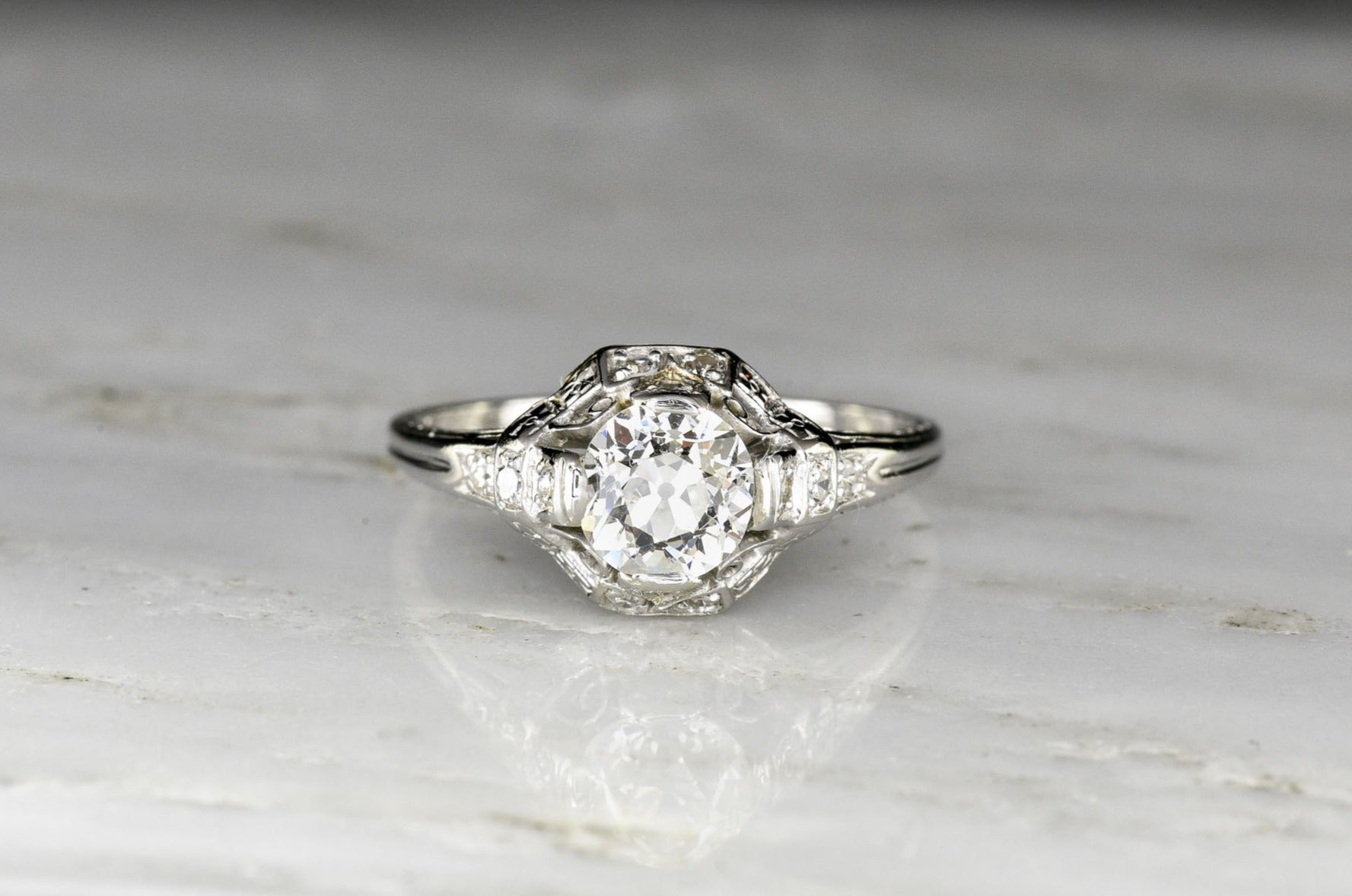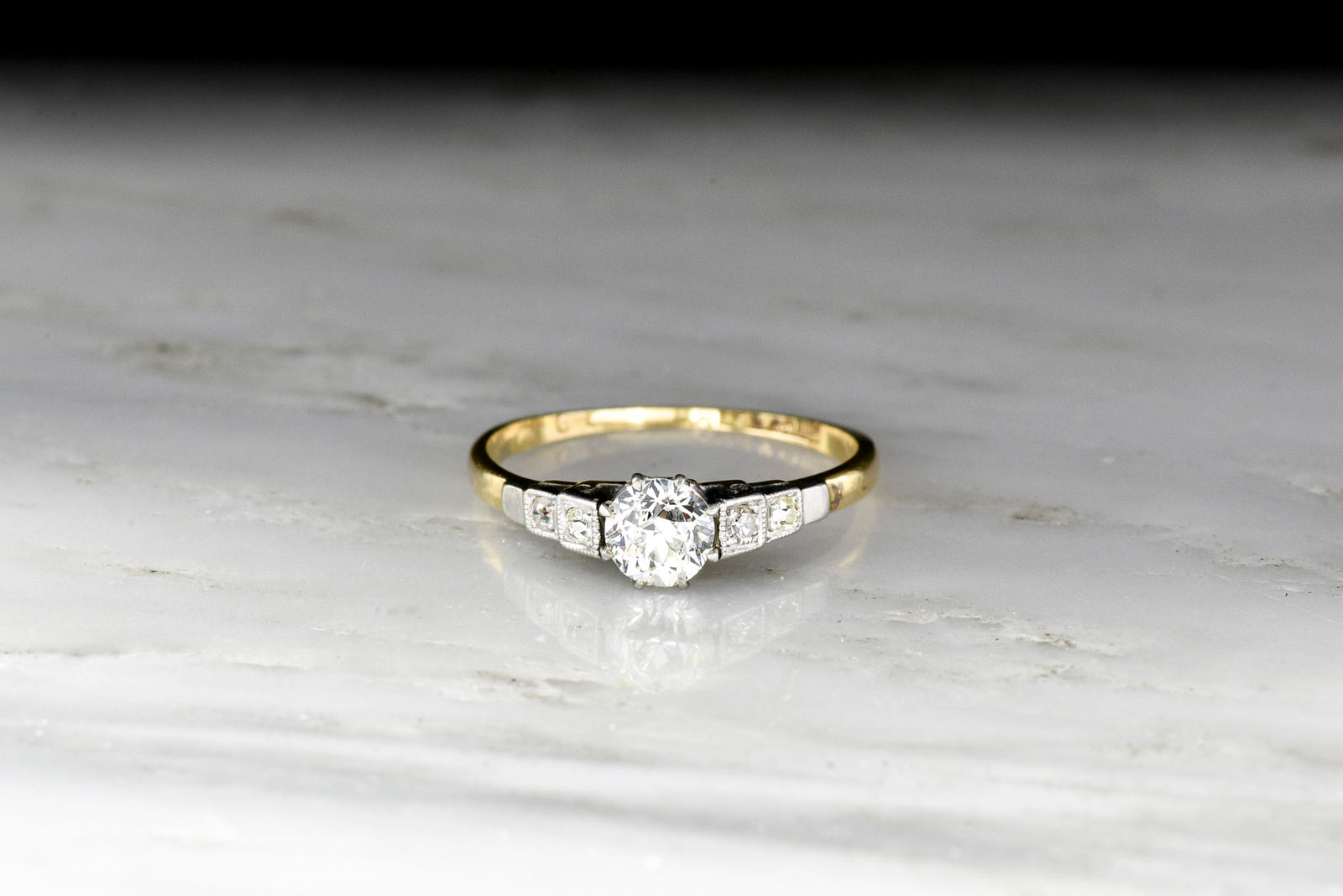 Sold Outc. 1930s Art Deco / Mid-Century Old European Cut Diamond Engagement Ring