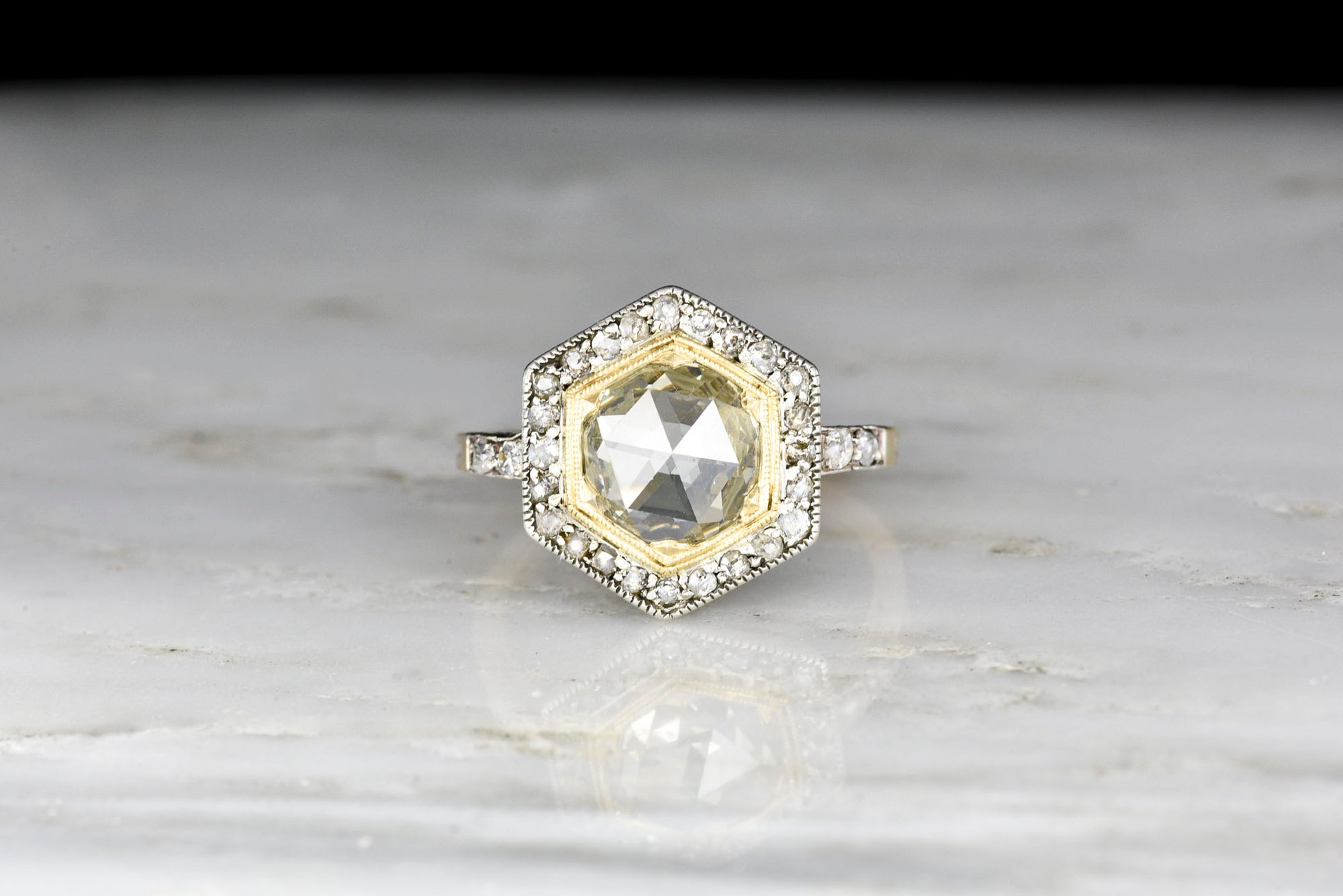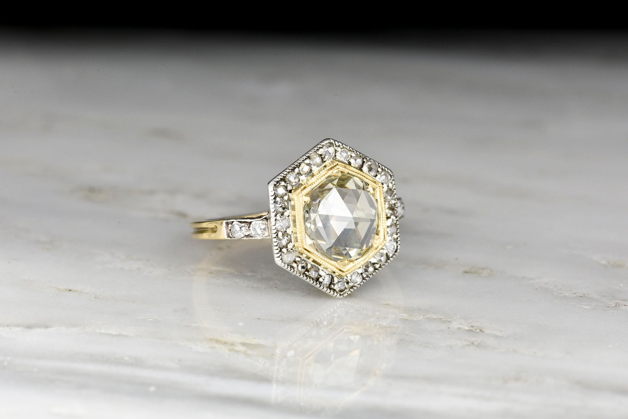 Sold OutVictorian Hexagonal Two-Toned Ring with an Antique 1.94 Carat Rose Cut Diamond Center