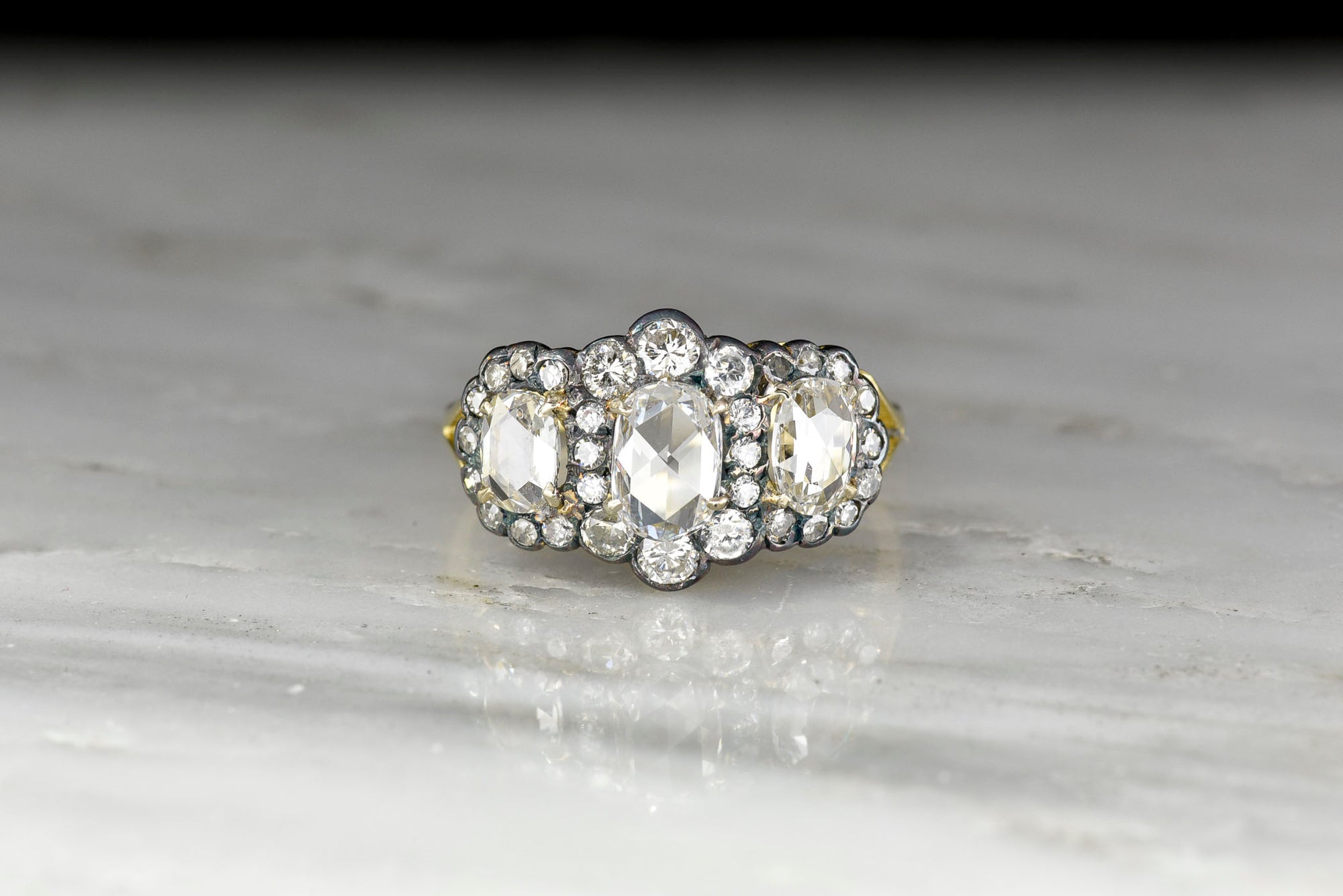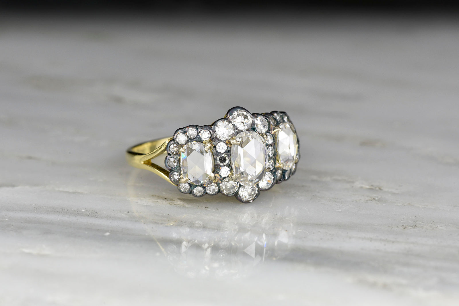 Sold OutVictorian Three-Stone Ring with Oval Rose Cut Diamond Centers and Mixed-Cut Diamond Accents