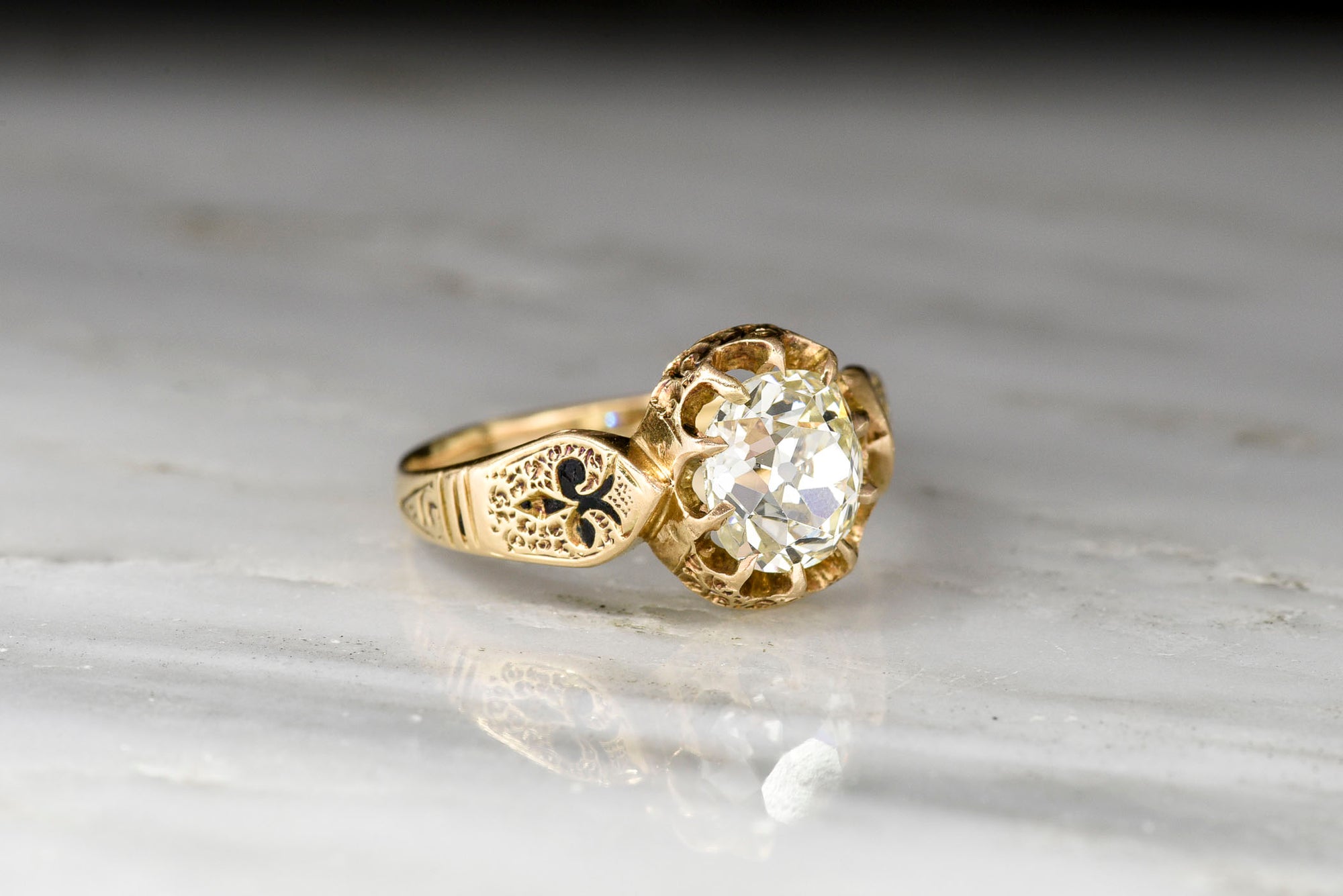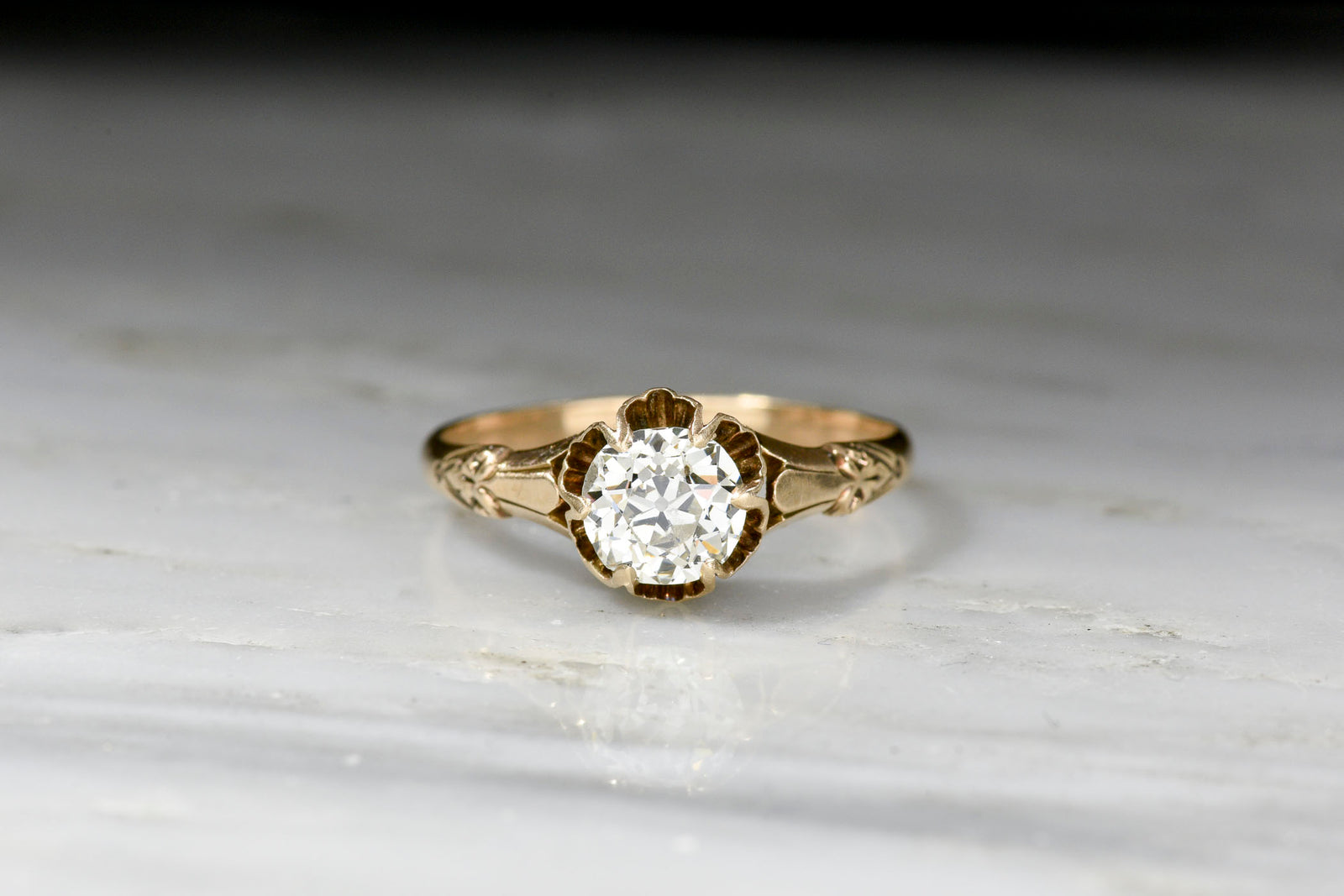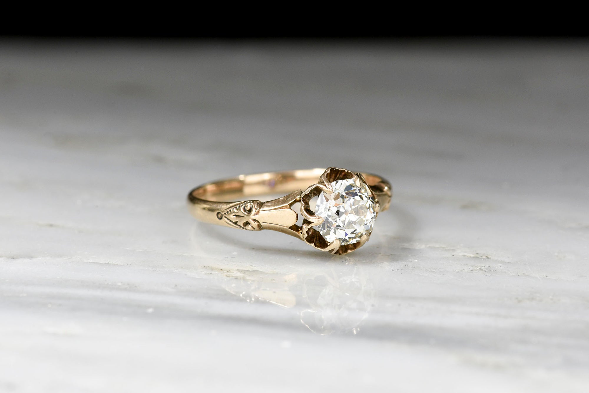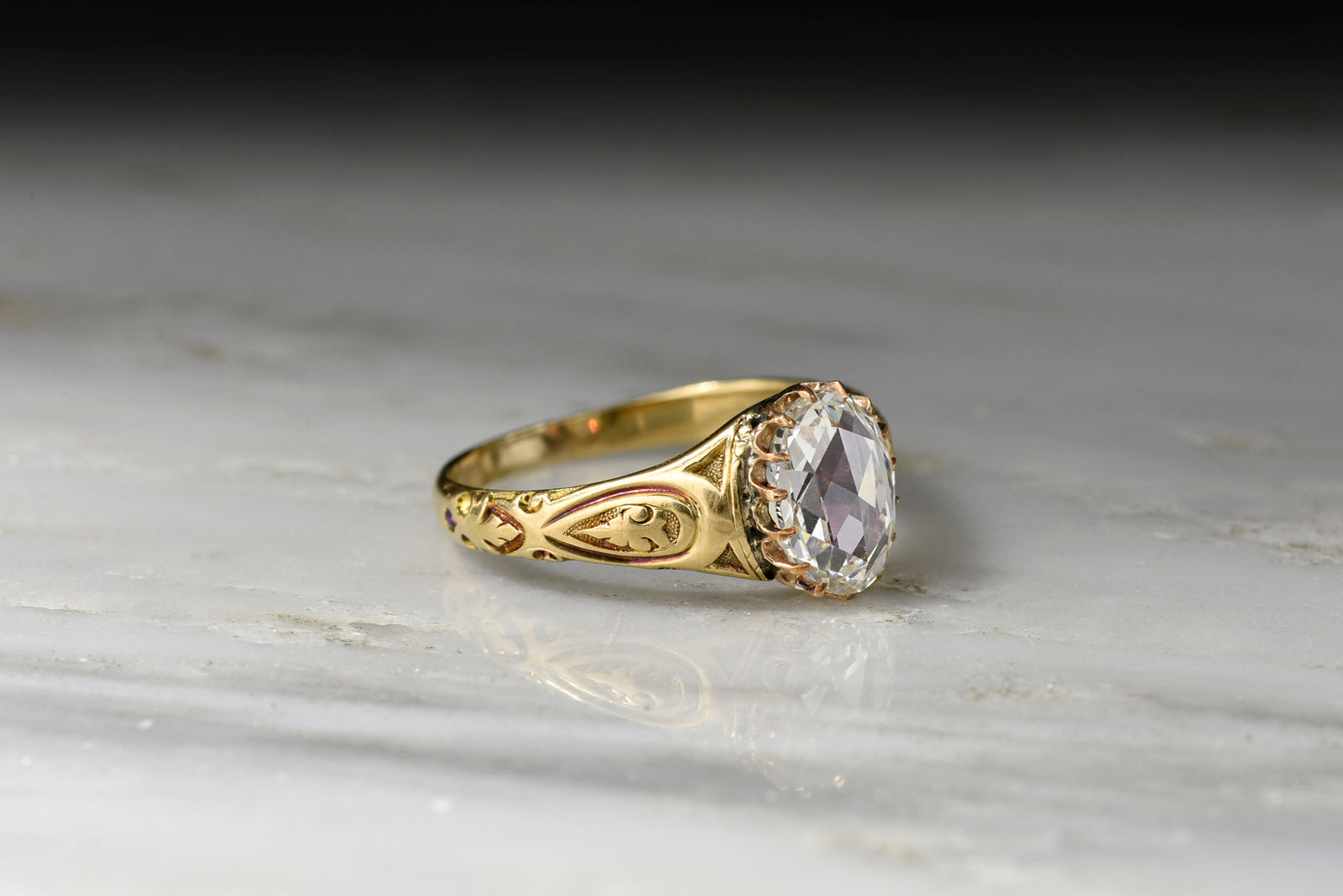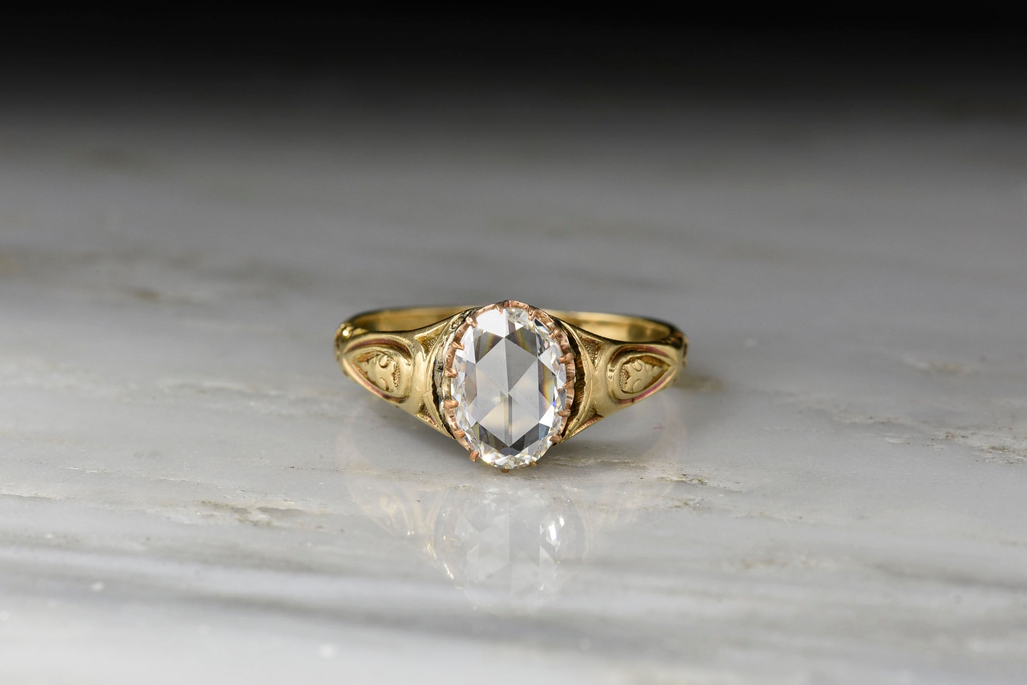 Sold OutVictorian GIA 1.00 Carat Oval Rose Cut Diamond Ring with Hand-Engraved Shoulder Details