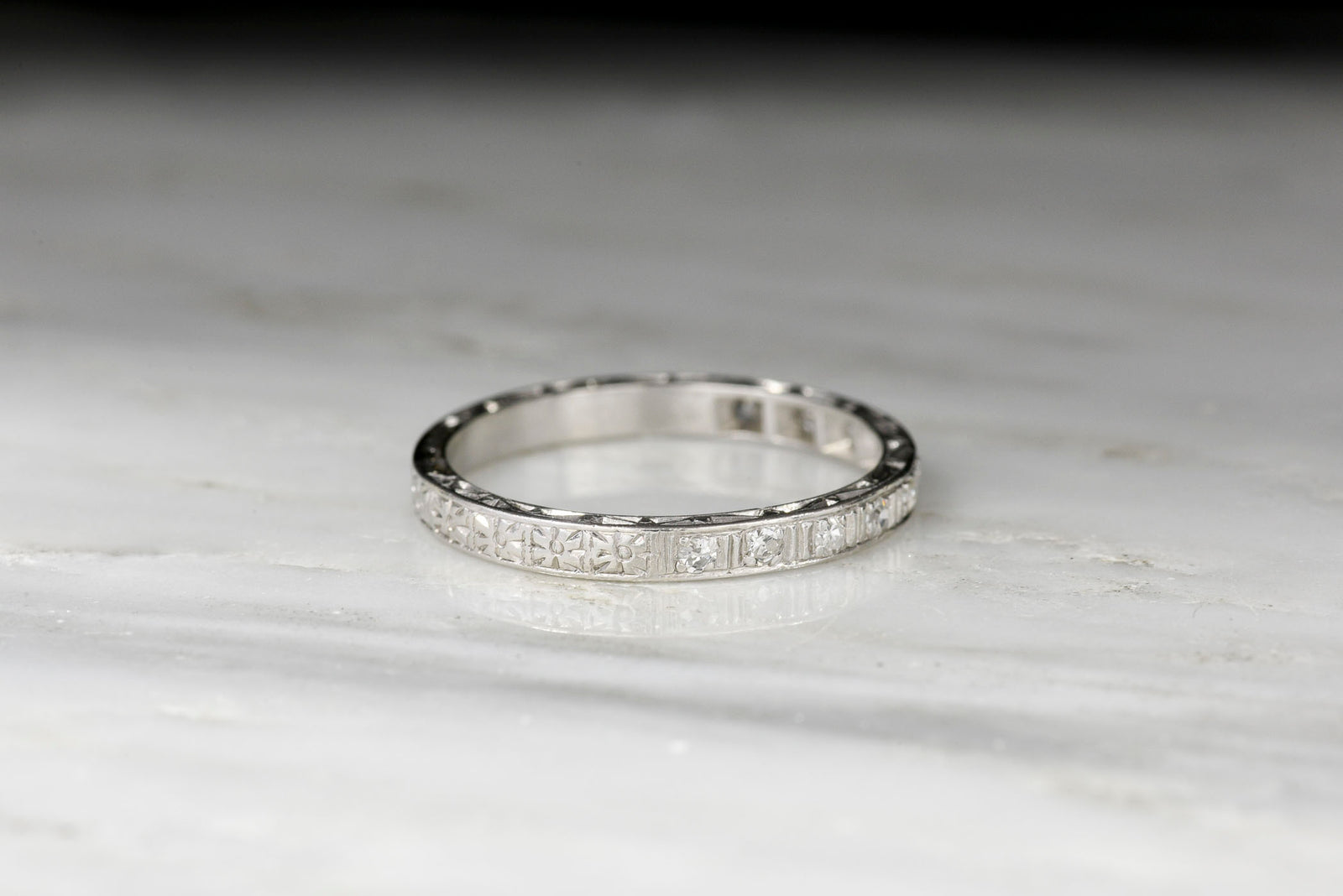 Sold Out1923 Edwardian / Art Deco Platinum and Diamond Band with Hand-Engraved Orange Blossoms