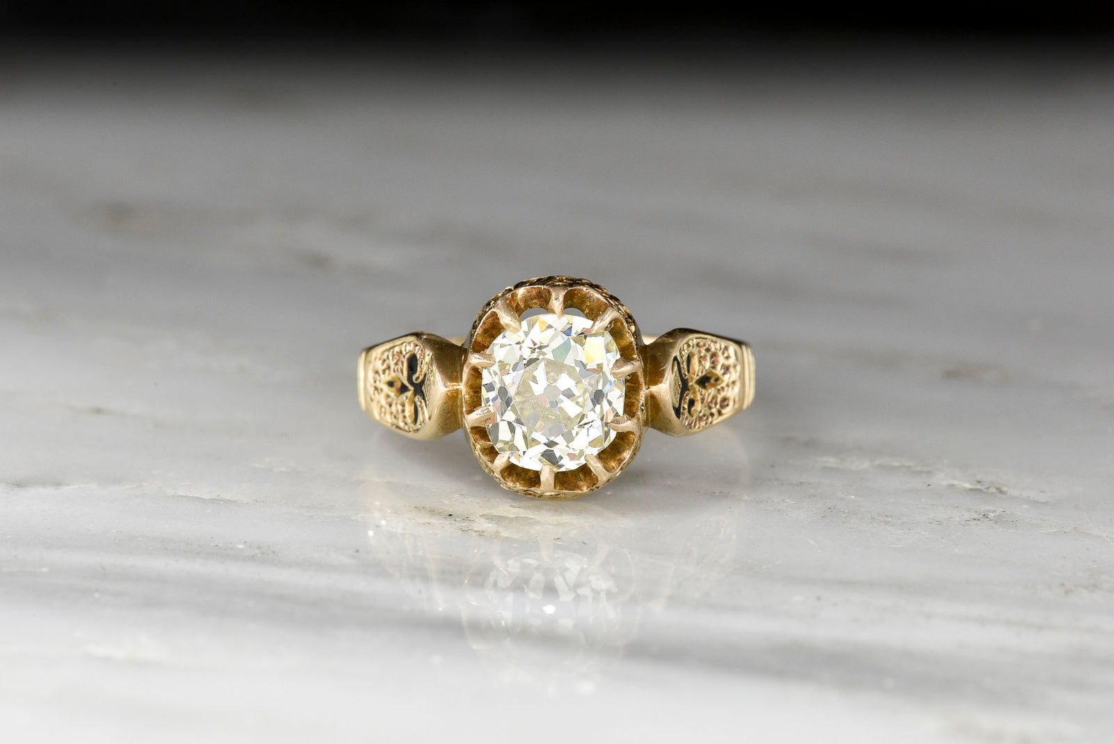 Sold OutVictorian 18K Oval Ten-Prong Engagement Ring with a 1.32 Carat Old Mine Cushion Cut Diamond