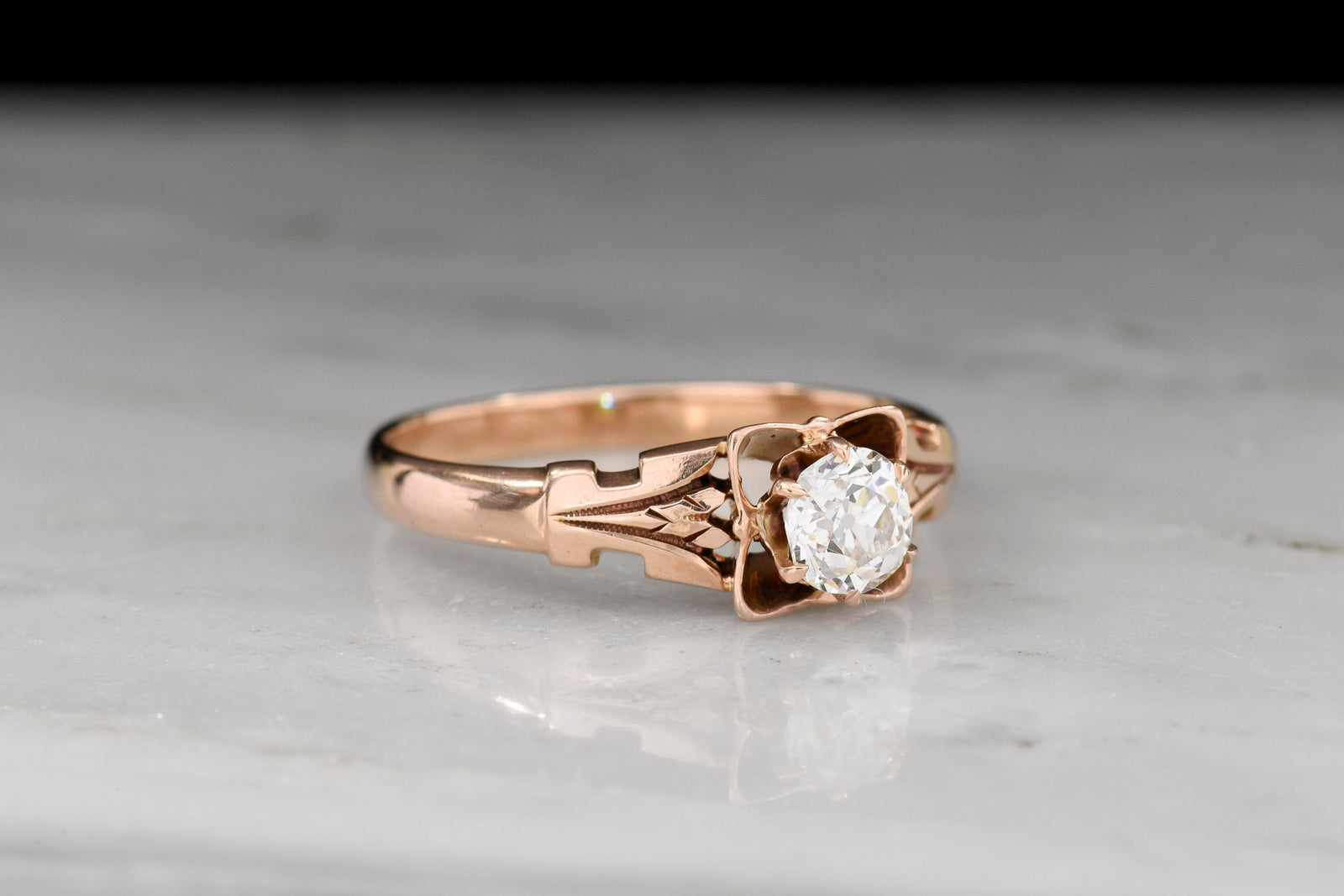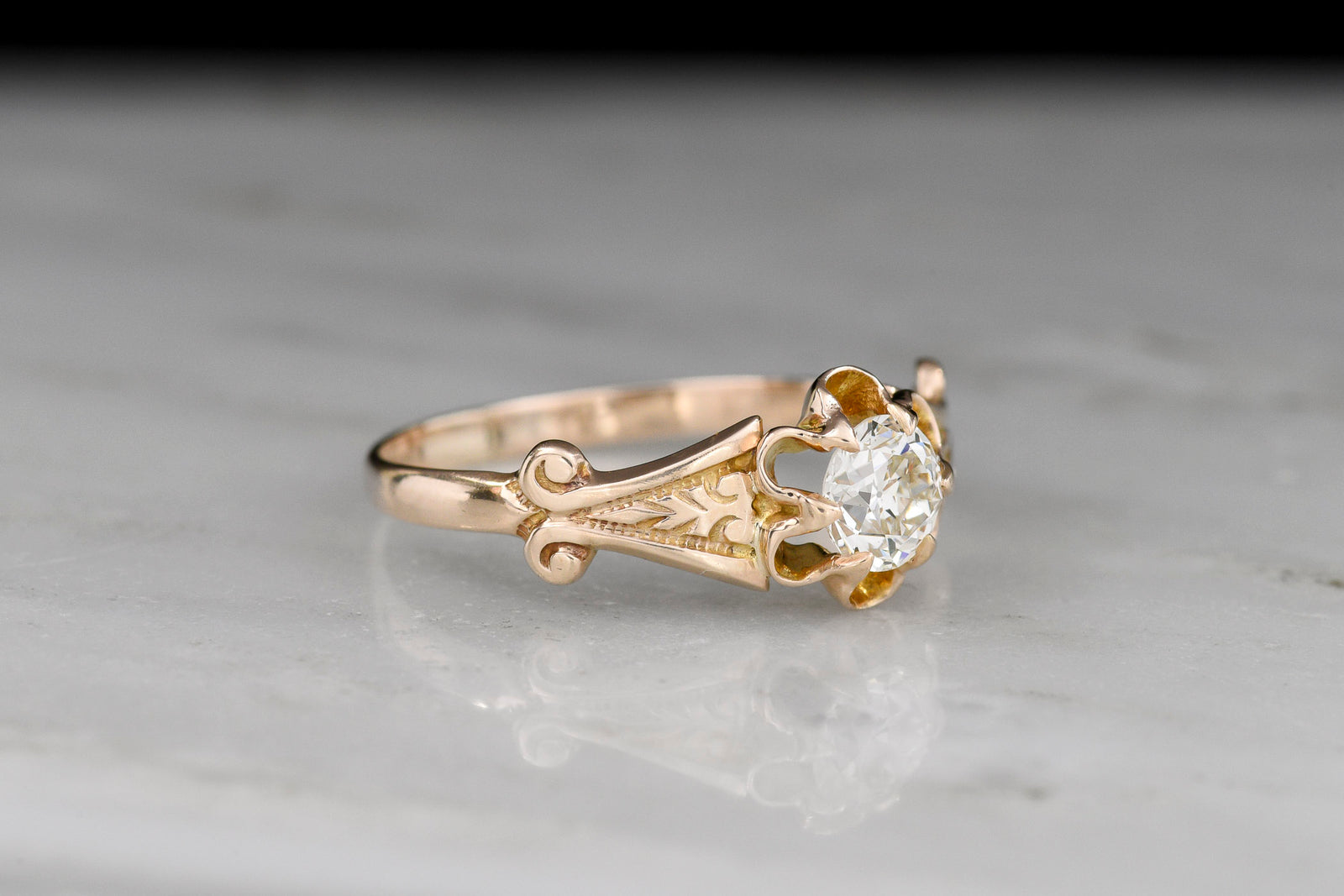 Sold OutLate 1800s - Early 1900s Solitaire Buttercup Engagement Ring with Mermaid-Tail Shoulders