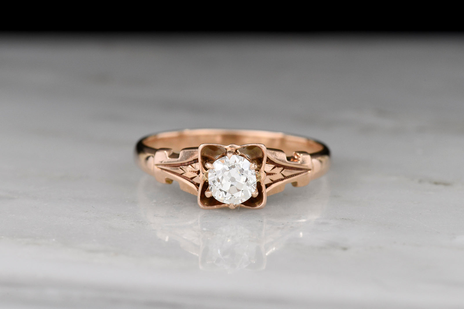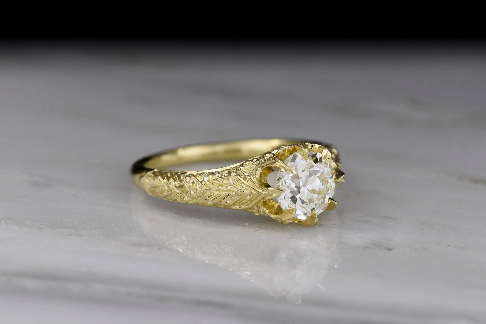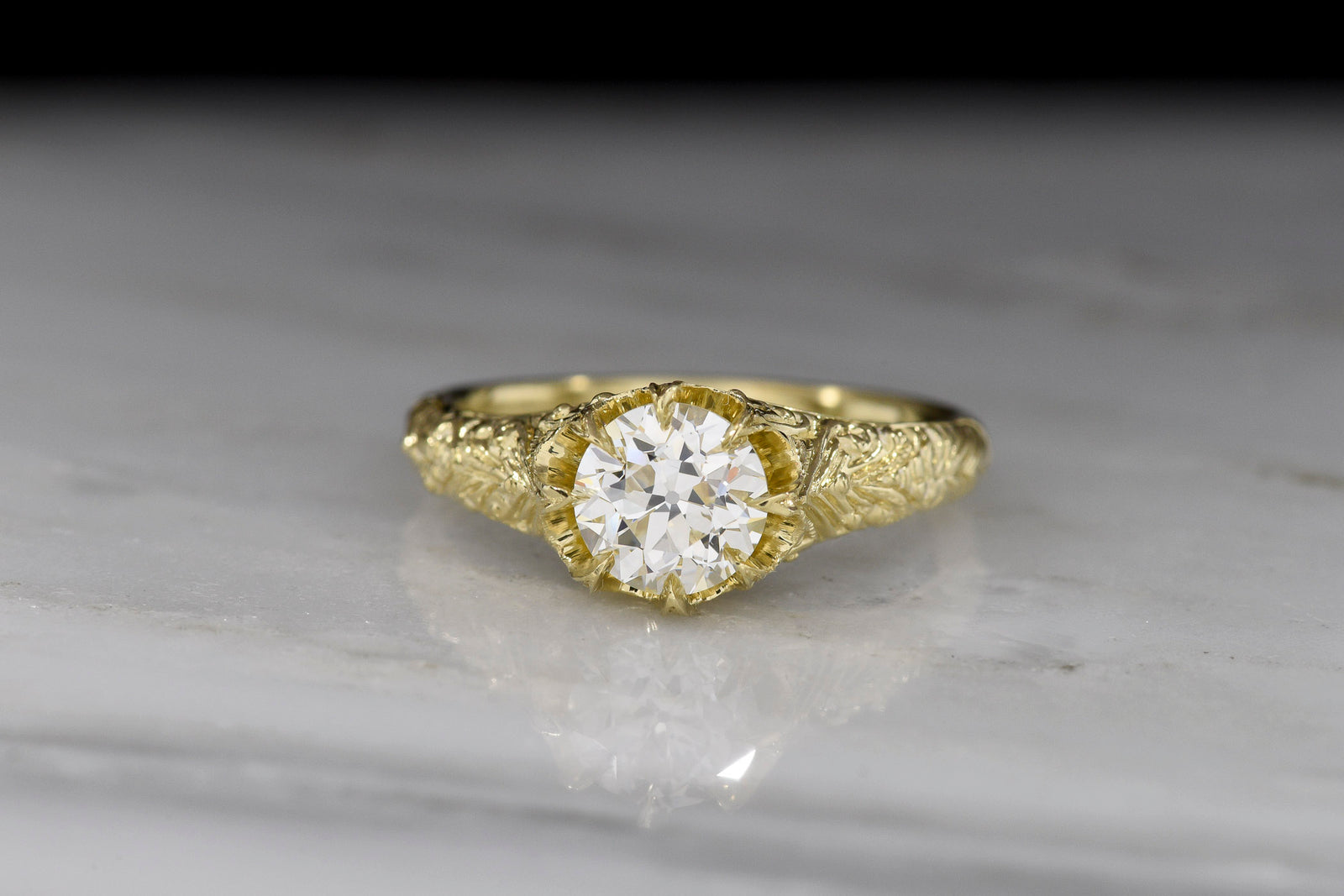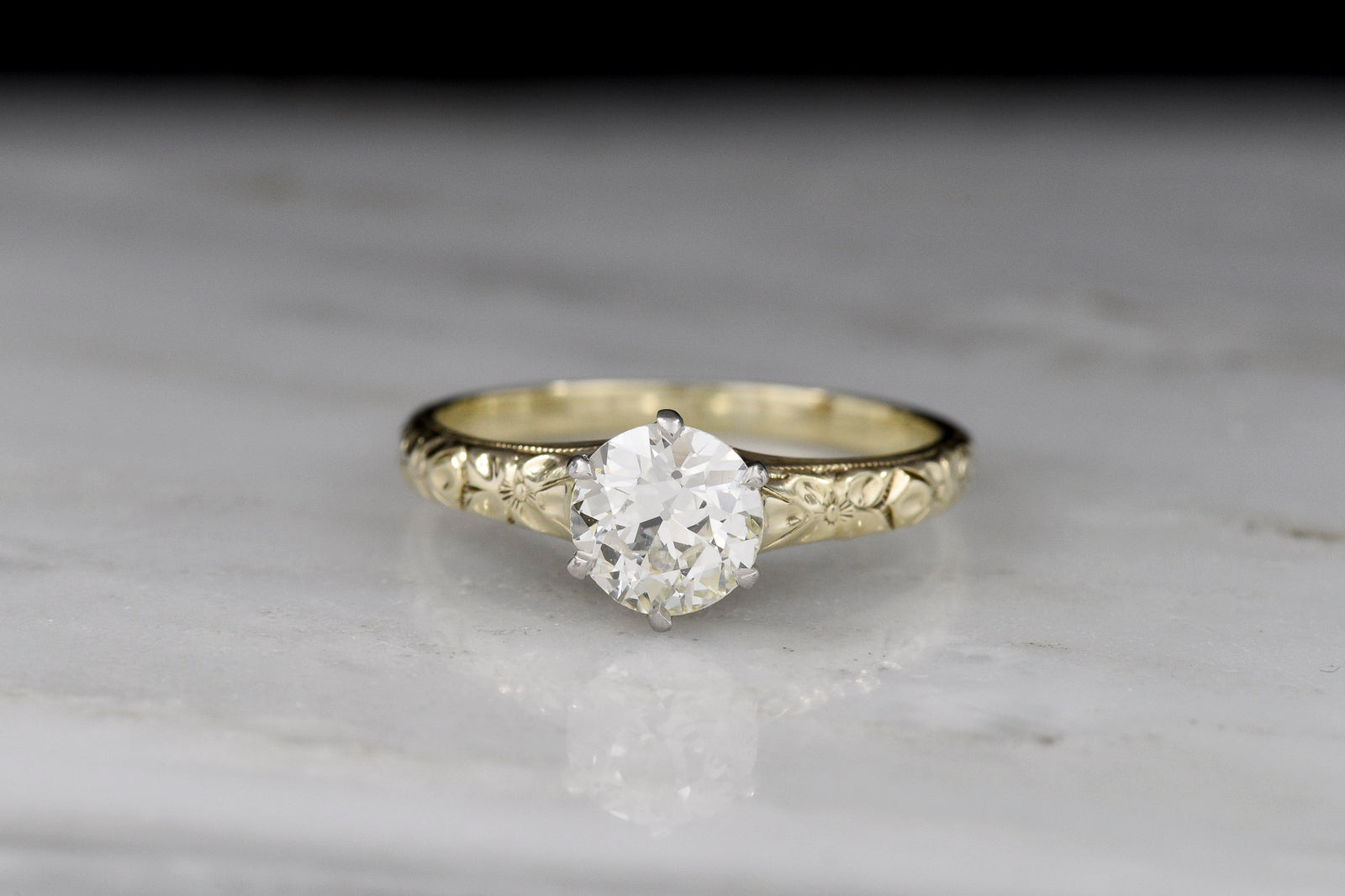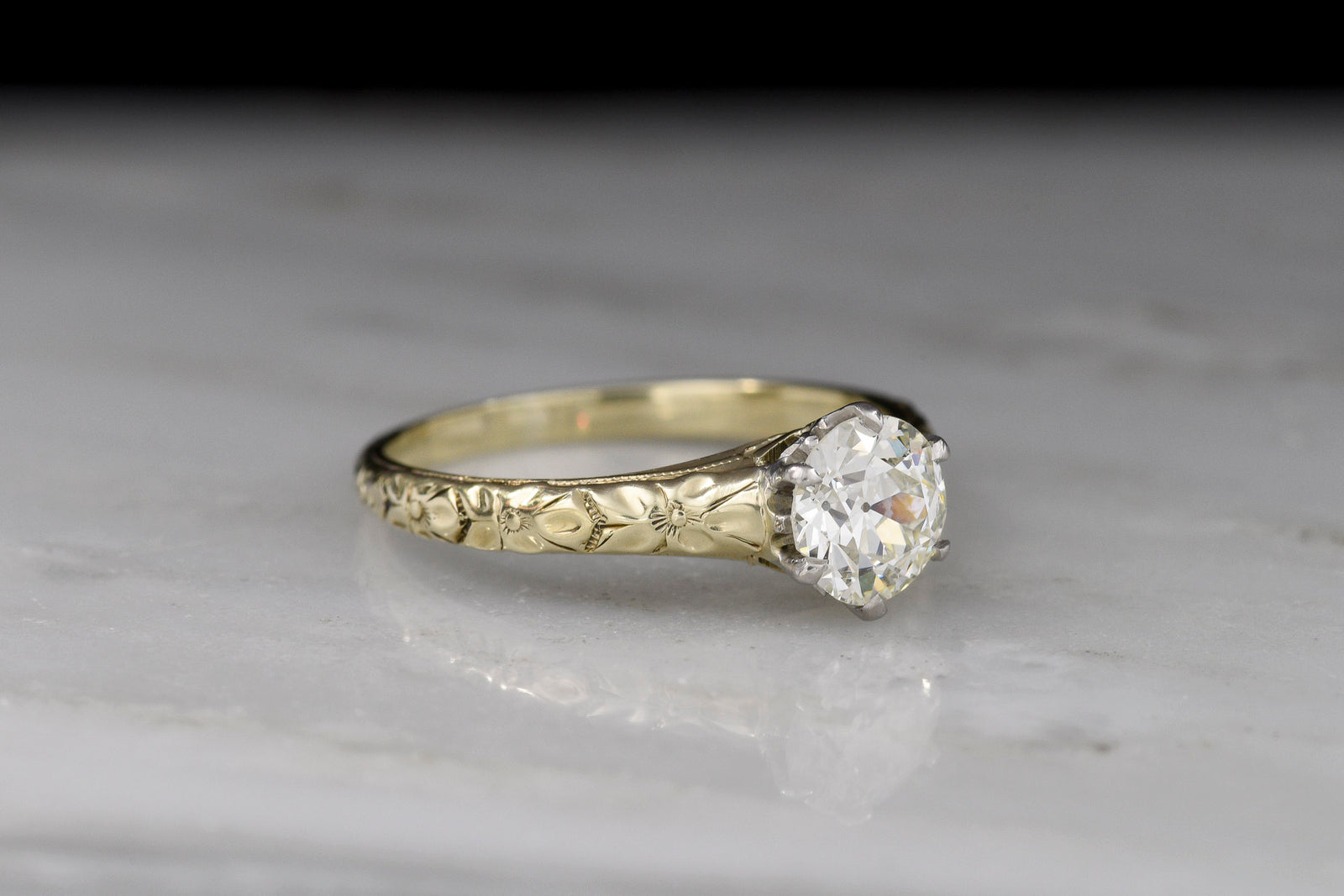 Sold Outc. 1900 Two-Tone Solitaire Engagement Ring with Foliate and Blossom Details