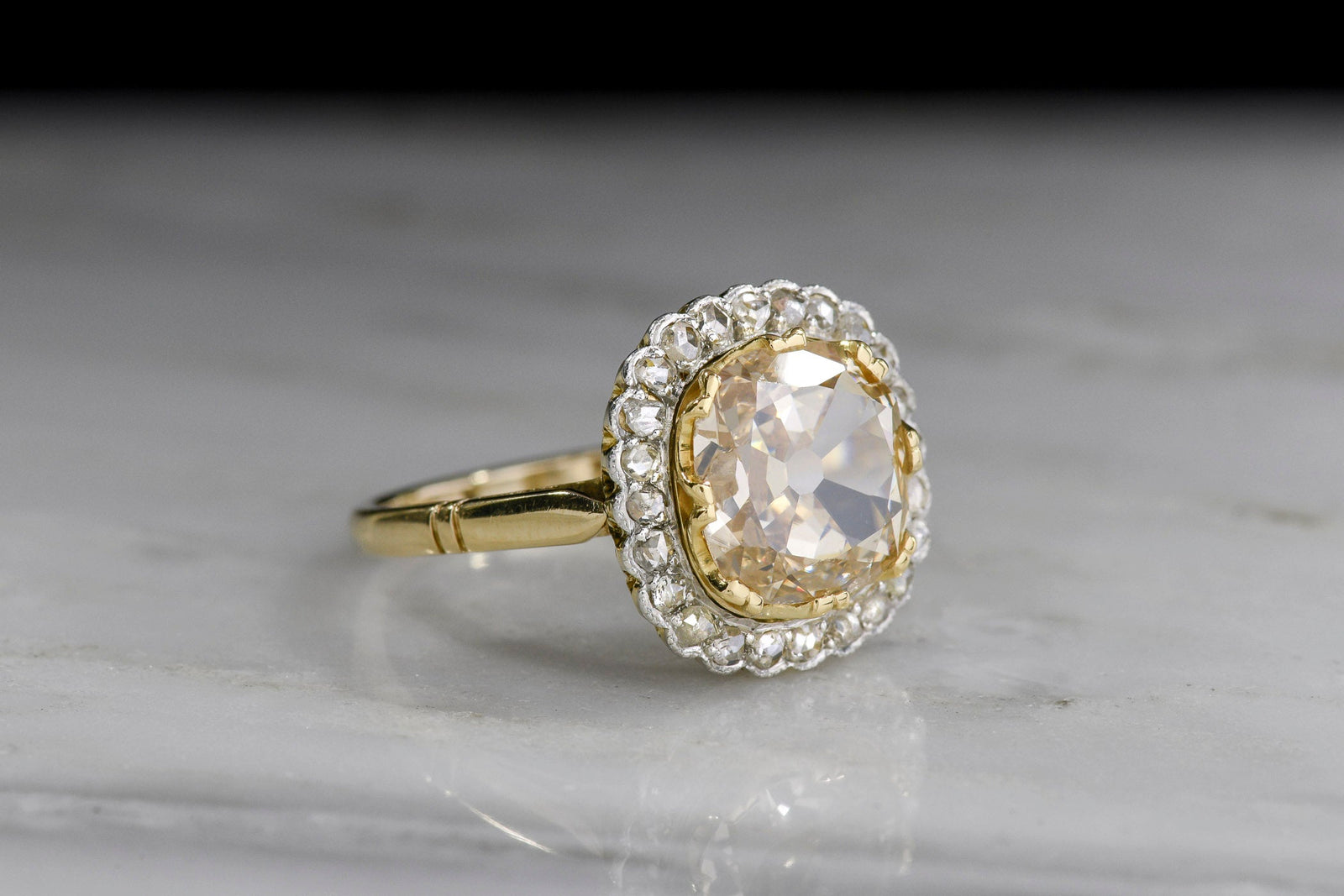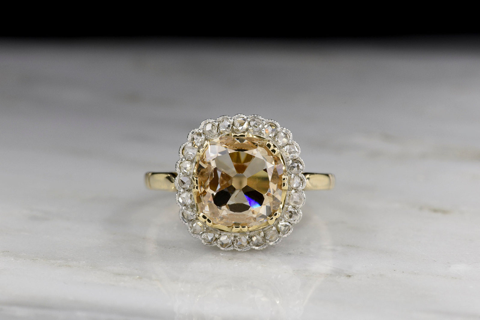 Sold Outc. 1900 Belle Époque Two-Tone Ring Cluster Ring with a Light Brown Old Mine Cut Diamond Center
