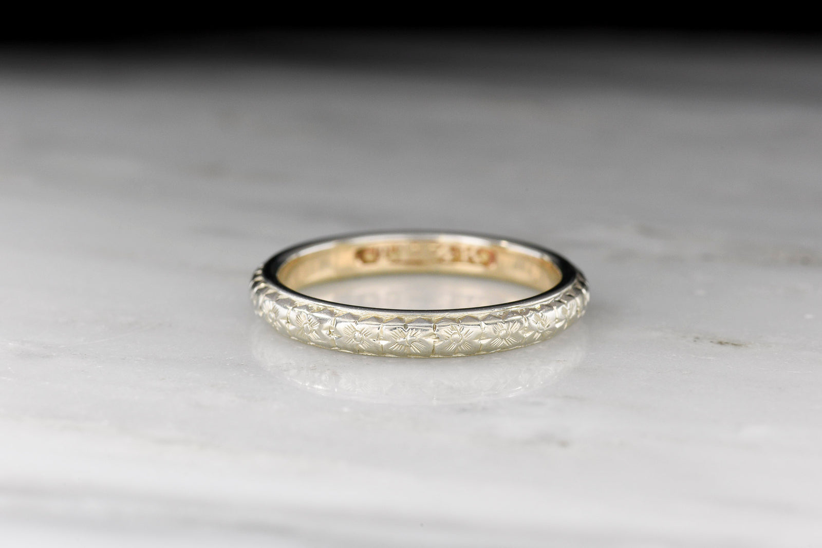 Sold OutCustom Listing: c. Early-1900s Two-Tone Yellow and White Gold Band with a Blossom Pattern