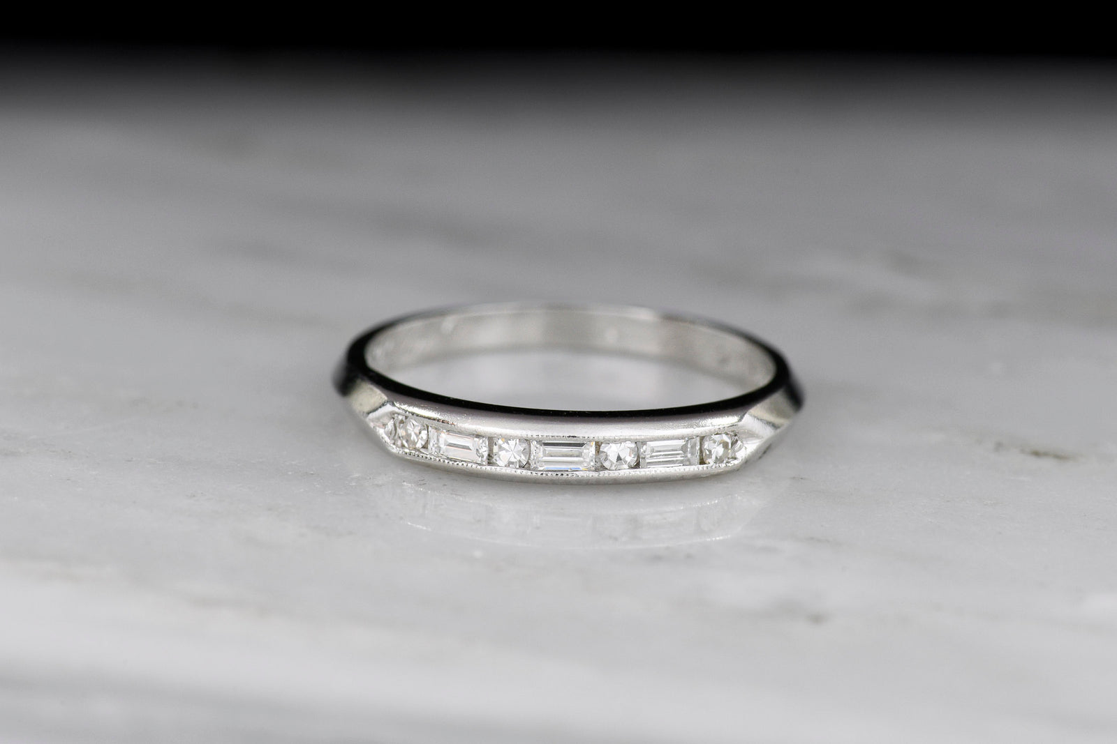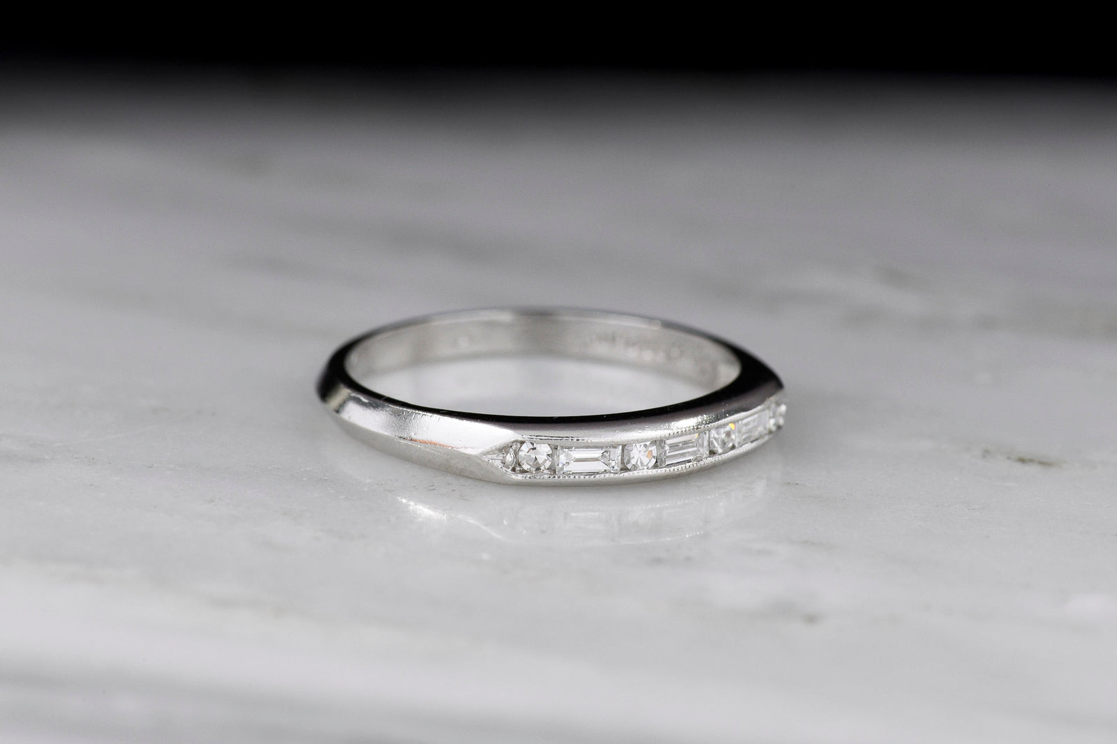 Sold OutDated 1953 Platinum Wedding or Stacking Band with Alternating Diamonds and a Knife-Edge Shank