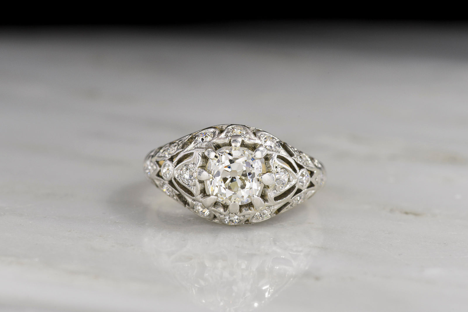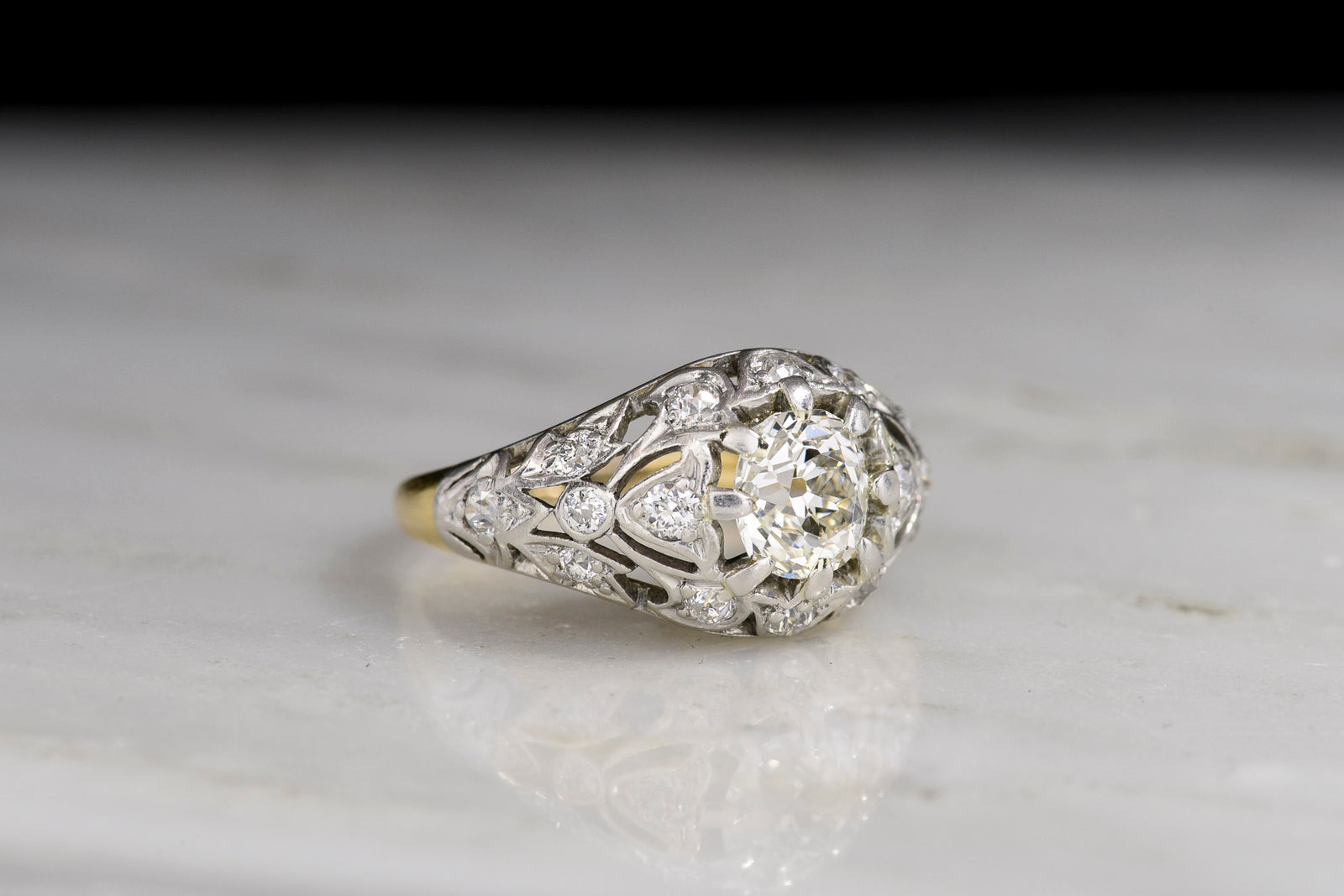 $ 2,000.00c. 1910 Late Belle Époque Open Metalwork Gold and Platinum Ring with an Old Mine Center