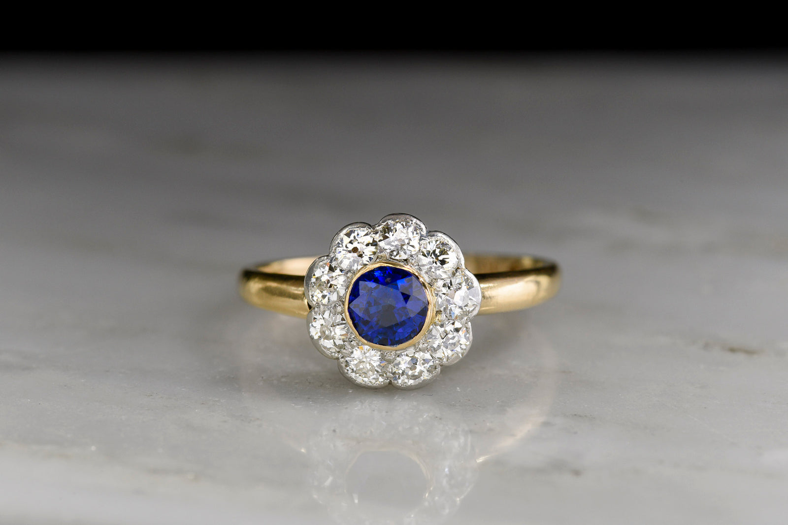 $ 5,750.00Deep Blue Sapphire and Diamond Cluster Ring in 18K Gold and Platinum