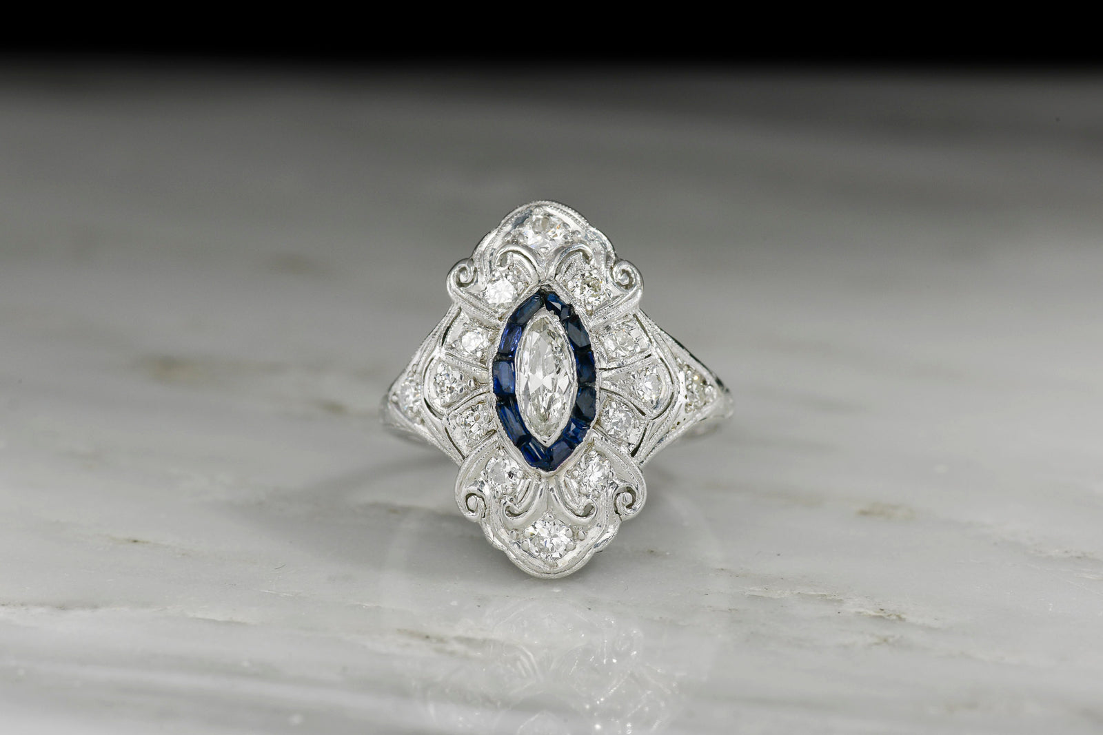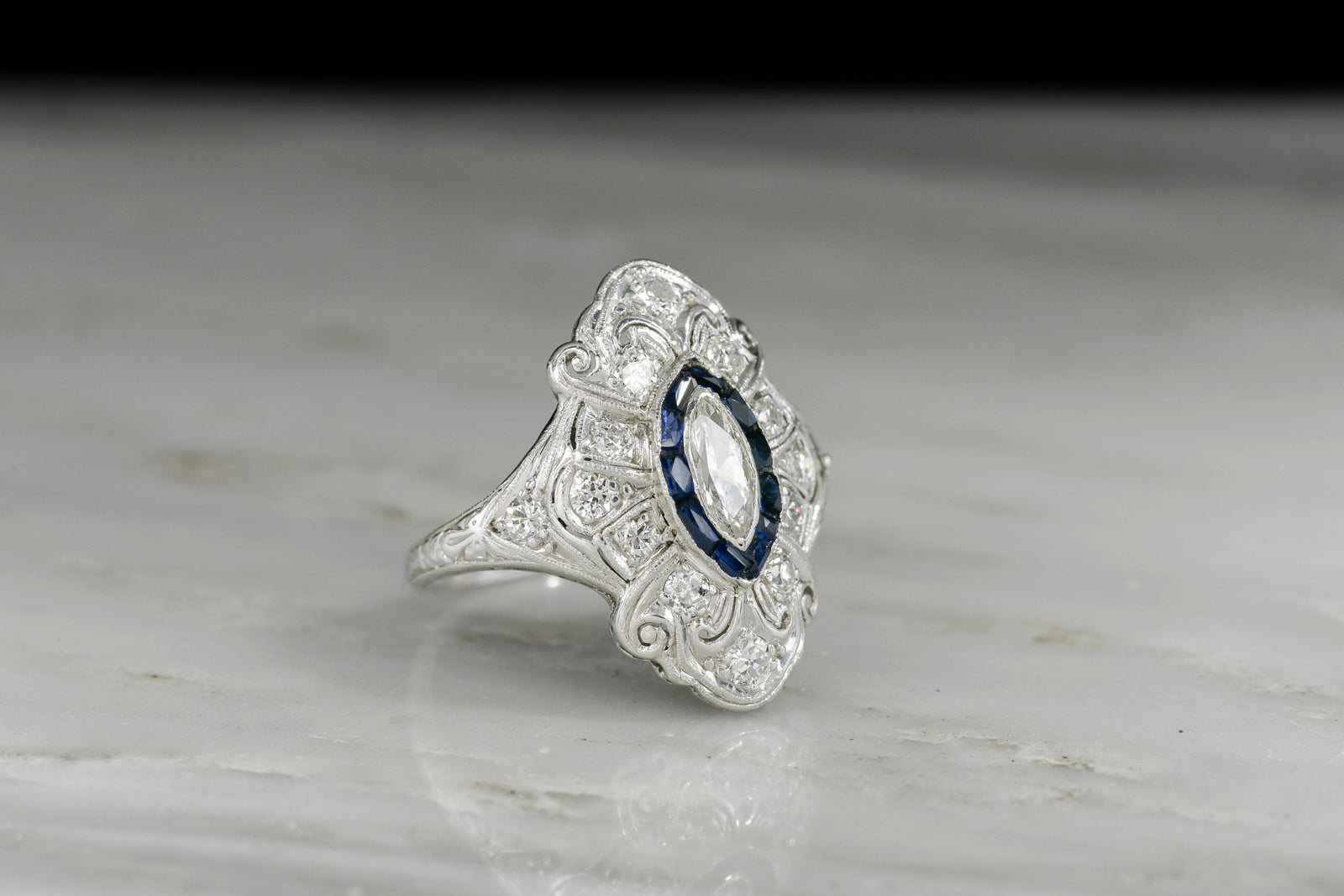 $ 3,500.00Ornate Art Deco Platinum, Diamond, and Sapphire Dinner Ring
